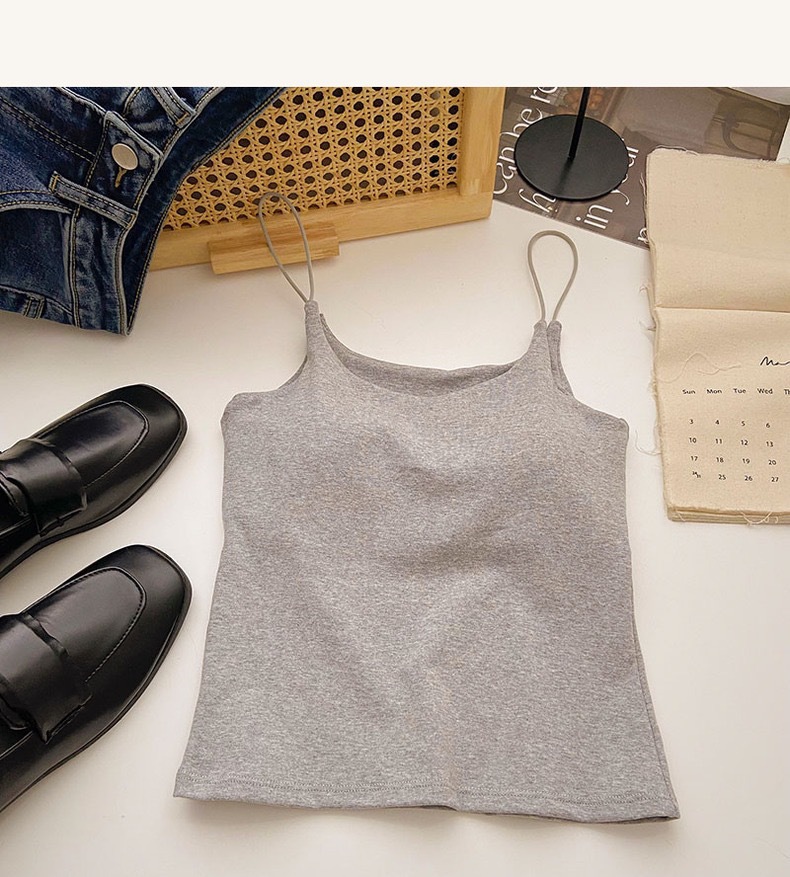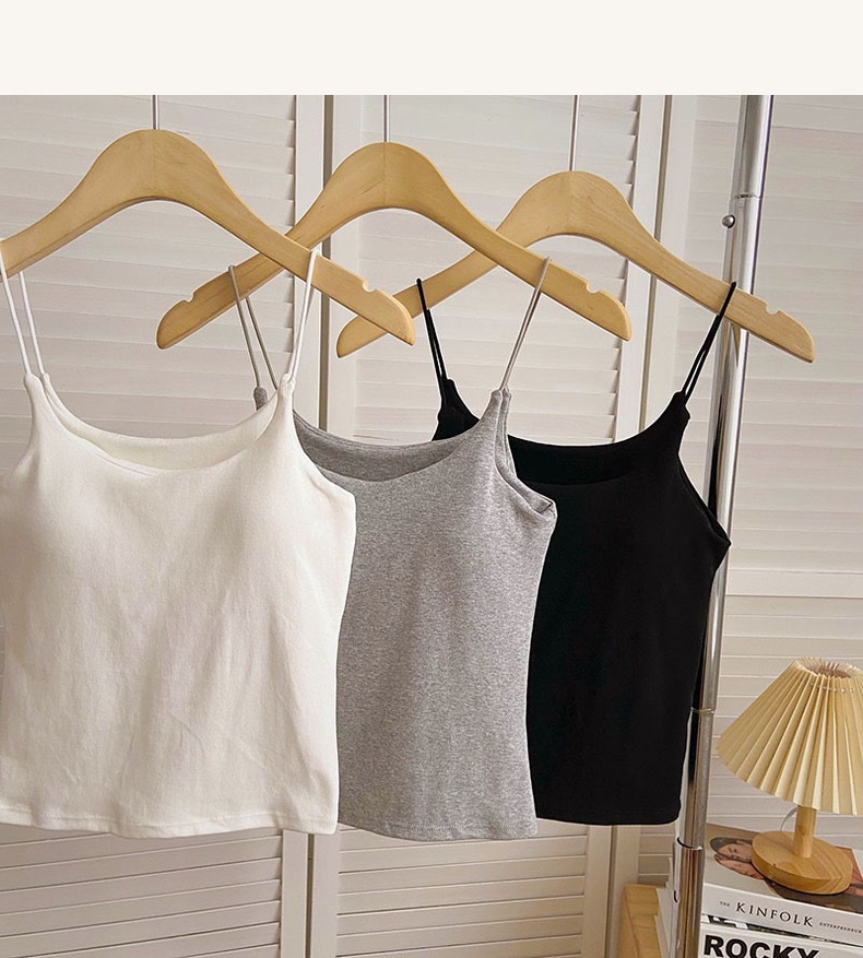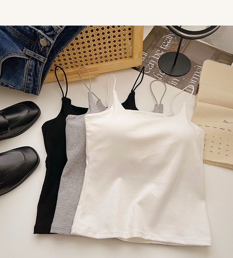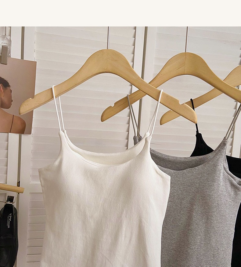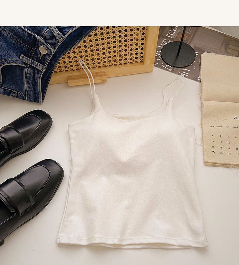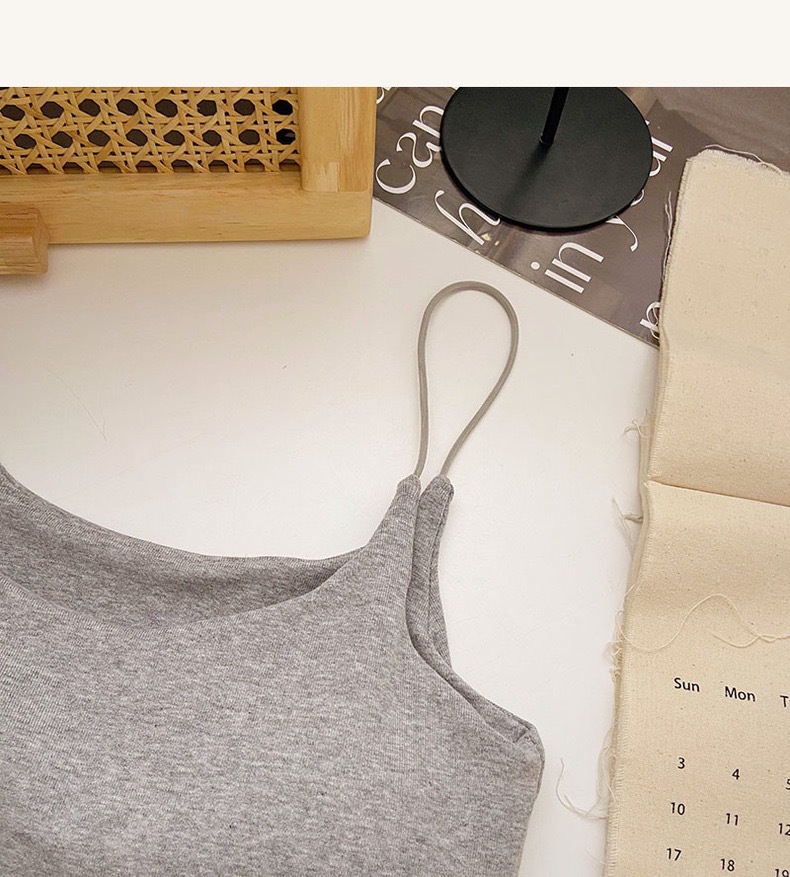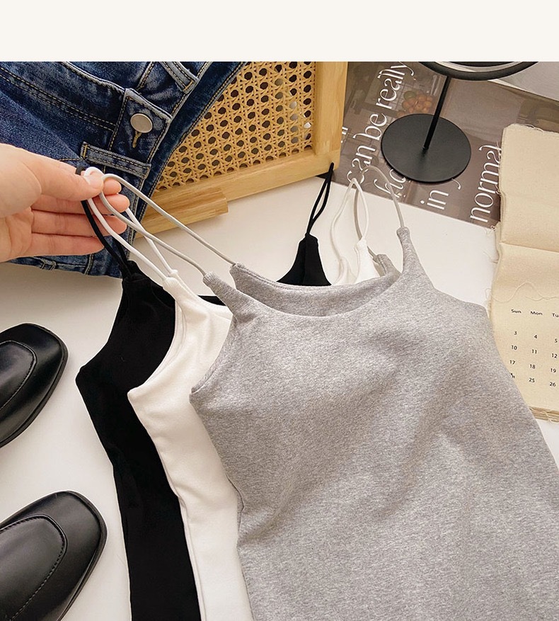 민소매 단색 한국 스타일의 무선 캐미솔 슬림 핏 간단한 가슴 패드 뷰티 백 바닥 겉옷 순수 탑스토어 가기