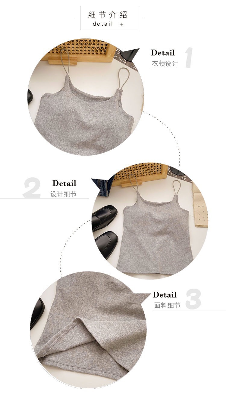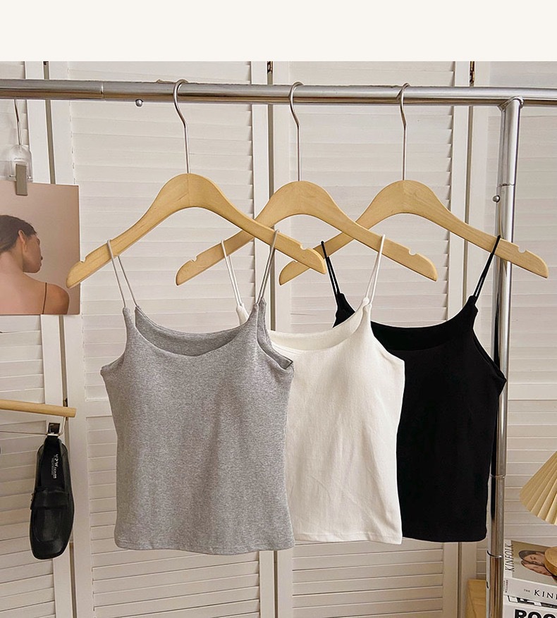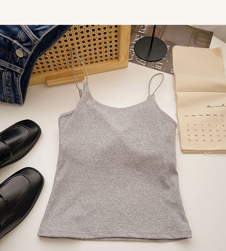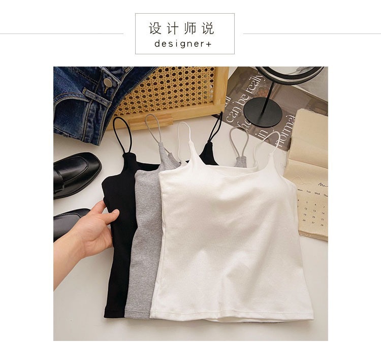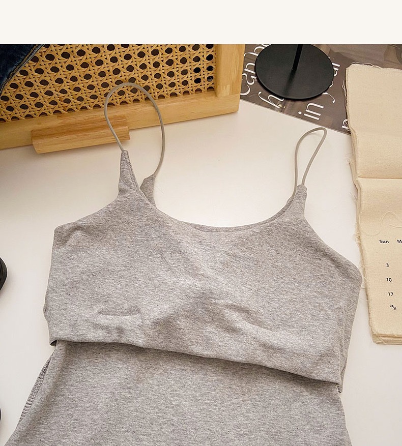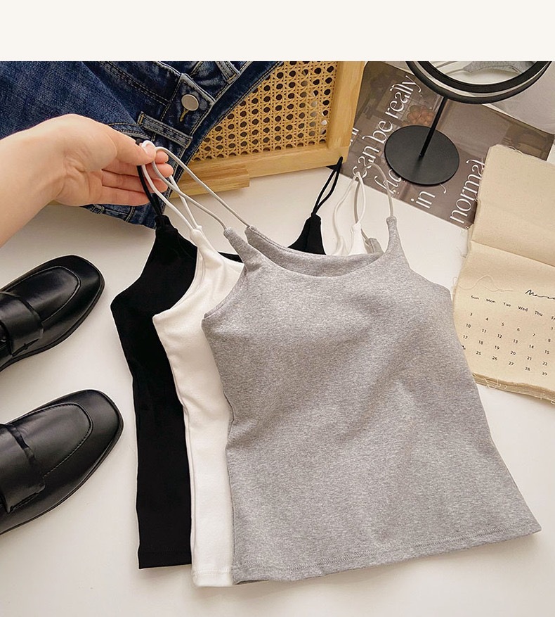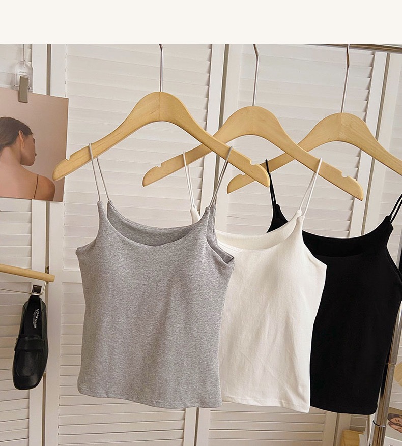 민소매 단색 한국 스타일의 무선 캐미솔 슬림 핏 간단한 가슴 패드 뷰티 백 바닥 겉옷 순수 탑스토어 가기