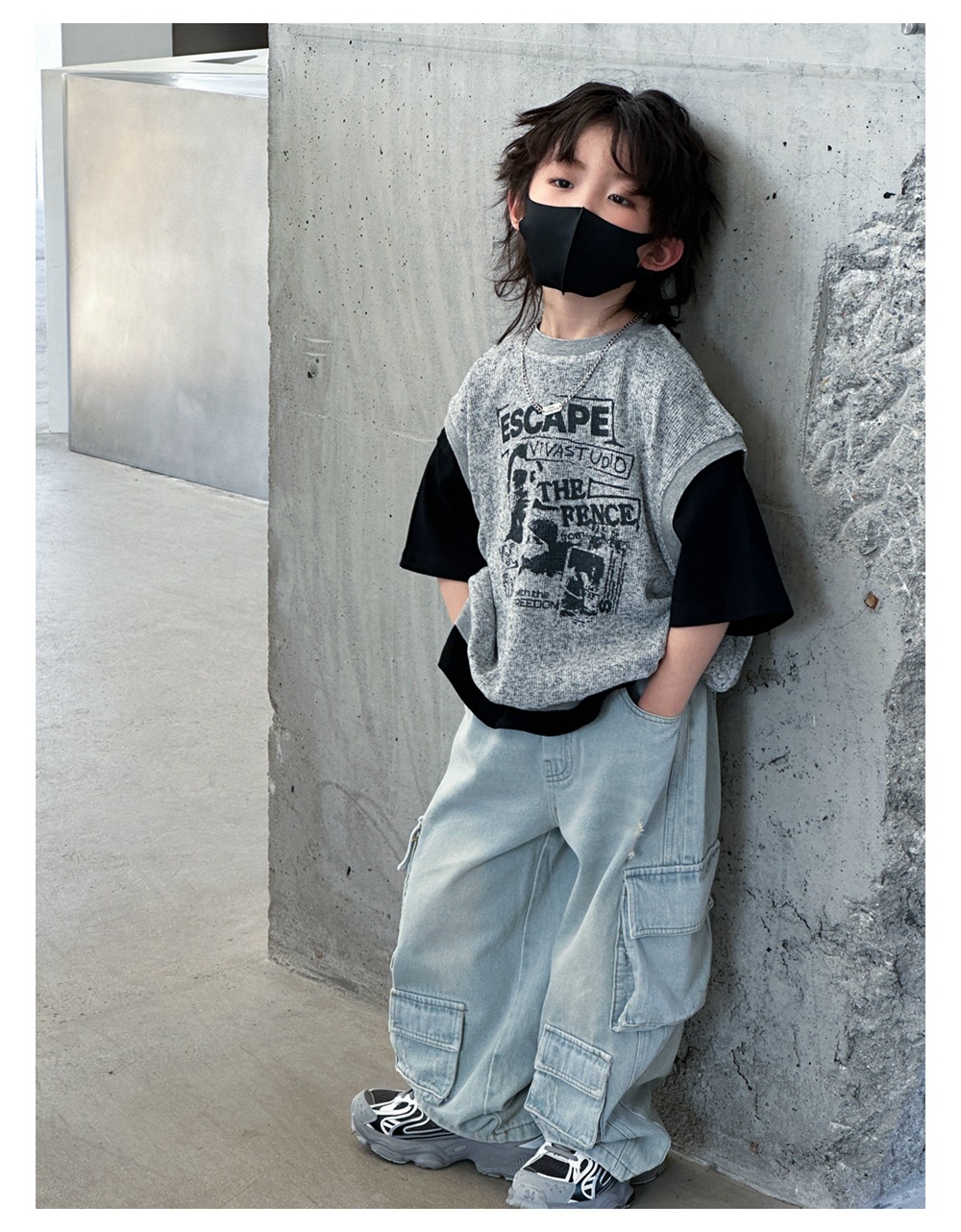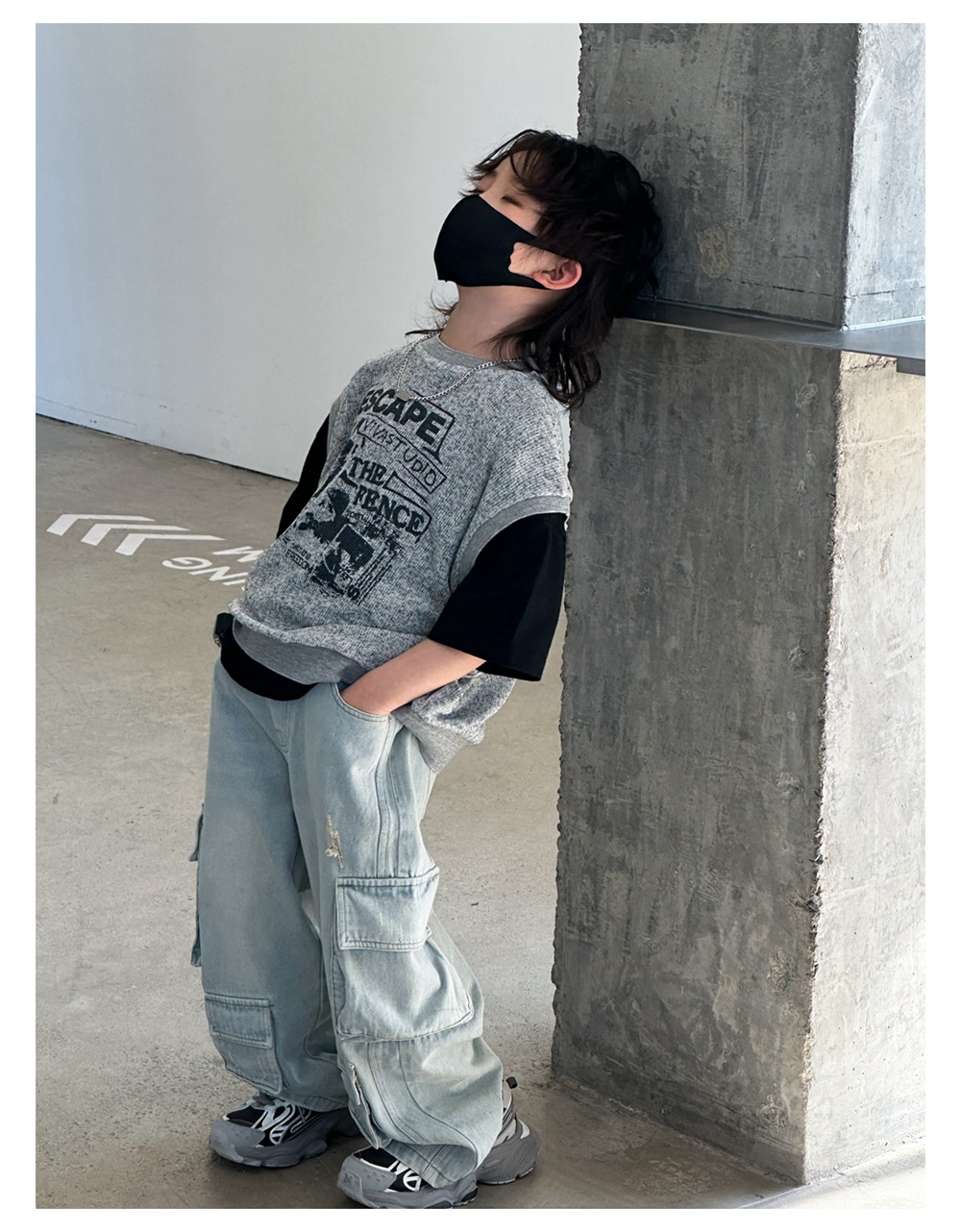 Xiner 2024 봄 새 니트웨어 조끼 봄과 가을 얇은 소년과 소녀의 서양식 스웨터 조끼 패션