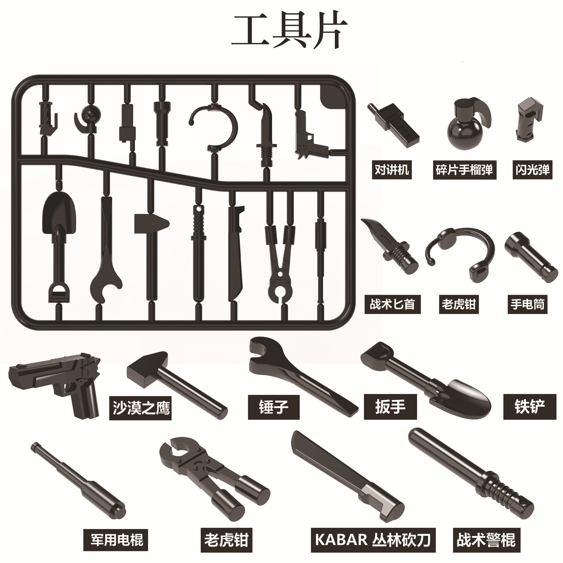 국경 간 군사 시리즈 팬 삽 도끼 무기 조각 액세서리 조립 건물 블록 대외 무역