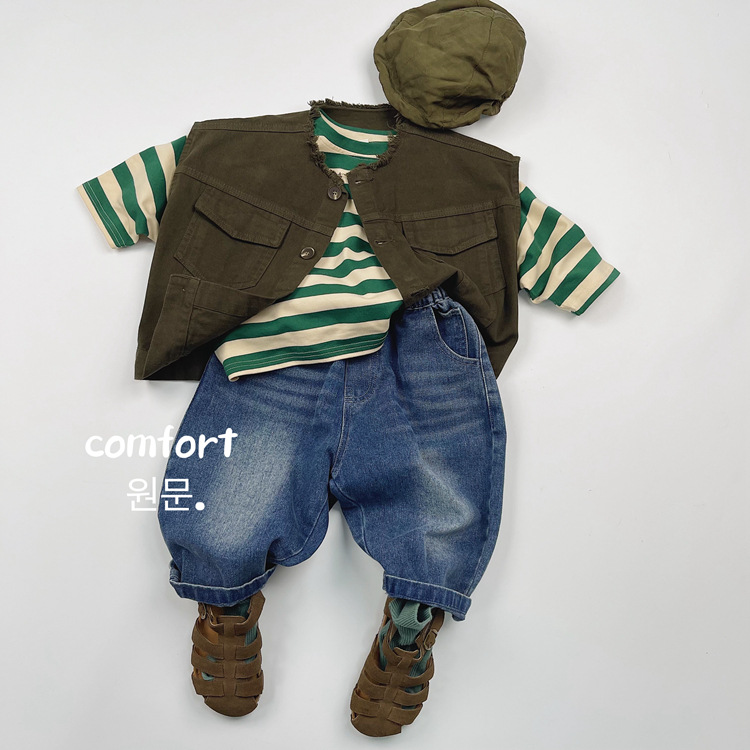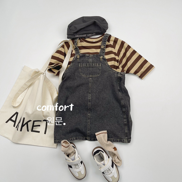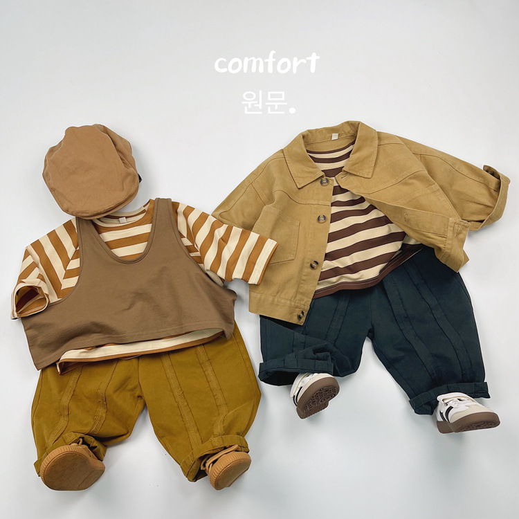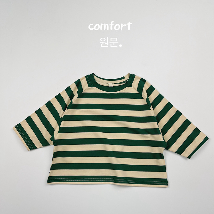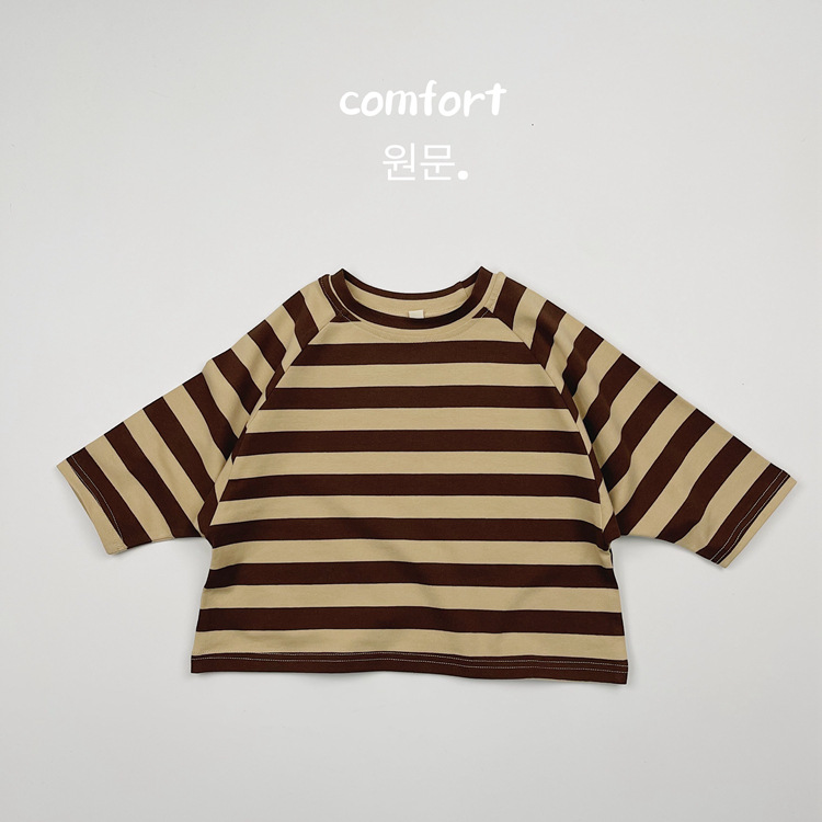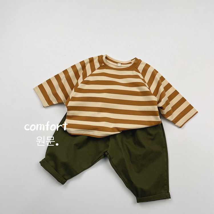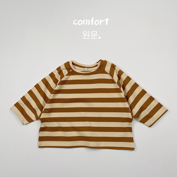 한국어 스타일 일본 어린이 대비 줄무늬 긴팔 티셔츠 봄, 가을 스타일 소년과 소녀 박쥐 라글란 슬리브 라운드 넥 바닥 셔츠스토어 가기