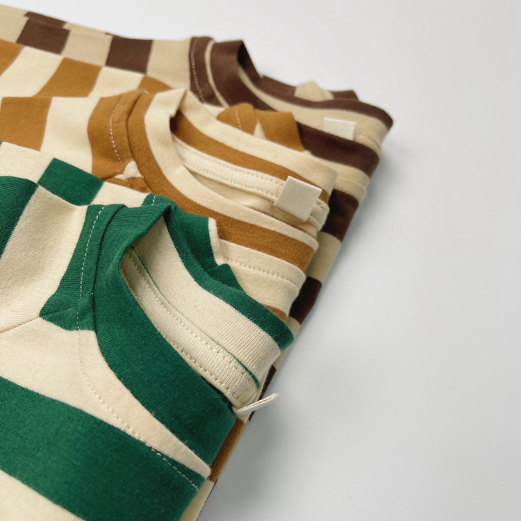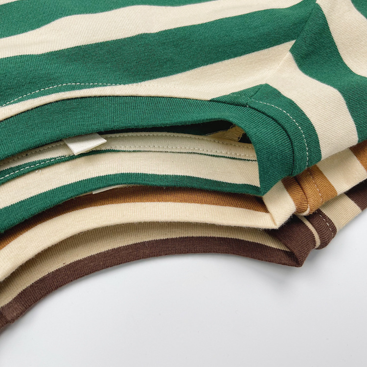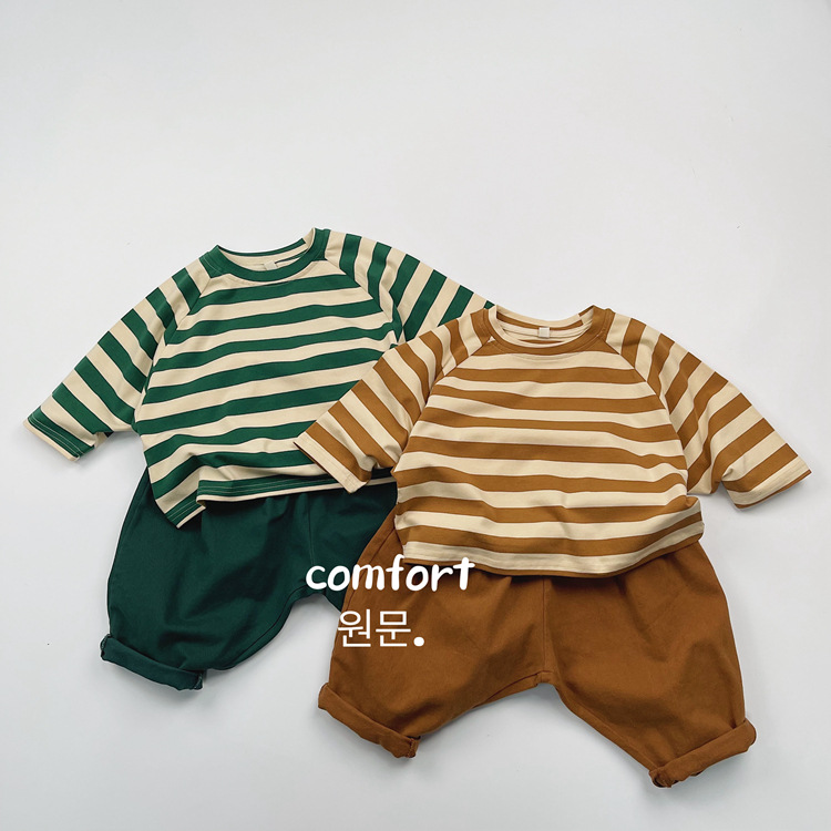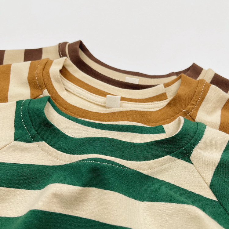 한국어 스타일 일본 어린이 대비 줄무늬 긴팔 티셔츠 봄, 가을 스타일 소년과 소녀 박쥐 라글란 슬리브 라운드 넥 바닥 셔츠