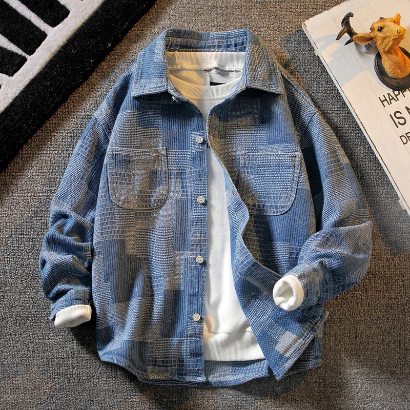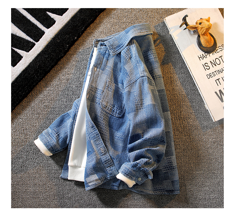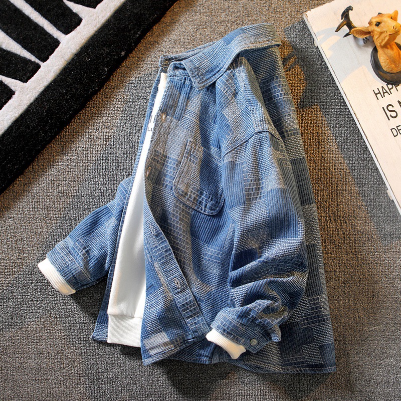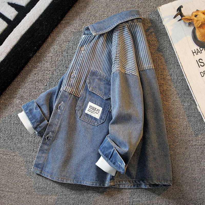 어린이 의류 소년 가을 코트 2023 새로운 중형 및 대형 어린이 캐주얼 데님 셔츠 소년 봄과 가을 어린이 셔츠스토어 가기