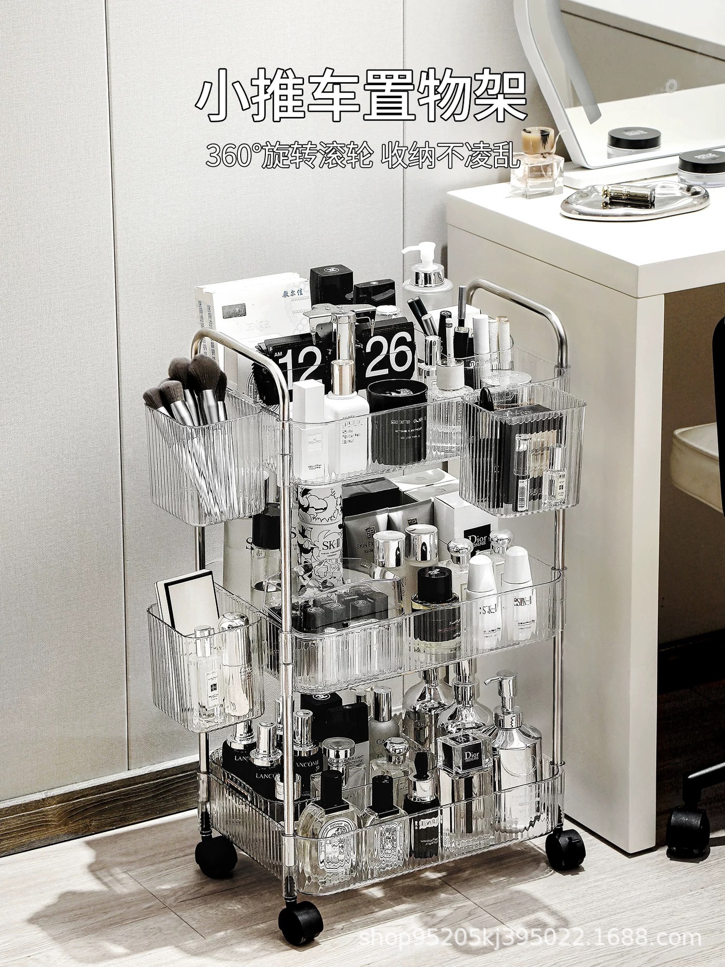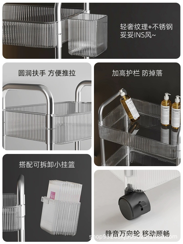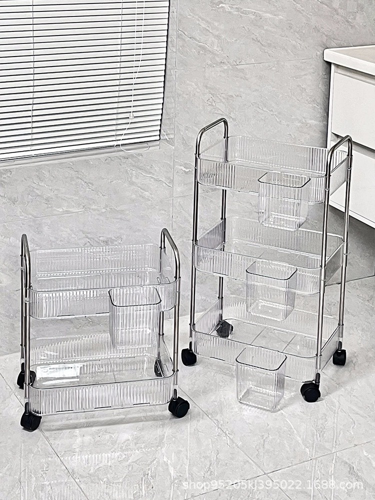 가벼운 럭셔리 아크릴 트롤리 욕실 틈새 수납 선반 거실 간식 정리 선반 다층 이동식 정리대스토어 가기
