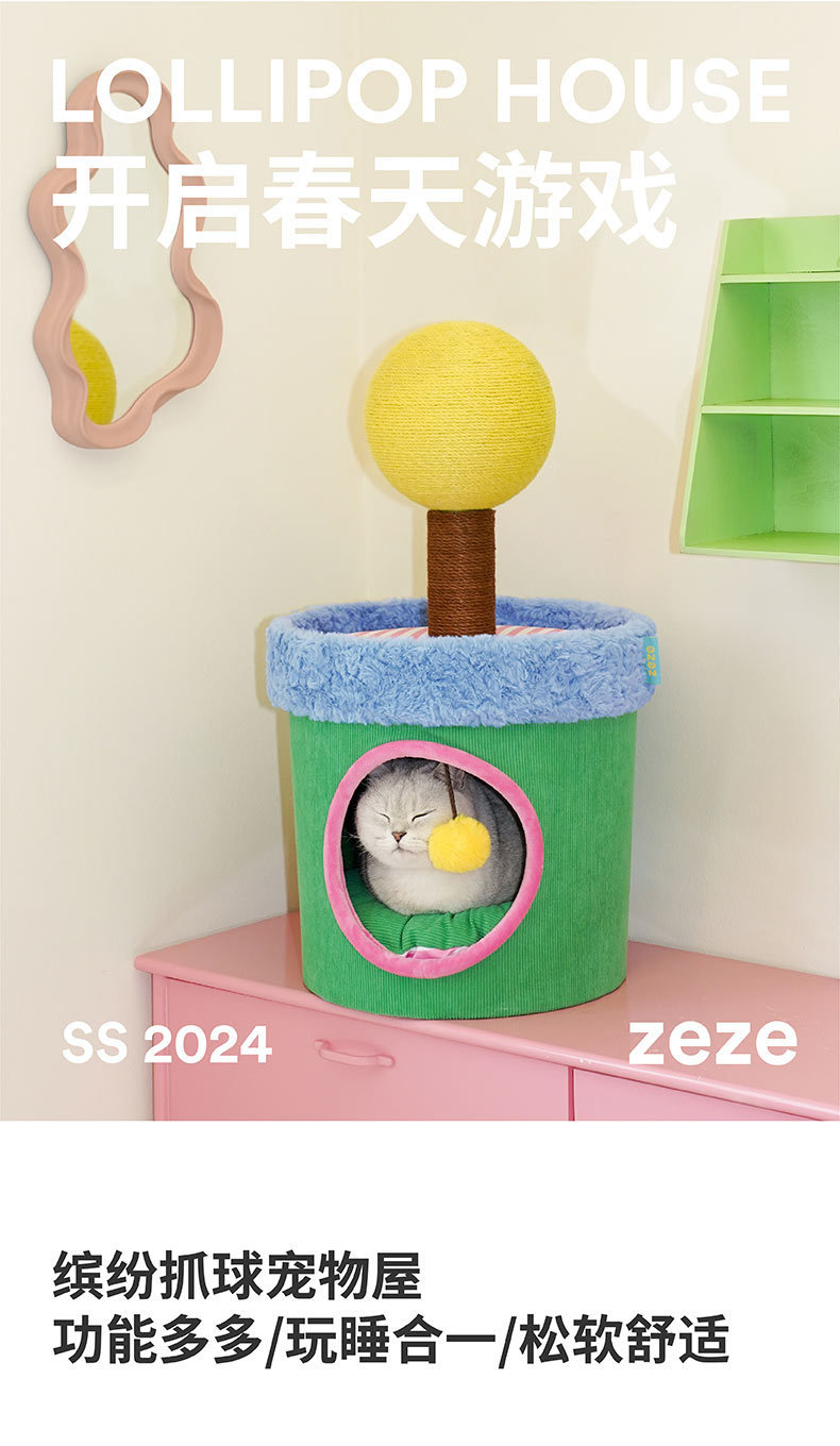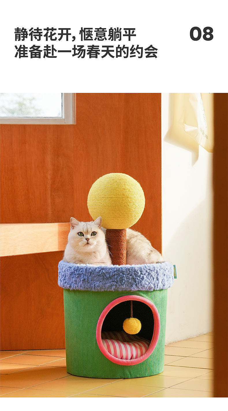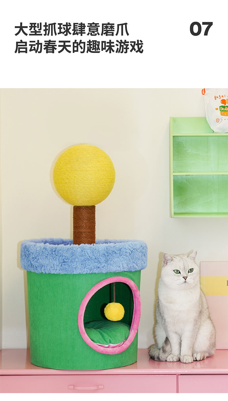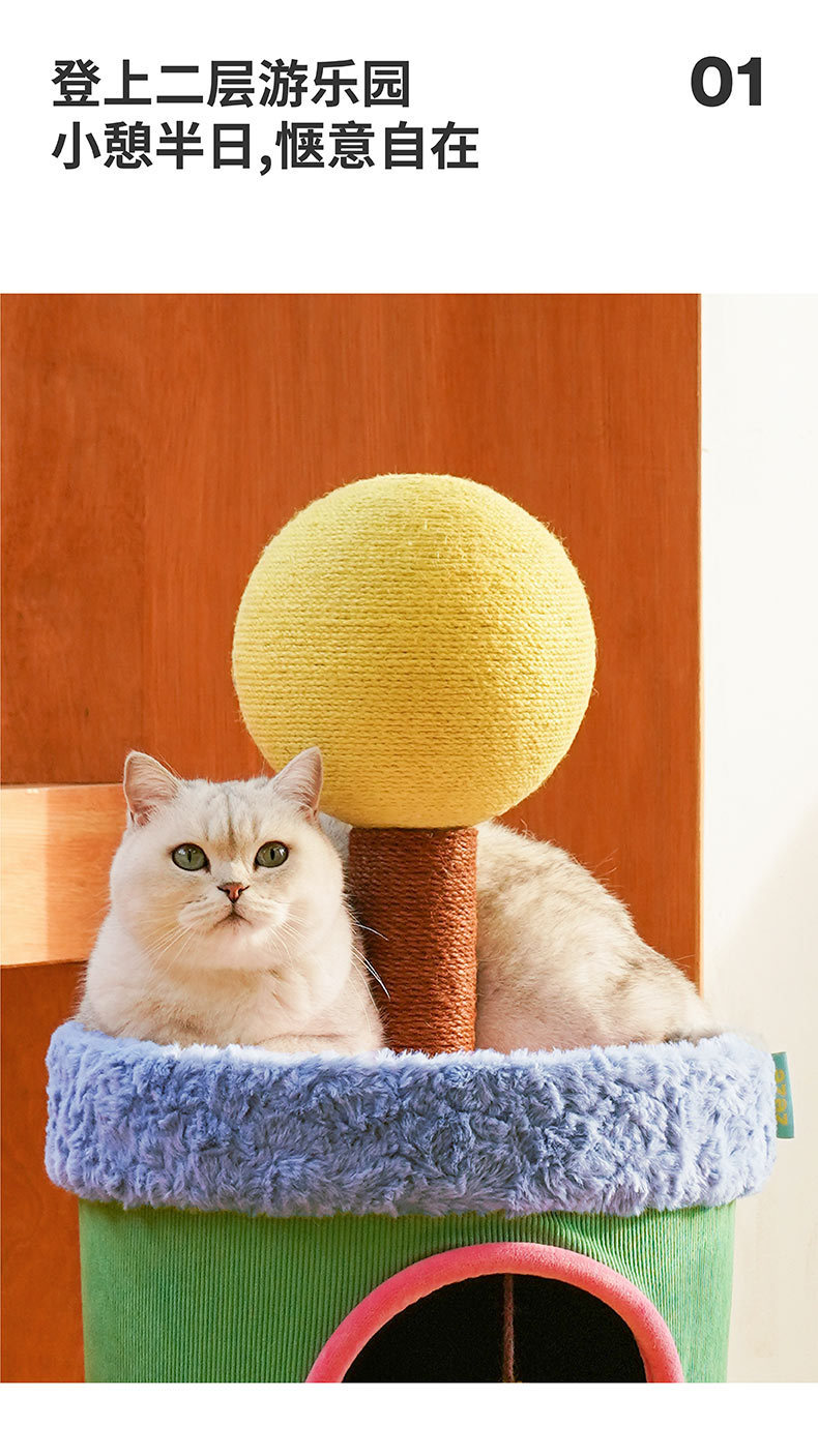 제제 다채로운 색상의 고양이 집, 따뜻한 밀폐형 고양이 하우스, 캣타워 일체형, 부드럽고 통기성 좋은 애완동물 빌라, 고양이 클라이밍 프레임스토어 가기