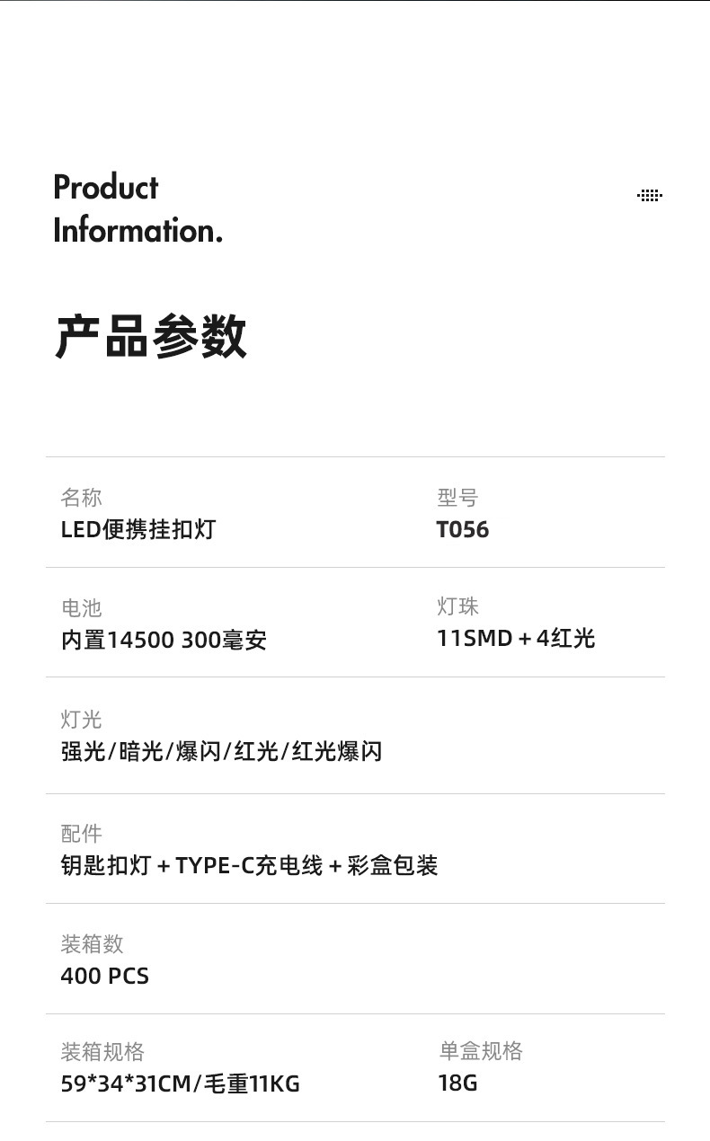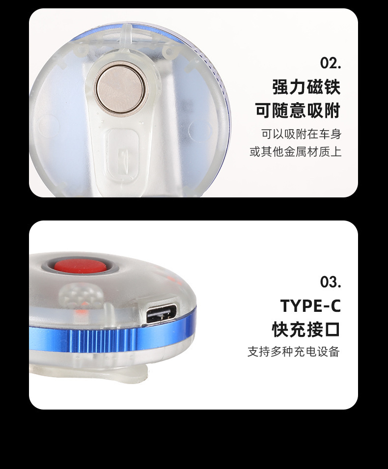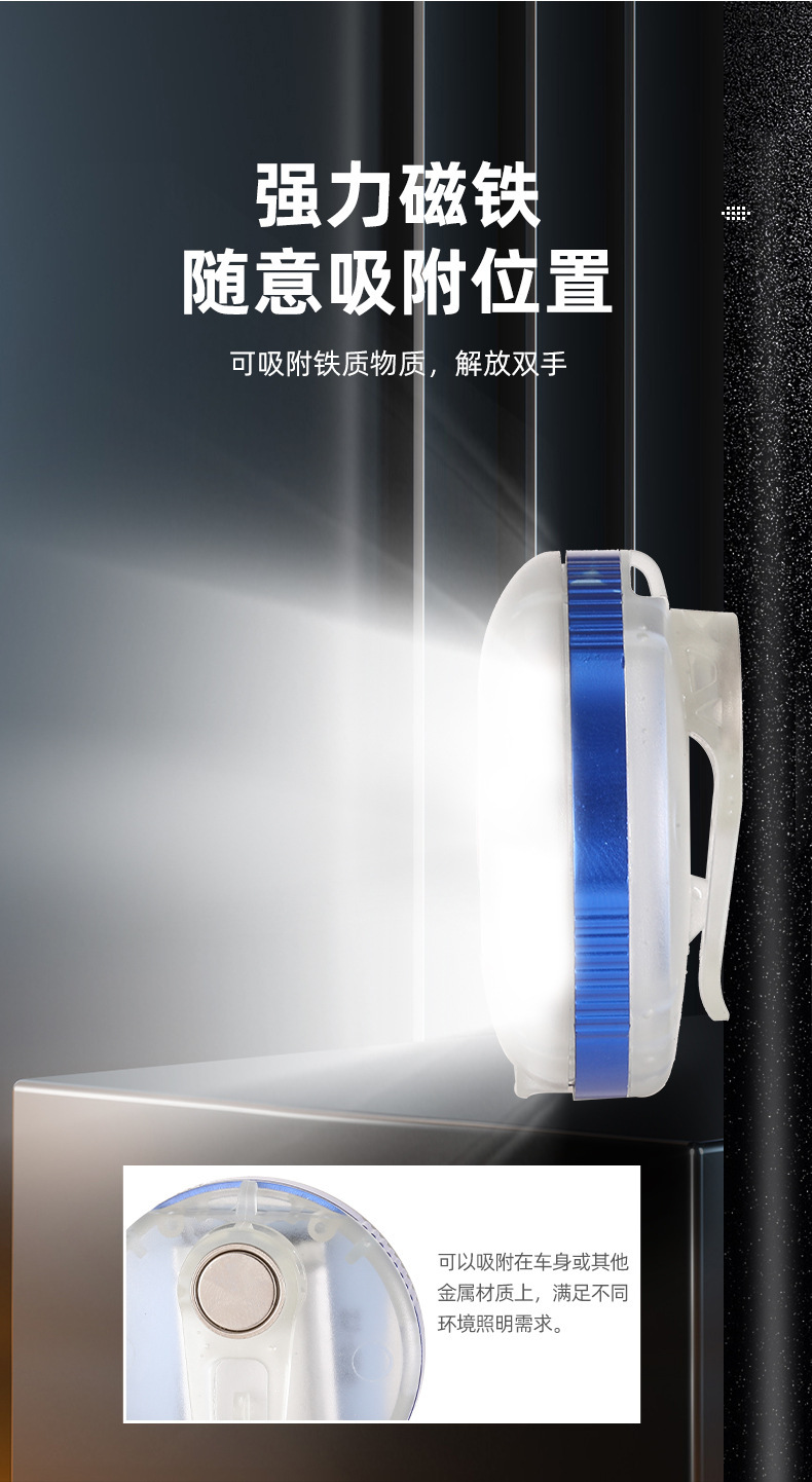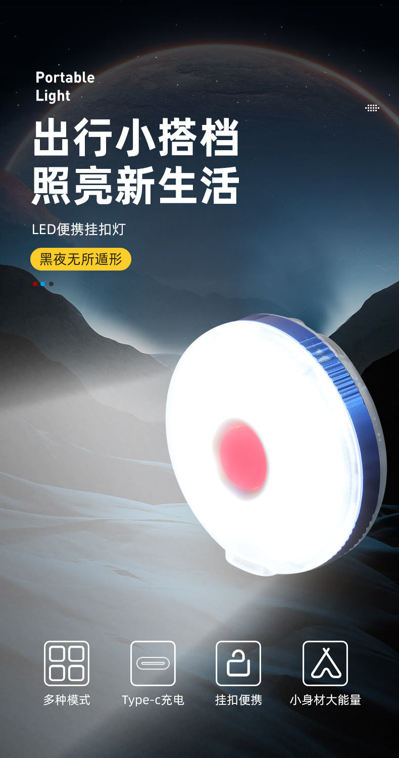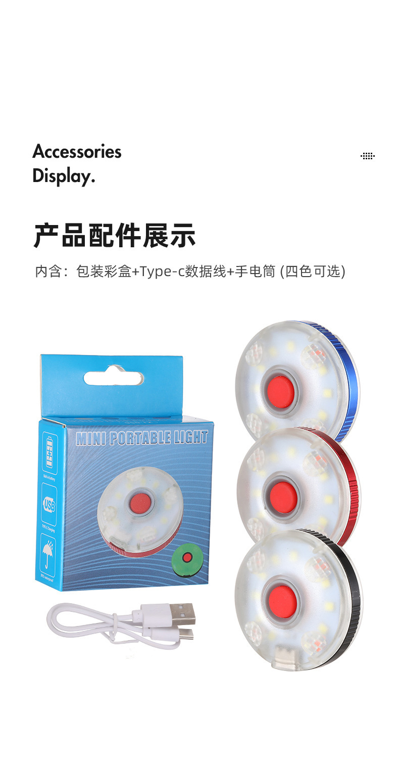 Ruiying 야외 다기능 미니 키 체인 라이트 자석 후크 유형-c 충전식 작업 빛 휴대용 배낭 조명