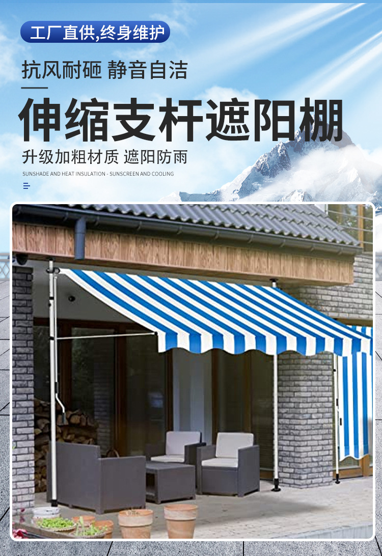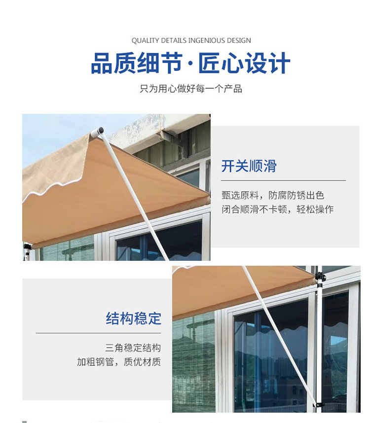 상점 차양 구멍이없는 접이식 캐노피 가게 문 차양 지붕 가정용 발코니 커튼 손 크랭크