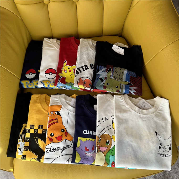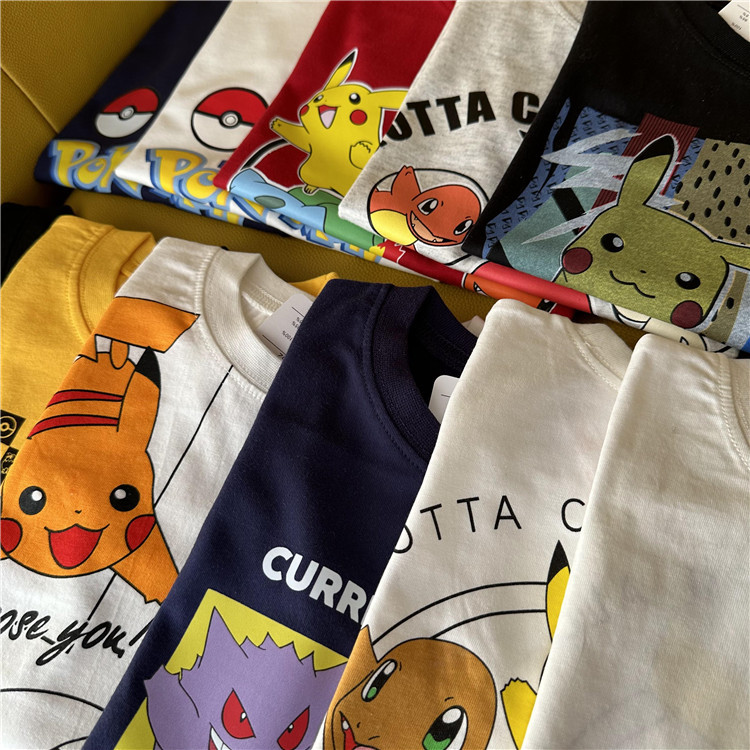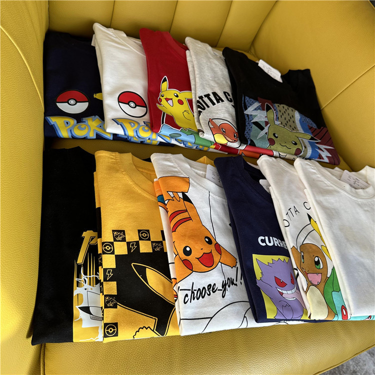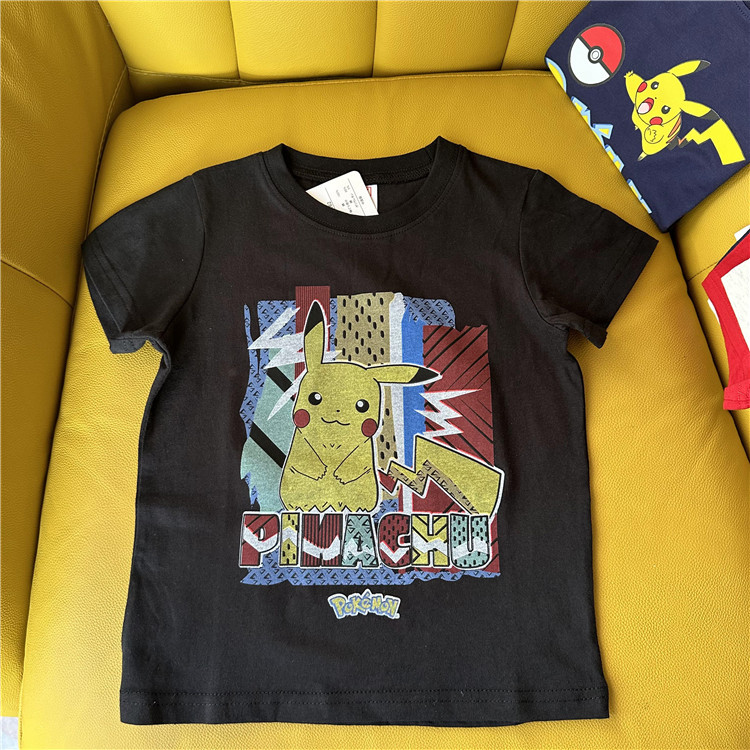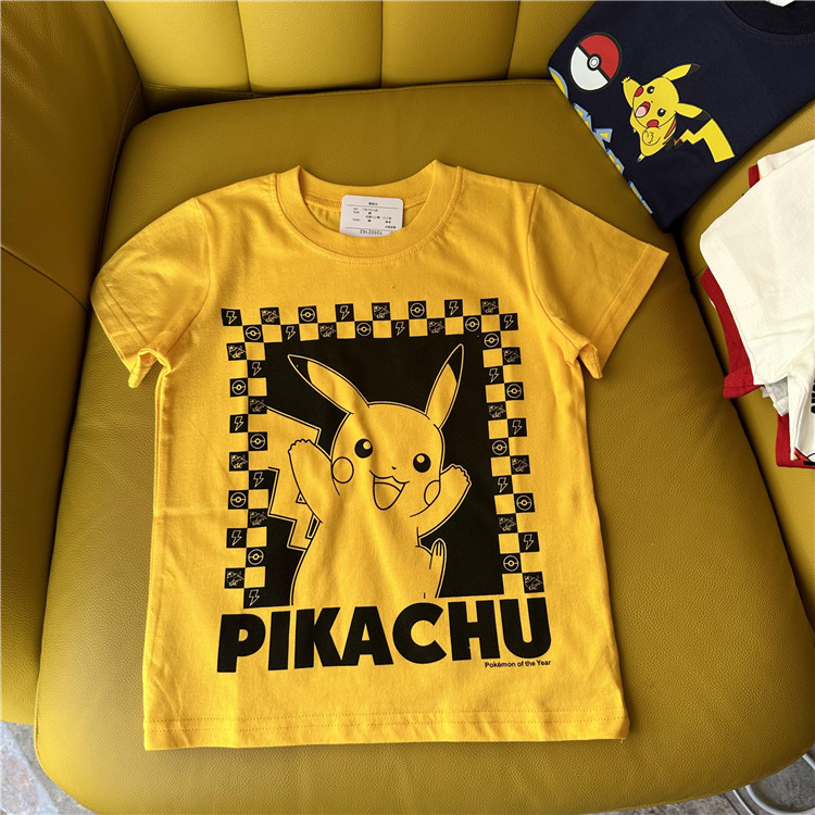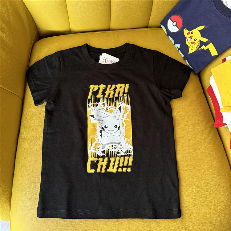日单外贸卡通动漫皮卡丘系列童装夏季短袖T恤衫