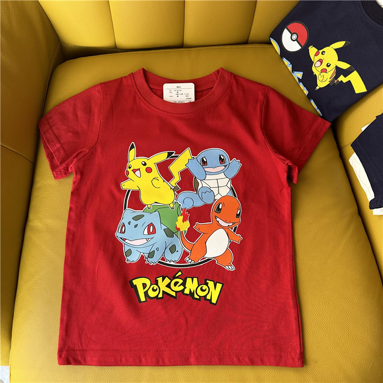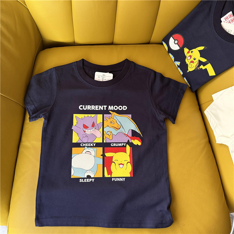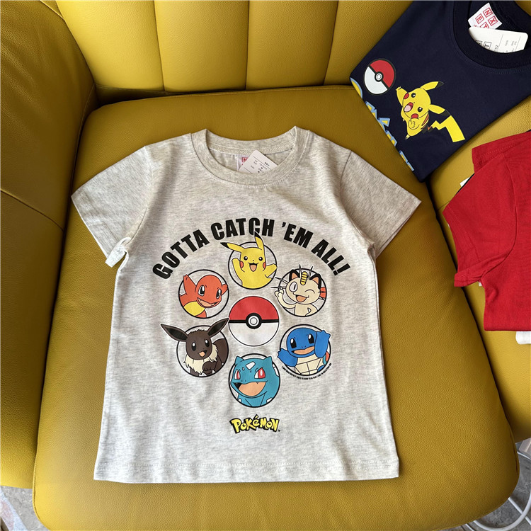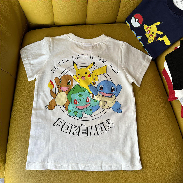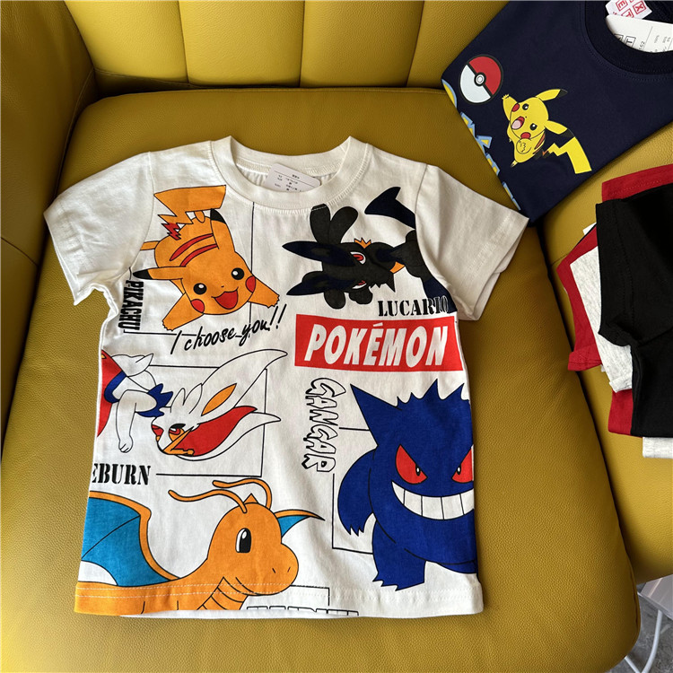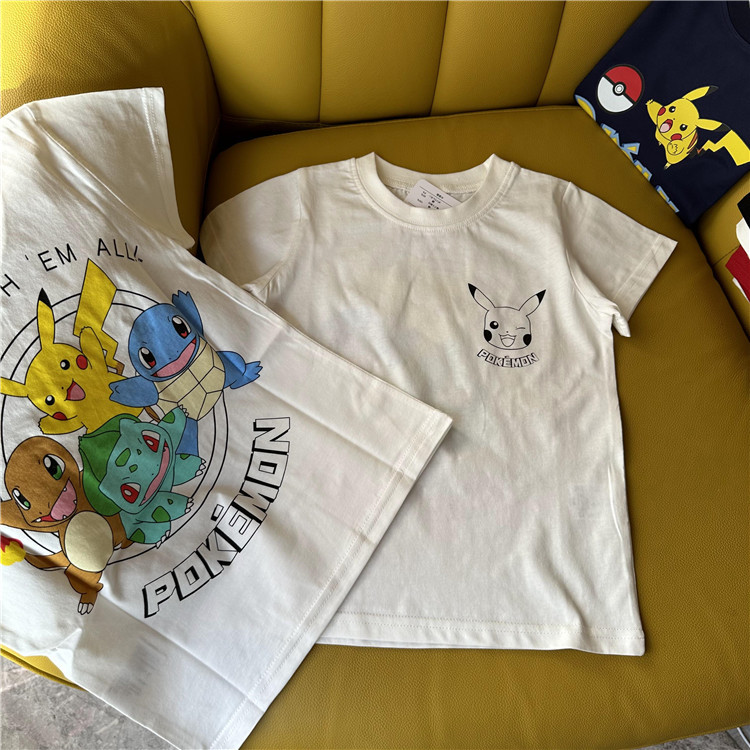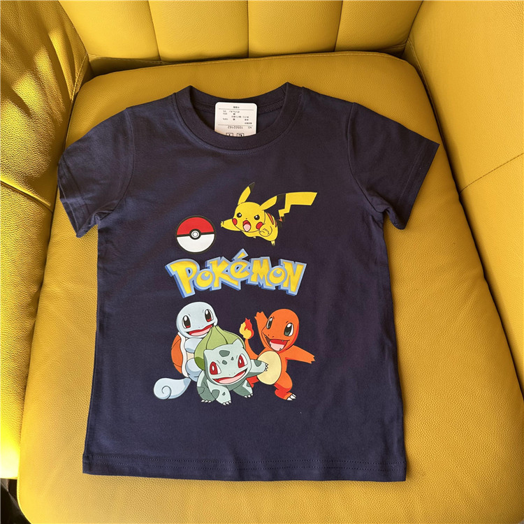 日单外贸卡通动漫皮卡丘系列童装夏季短袖T恤衫