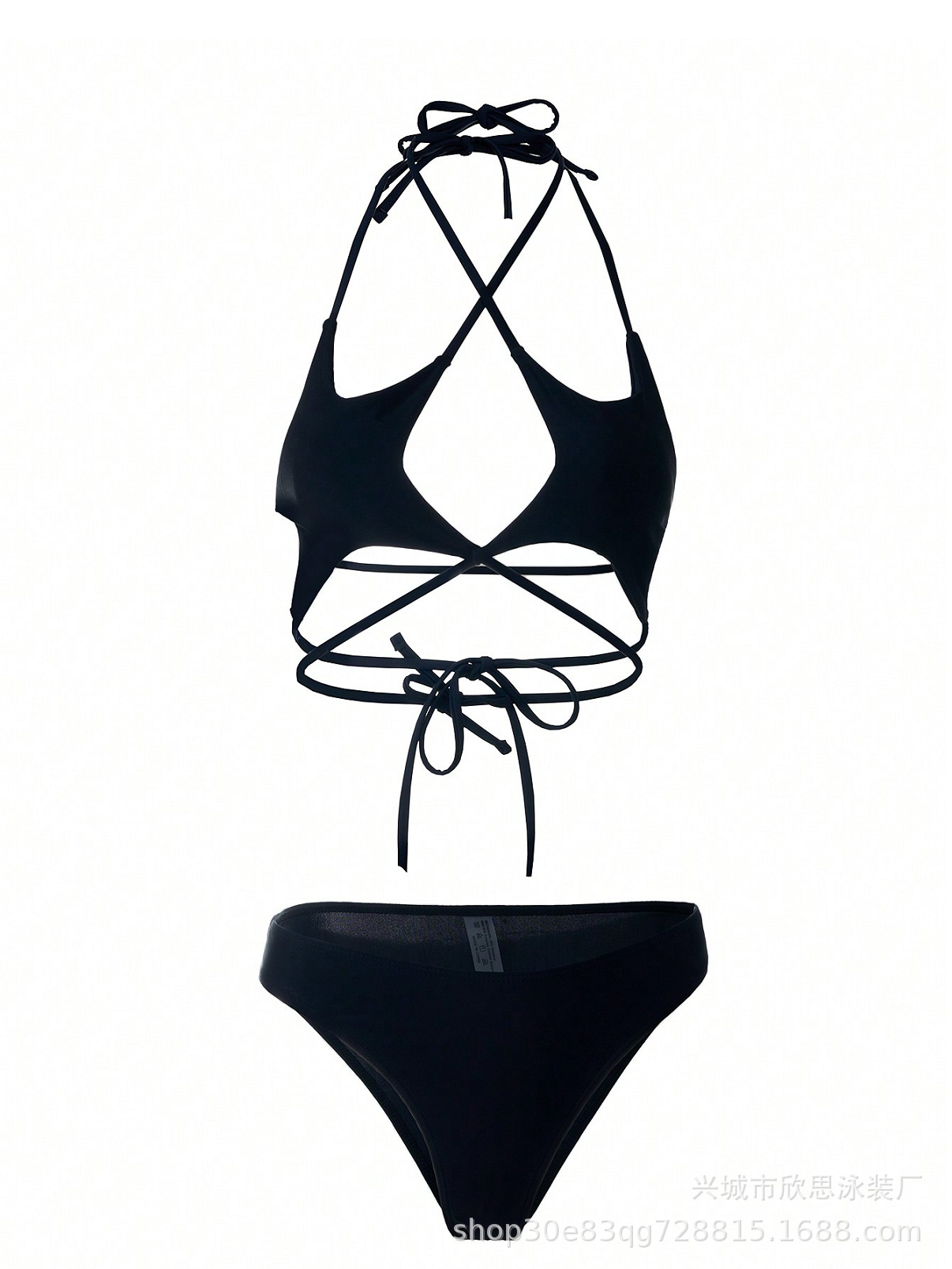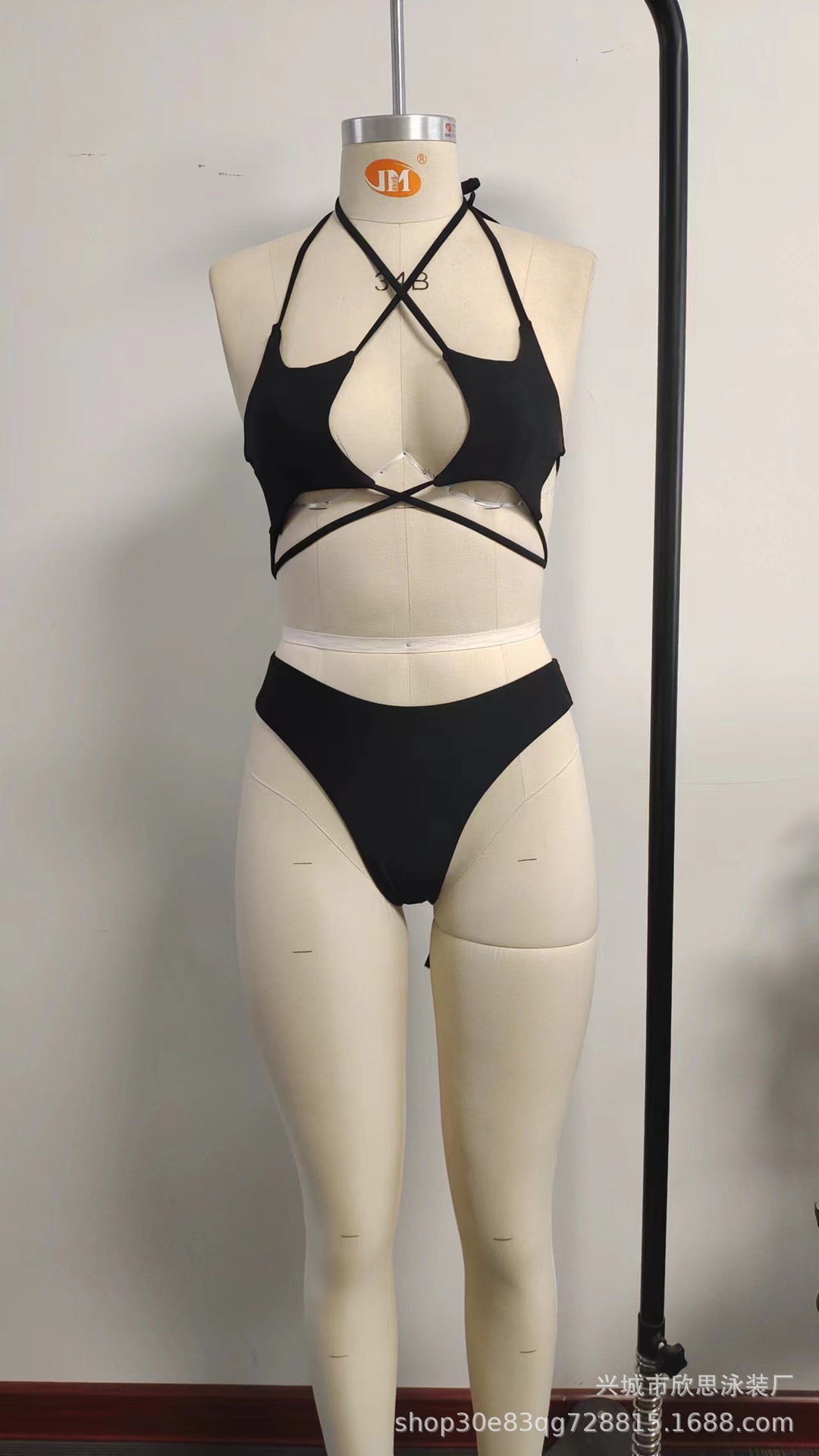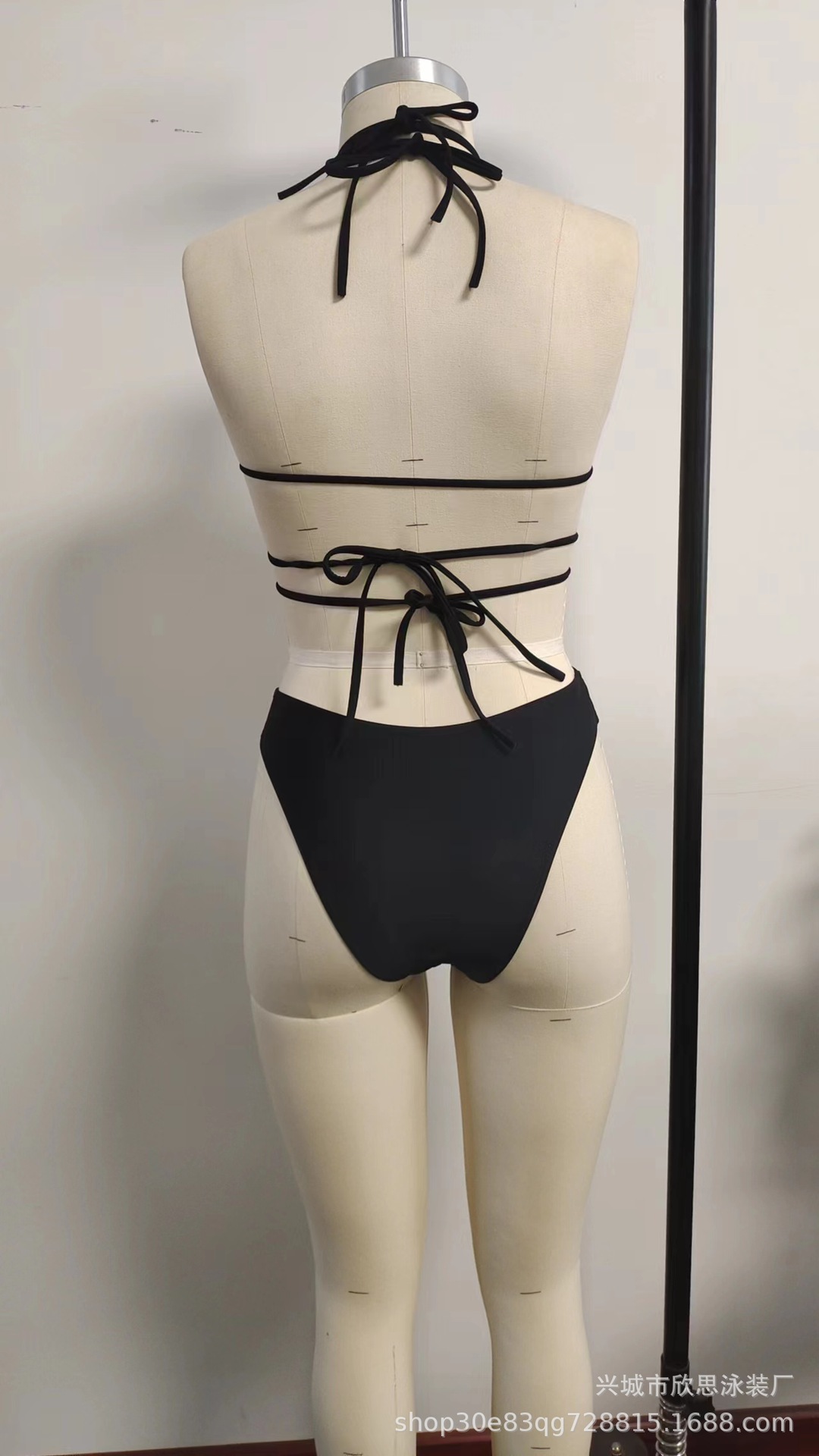 허울다오 2026 신상 블랙 레이스업 수영복 유럽 및 미국 섹시 여성용 5성급 스플릿 비키니