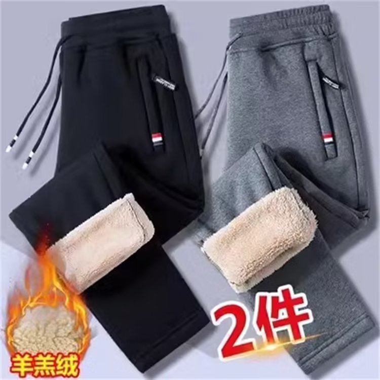 남자 기모 바지 남성용 두꺼운 스포츠 바지 가을과 겨울 따뜻한 람스울 스웨트 팬츠 느슨한 플러스 사이즈 캐주얼 바지