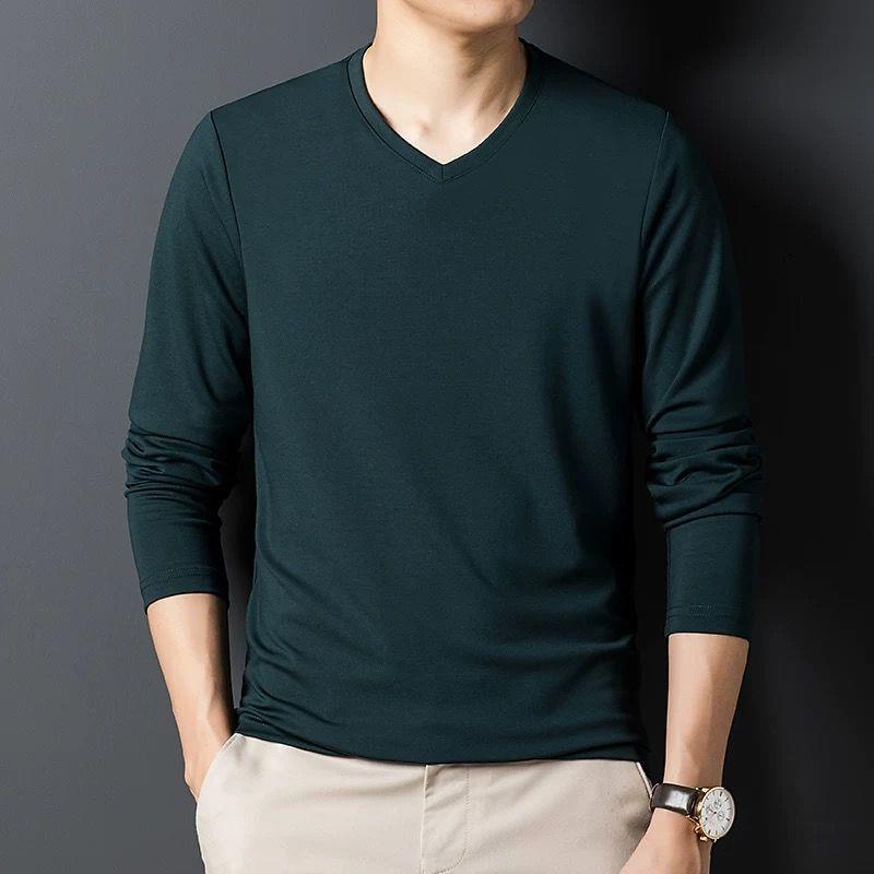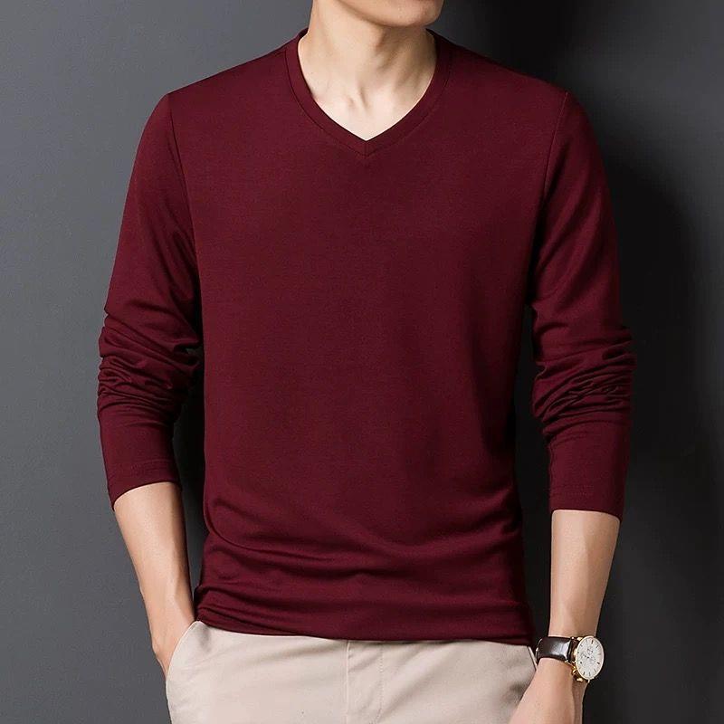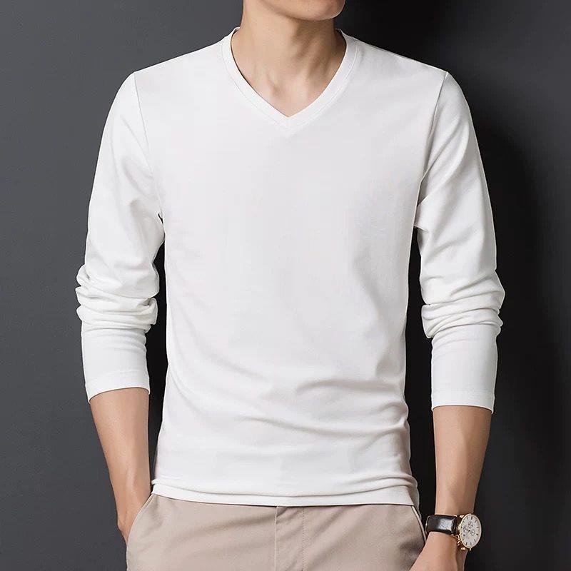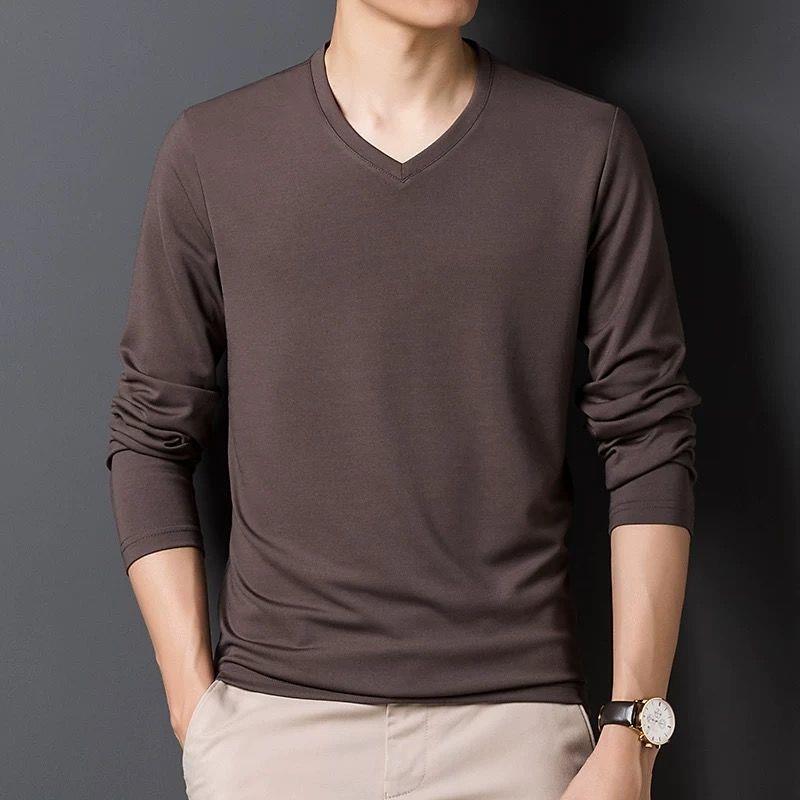 치킨 하트 칼라 티셔츠 남성용 긴 소매 플러스 뚱뚱한 크기 봄과 가을 새로운 가을 남성 패션 얇은 v 칼라 기본 셔츠 도매스토어 가기