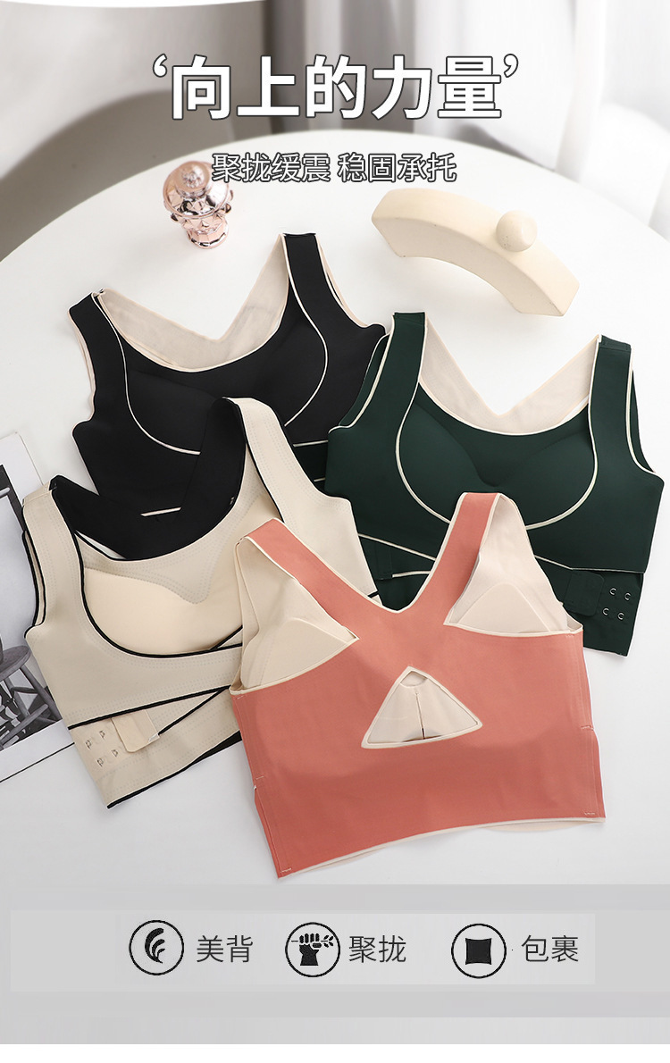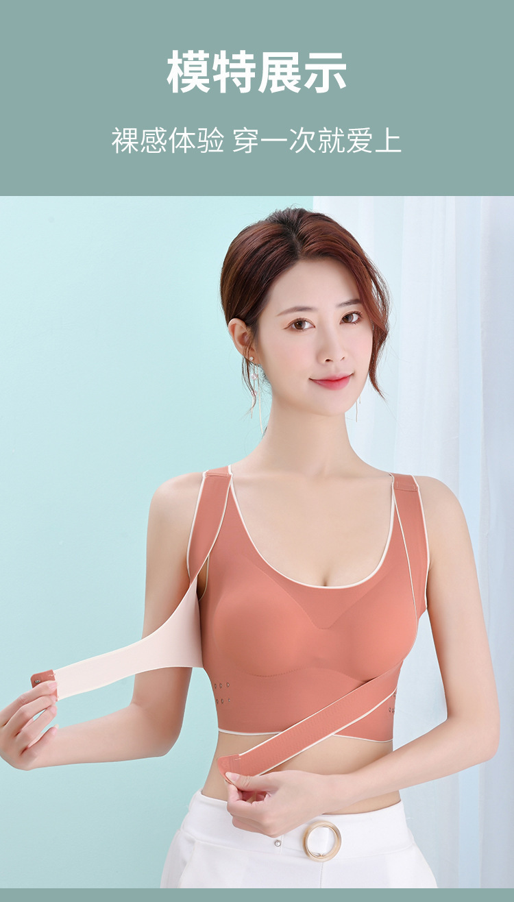 여성용 크로스 사이드 버클 뷰티백 스포츠 탱크탑, 라지 사이즈, 외출용 가능, 노라인 노와이어 브라, 바디쉐이핑, 빅 백리스스토어 가기