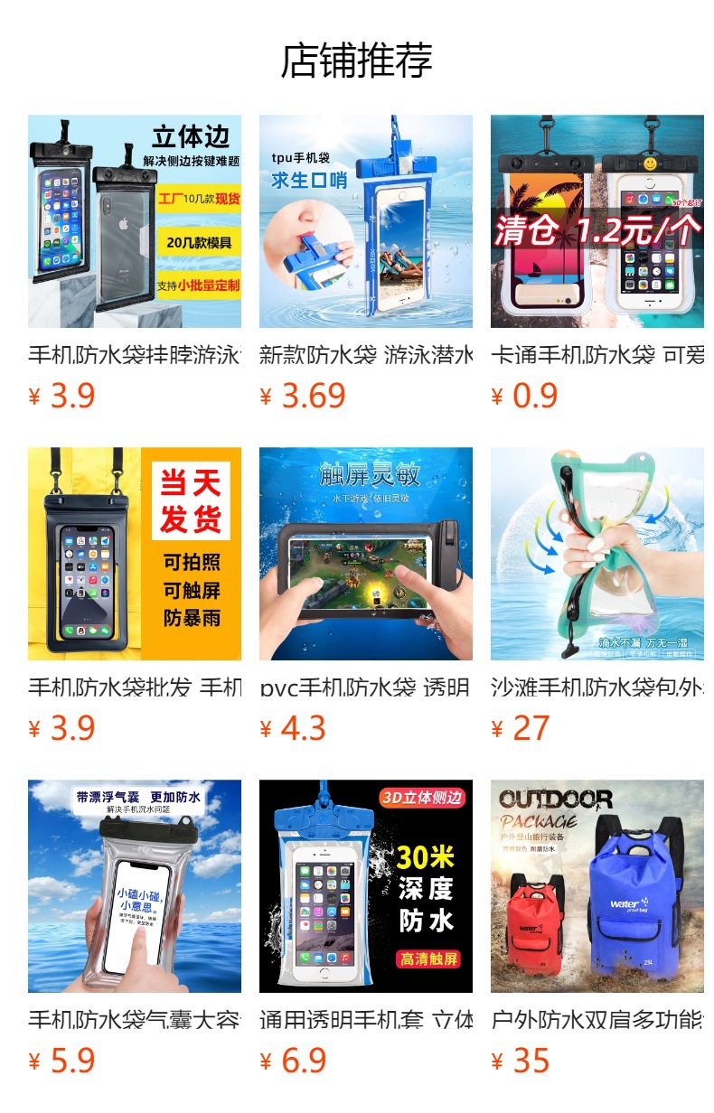 빛나는 휴대 전화 방수 가방 터치 스크린 수영 투명 빛나는 방수 휴대 전화 가방 휴대 전화 방수 케이스스토어 가기