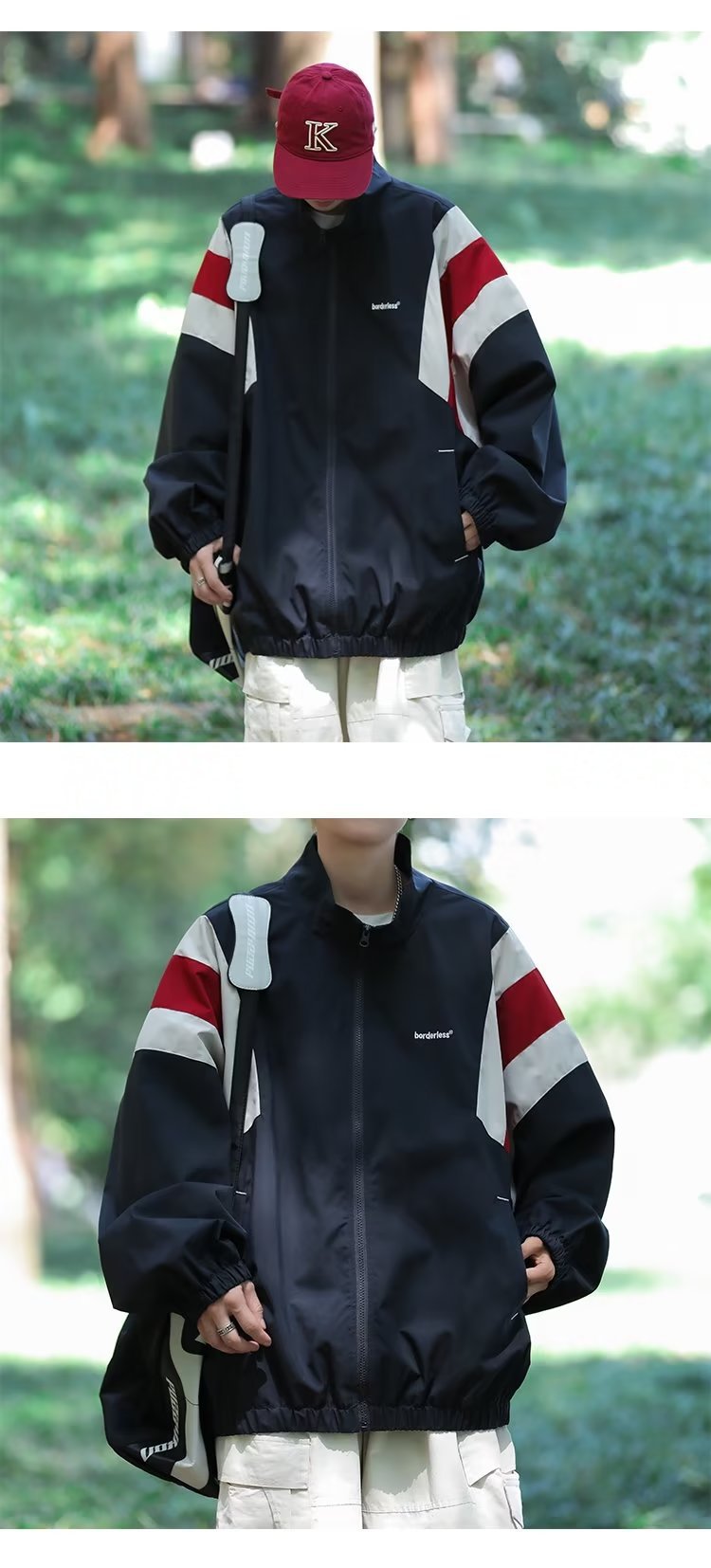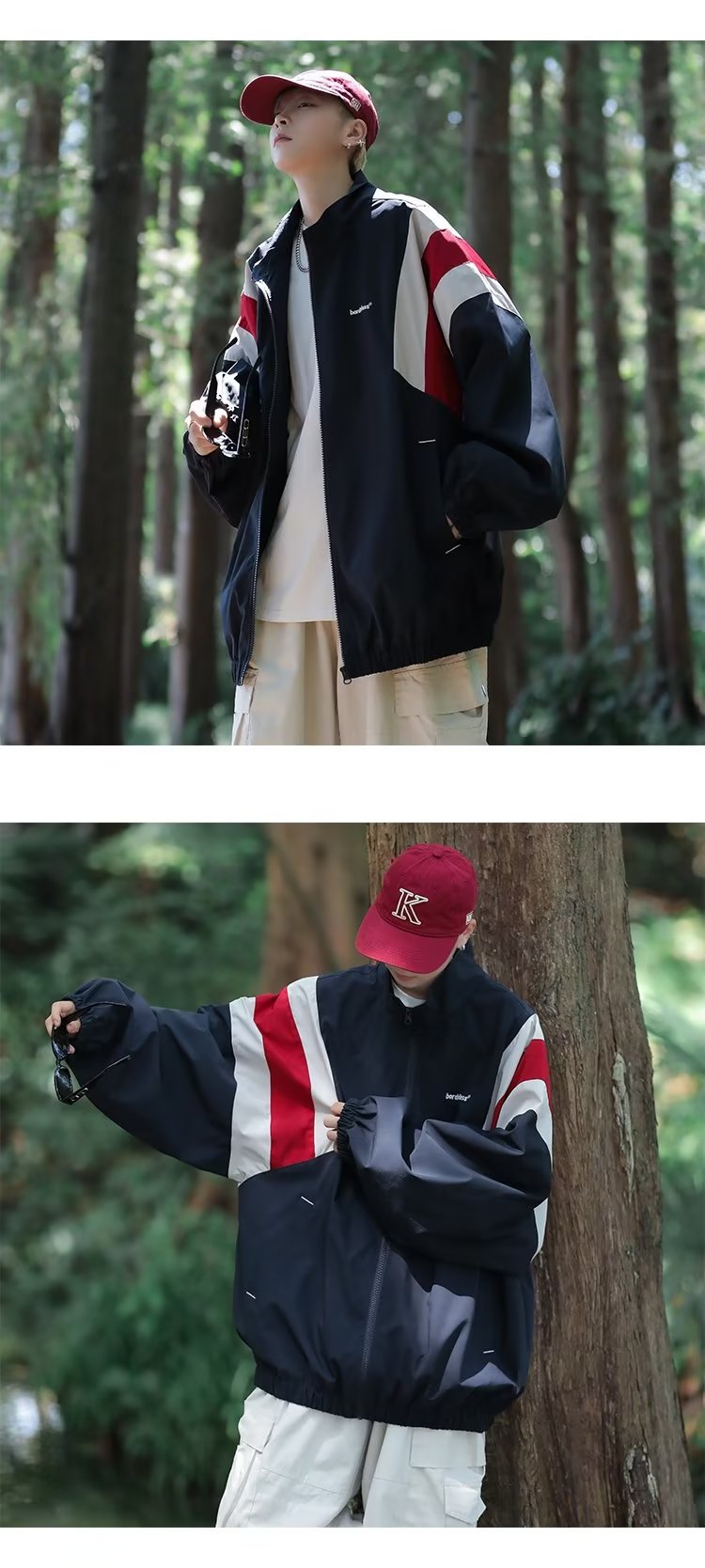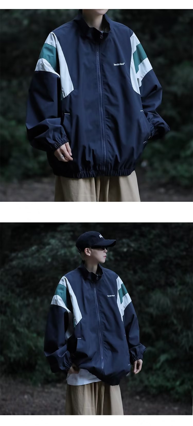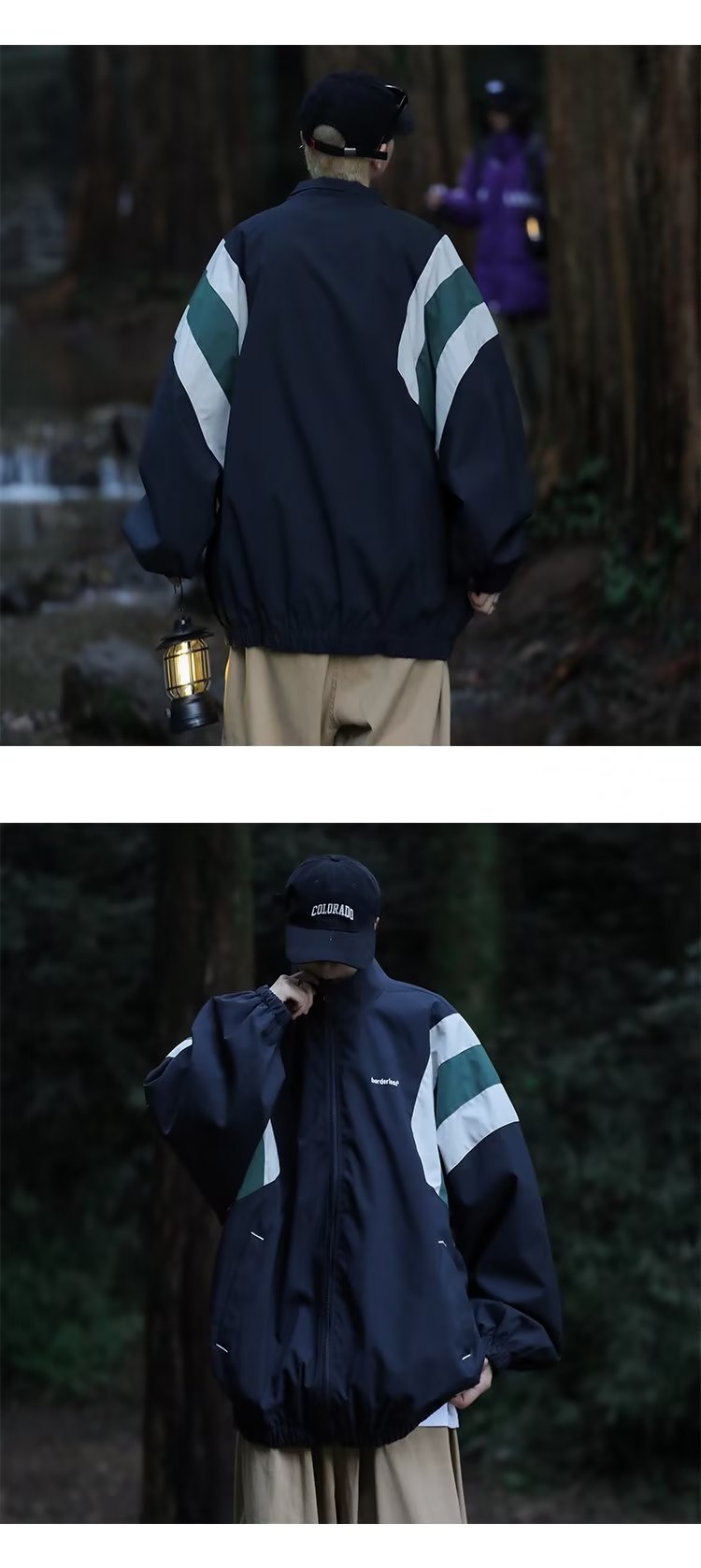 일본식 컬러 매칭 재킷 남성 산 패션 브랜드 미국 복고풍 느슨한 Pu 잘 생긴 야외 스탠드 칼라 캐주얼 재킷