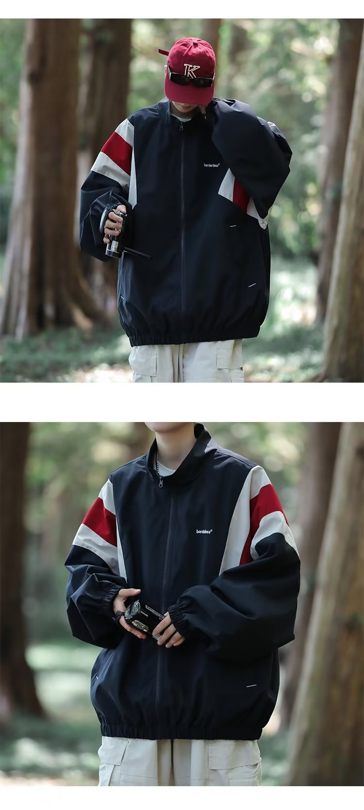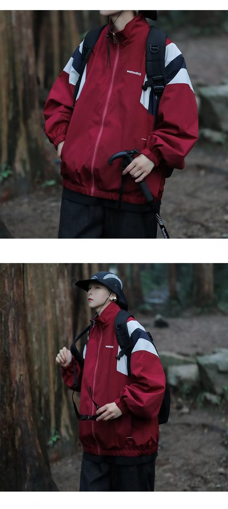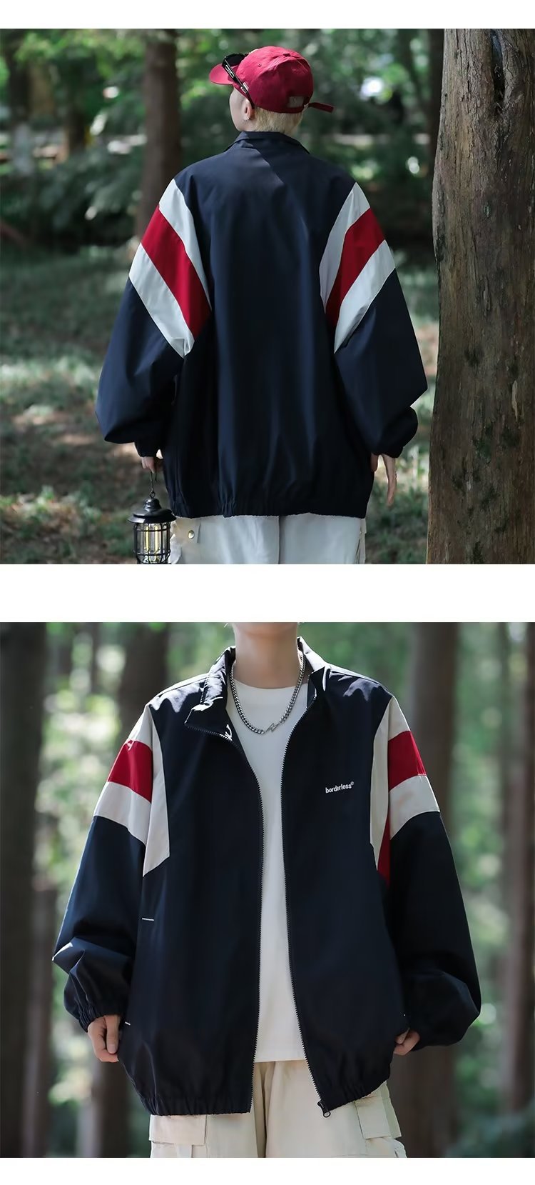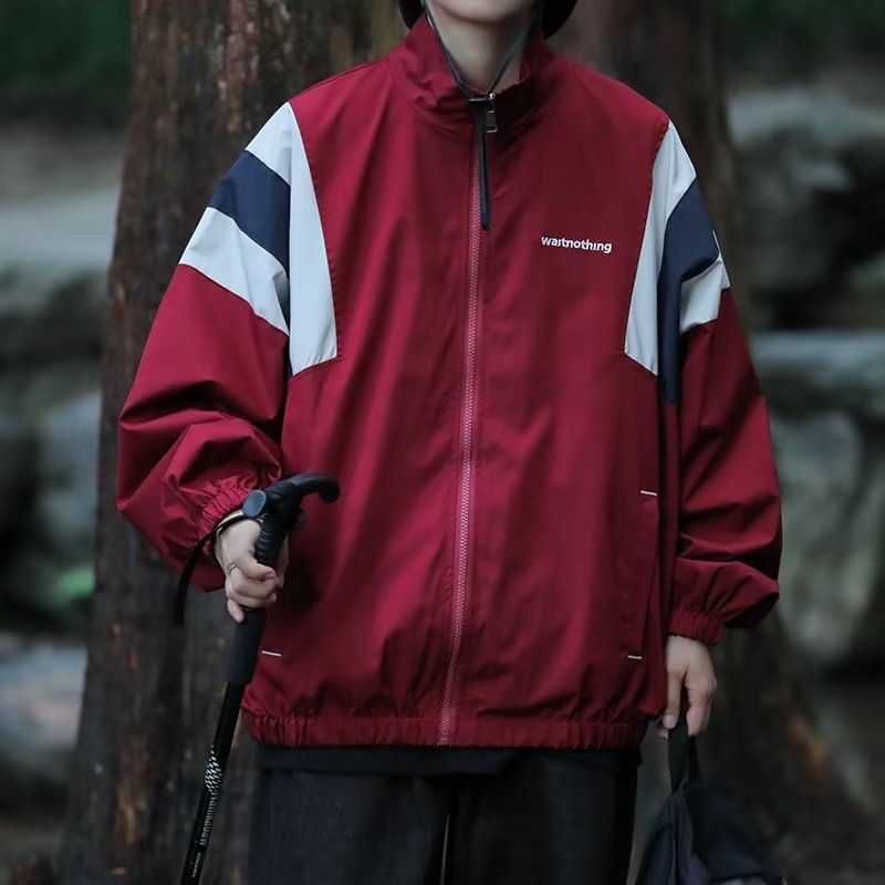일본식 컬러 매칭 재킷 남성 산 패션 브랜드 미국 복고풍 느슨한 Pu 잘 생긴 야외 스탠드 칼라 캐주얼 재킷