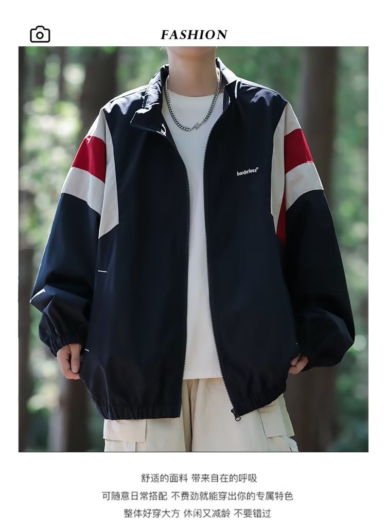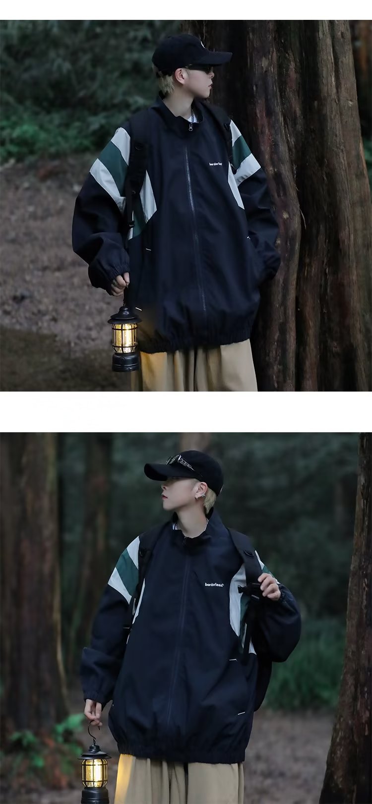 일본식 컬러 매칭 재킷 남성 산 패션 브랜드 미국 복고풍 느슨한 Pu 잘 생긴 야외 스탠드 칼라 캐주얼 재킷스토어 가기