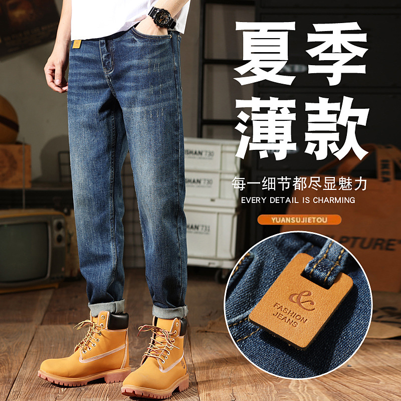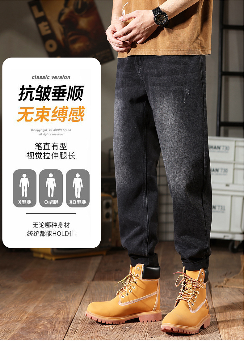 881 신상품 대형 사이즈 신축성 있는 트렌디 브랜드 신축성 허리밴드 청바지 150kg 남성용 청바지 8XL