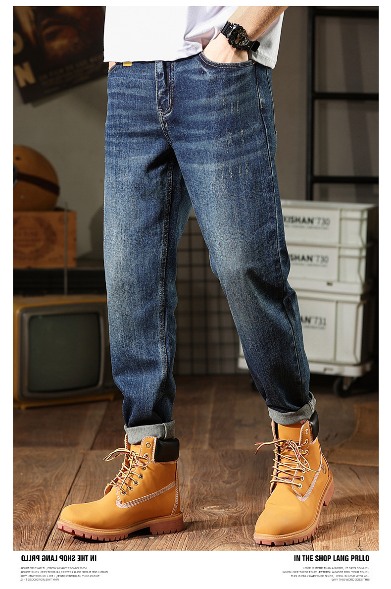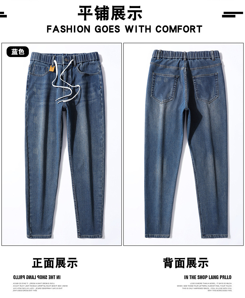 881 신상품 대형 사이즈 신축성 있는 트렌디 브랜드 신축성 허리밴드 청바지 150kg 남성용 청바지 8XL스토어 가기