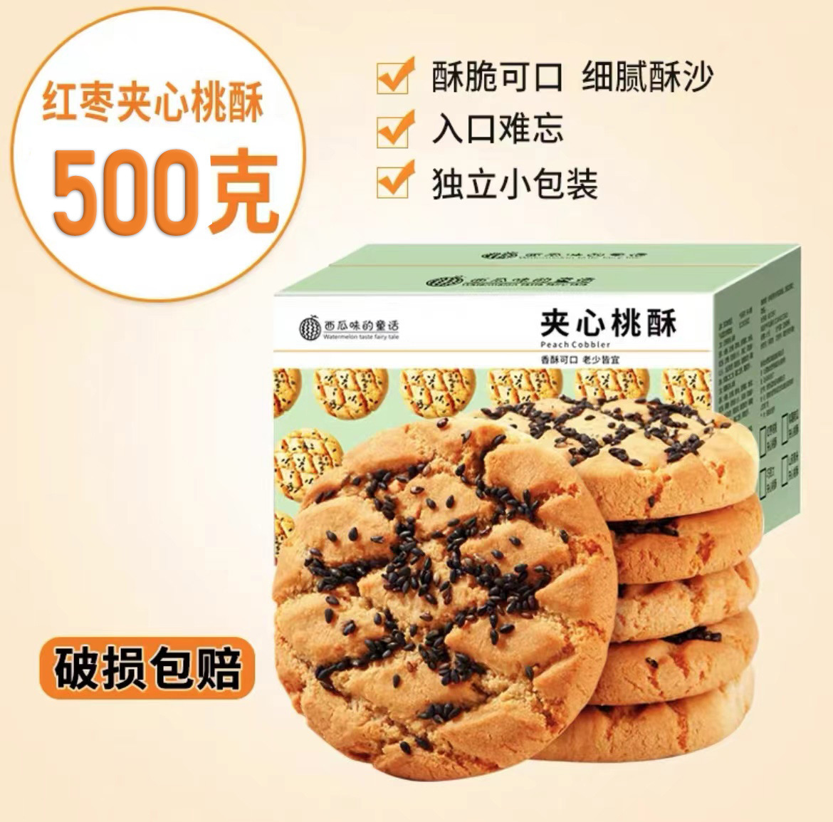 복숭아 케이크 쿠키 전체 상자 대량 도매 호두 케이크 구식 전통 수제 패스트리 아침 작은 음식 스낵 배달