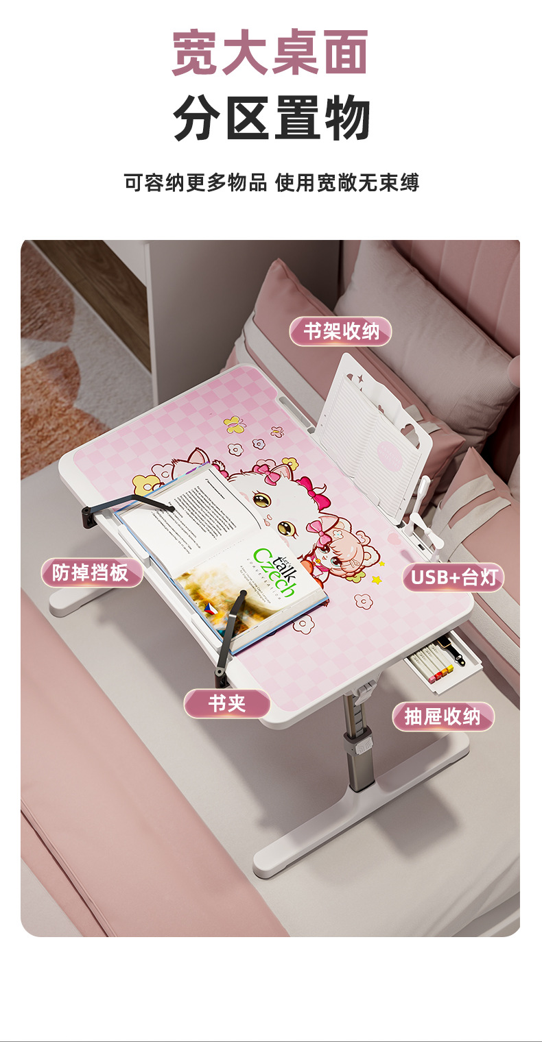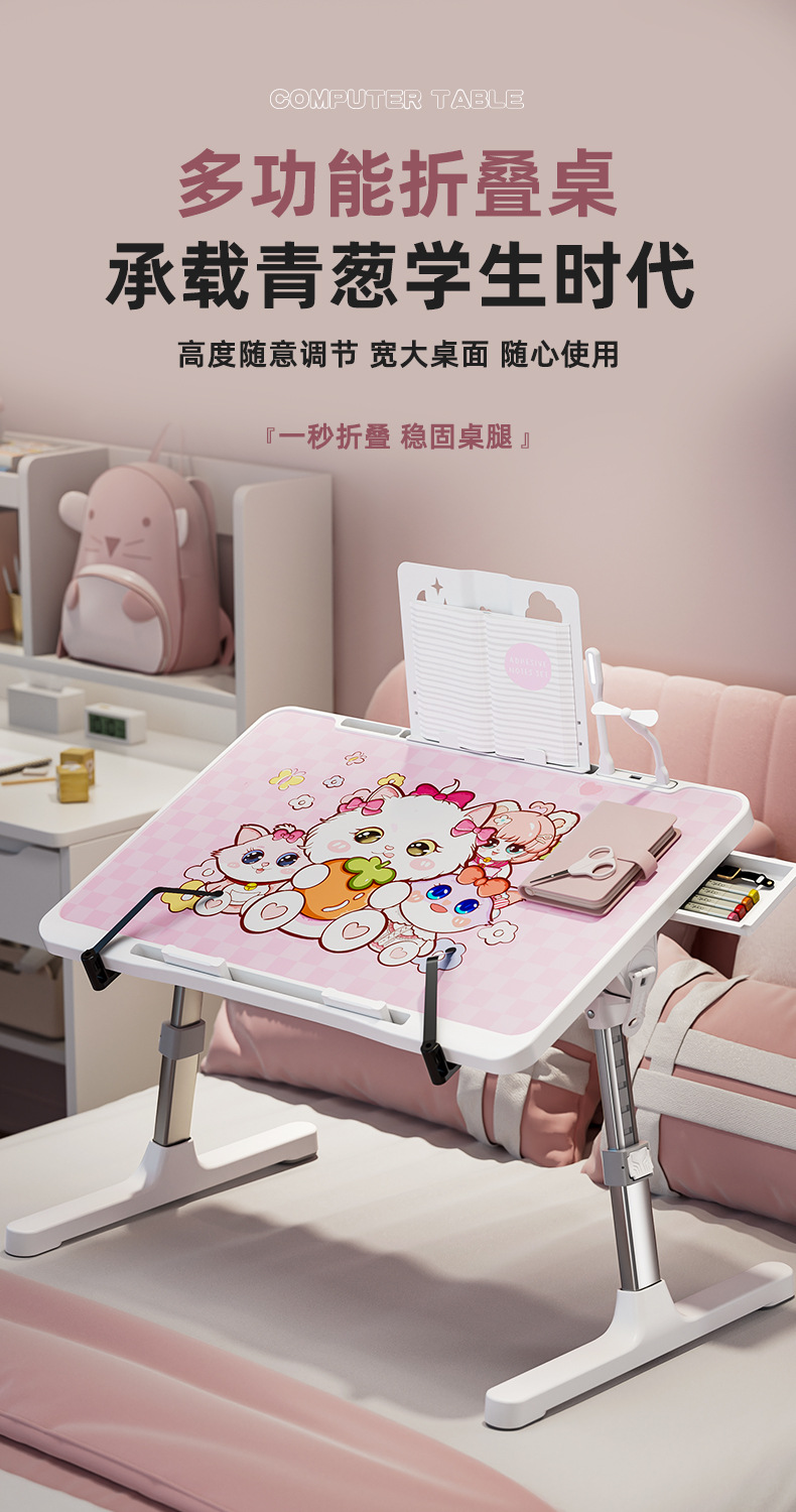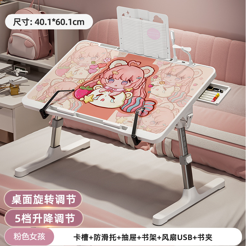 작은 테이블 기숙사 가정용 학생용 노트북 침대 테이블 창가 테이블 독서 테이블 컴퓨터 테이블 핑크 고양이