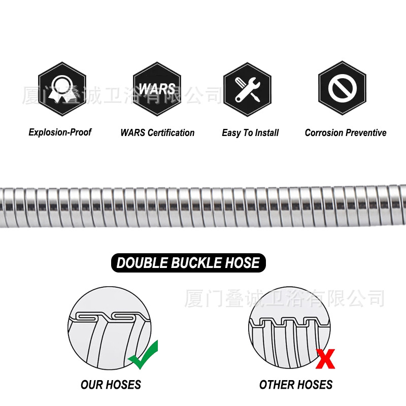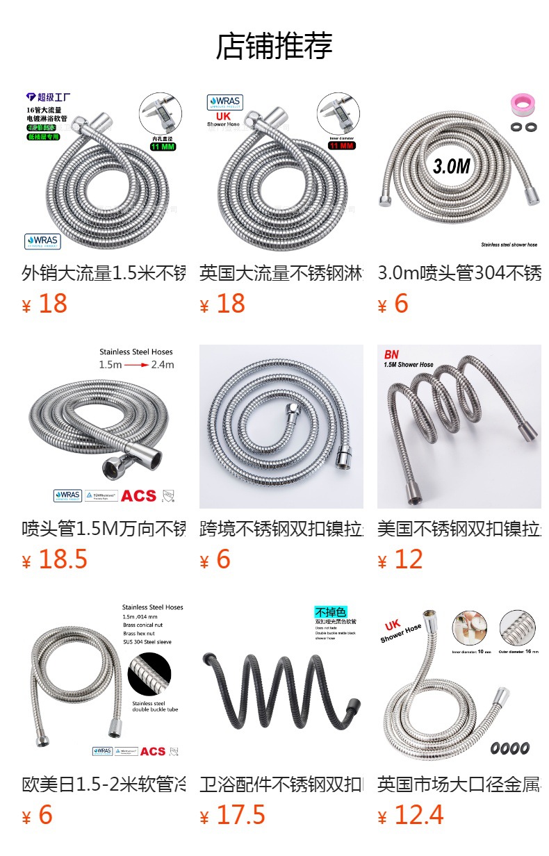 此款出英国大流量不锈钢双扣花洒软管,产品已获得WARS认证,产品已大量出口到英国,德国,法国,意大利,葡萄牙等国和大型商场及工程酒店,深受客户喜爱。
