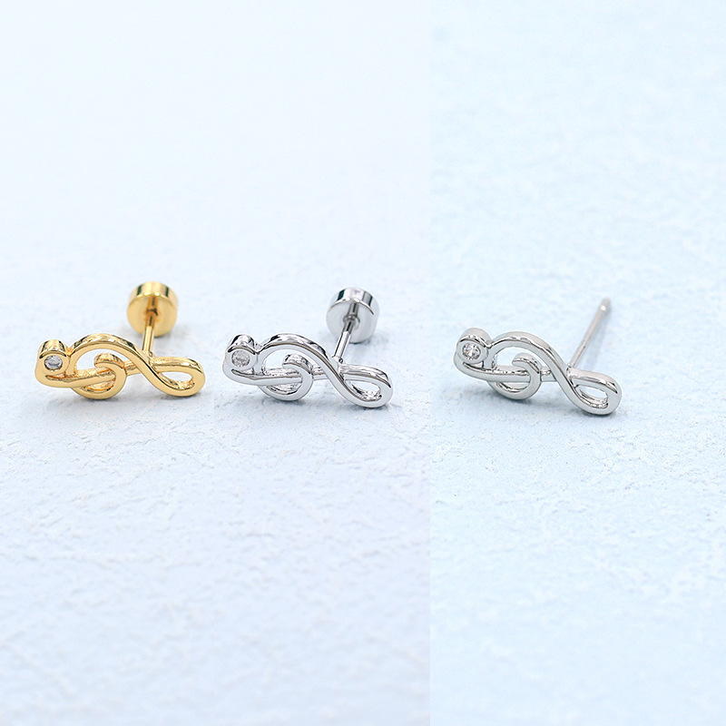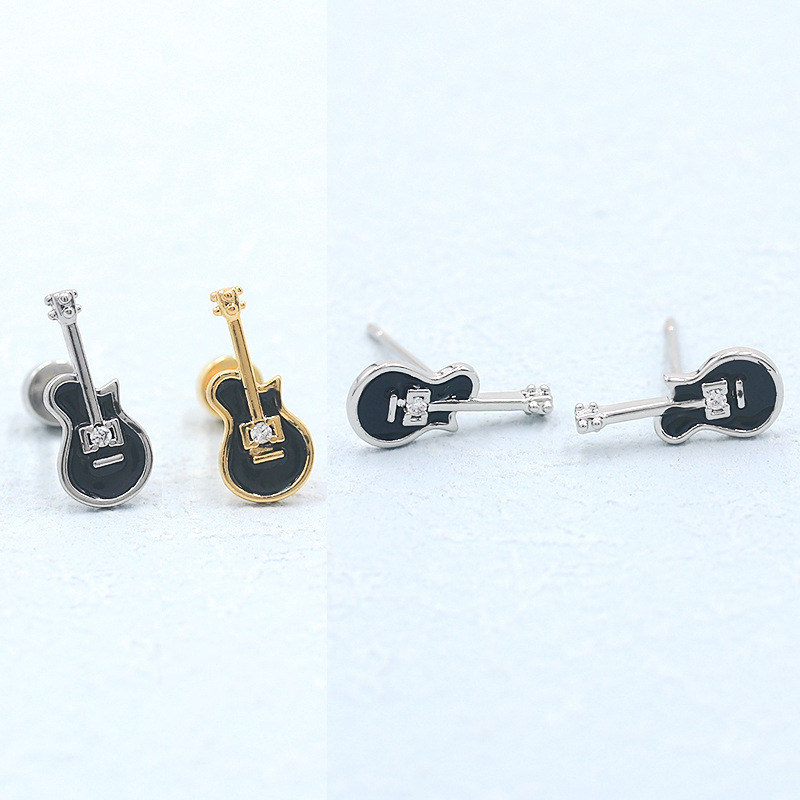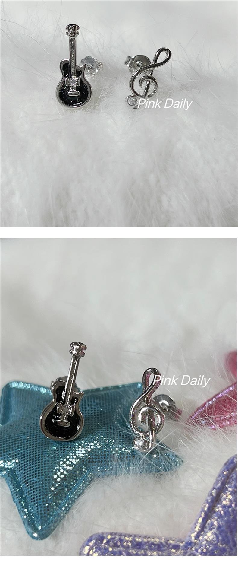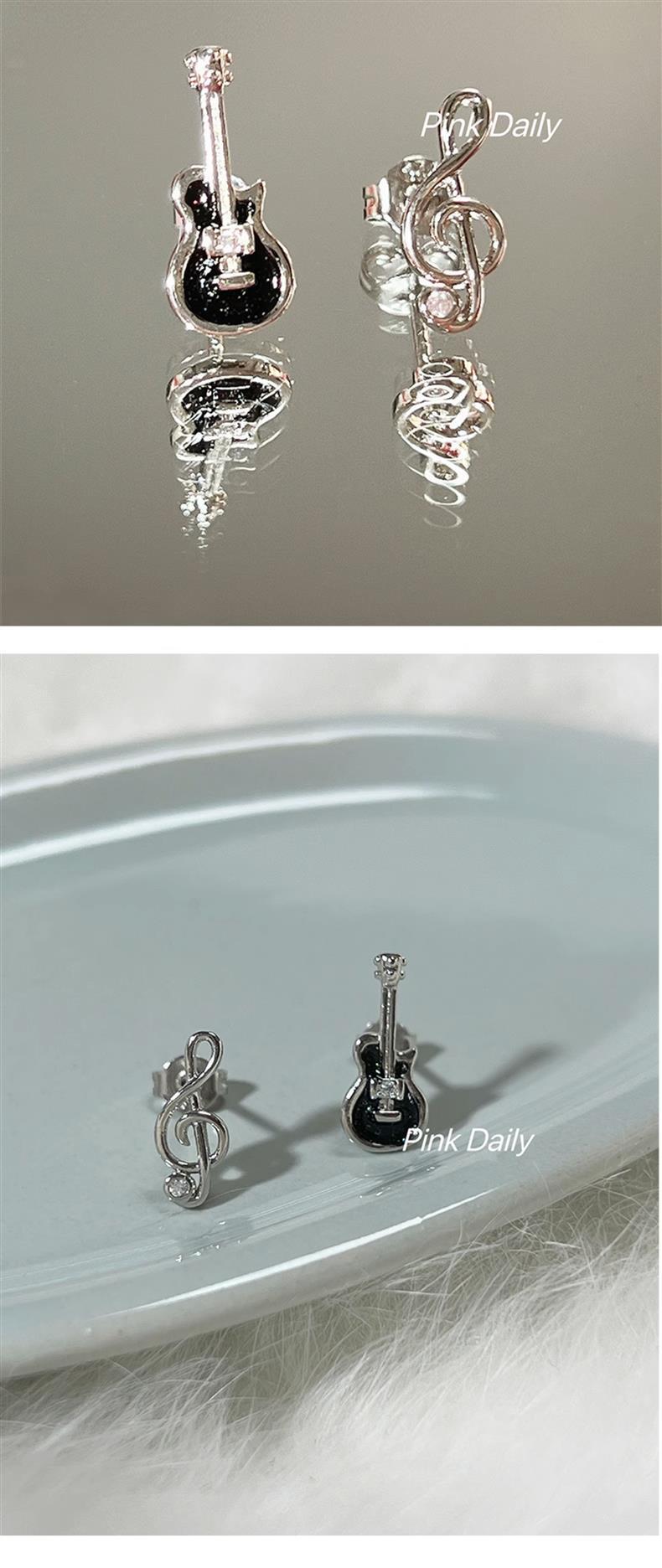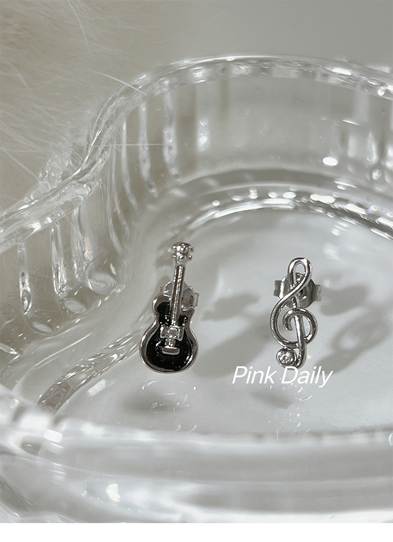 기타 노트 귀걸이 S925 실버 바늘 비대칭 귀여운 바이올린 귀걸이 디자인 센스 틈새 귀걸이 슈퍼 플래시 여성스토어 가기