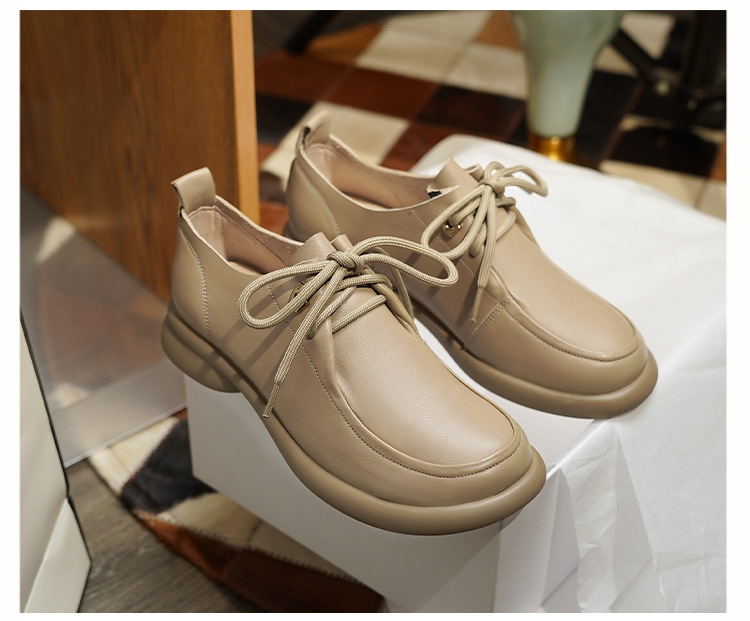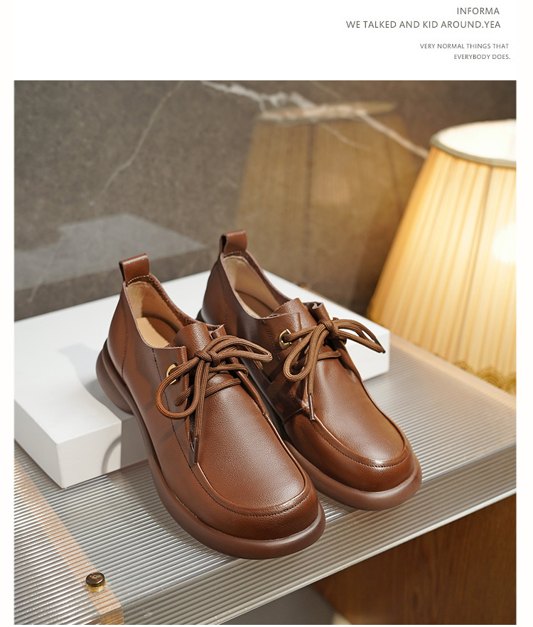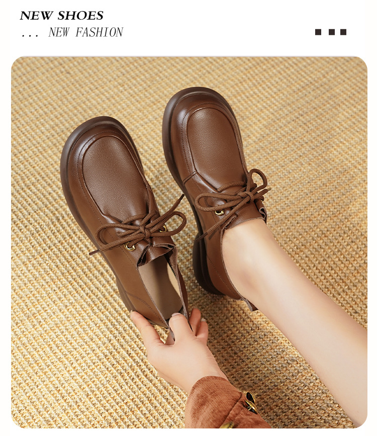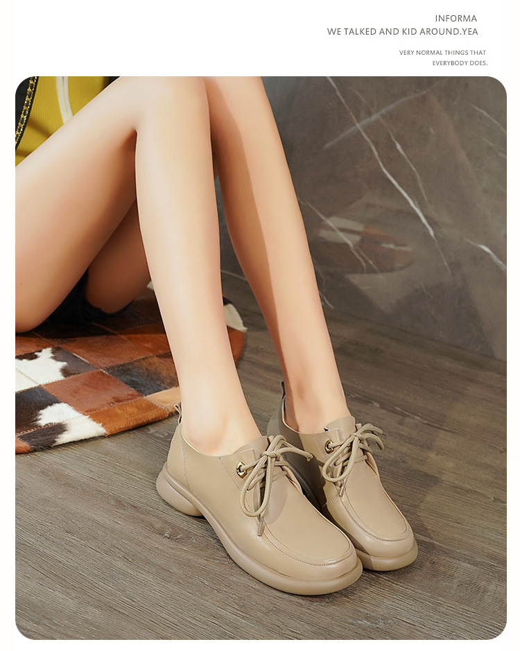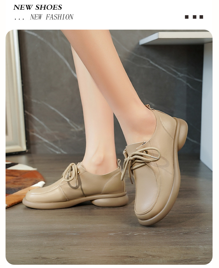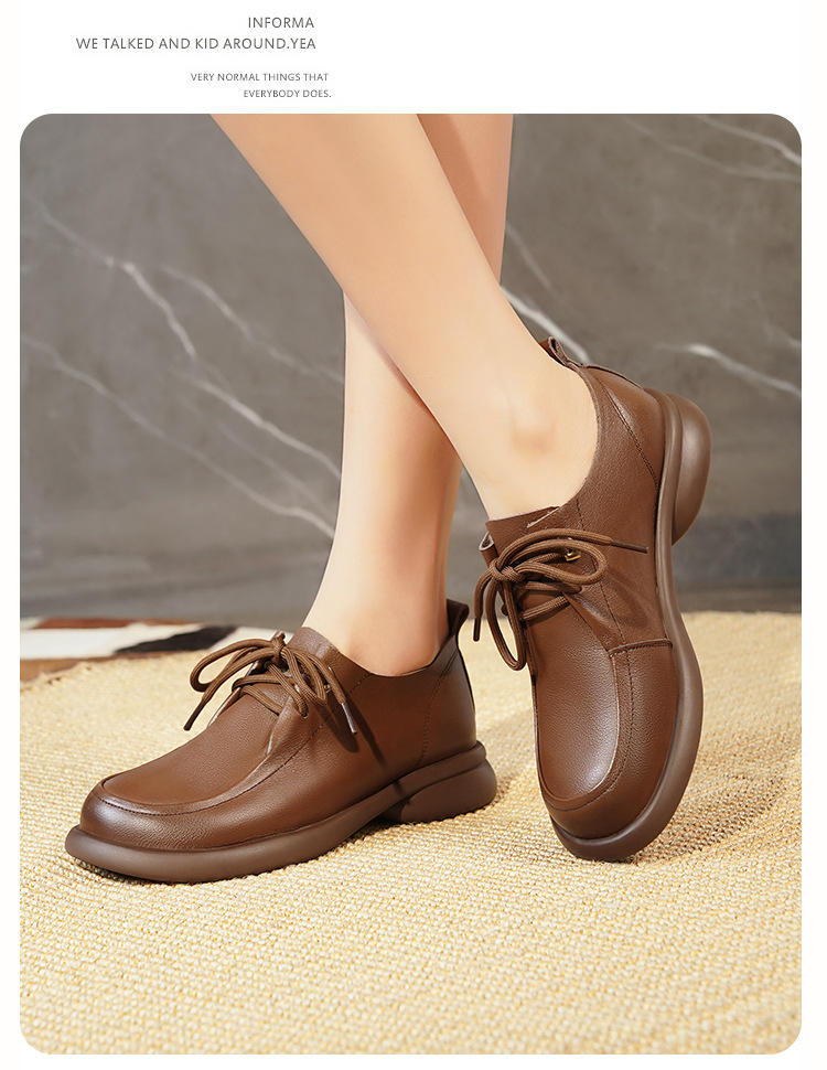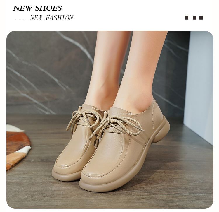 2024 봄 새로운 포시즌 여성 신발 정품 가죽 부드러운 바닥 작은 가죽 신발 레이스 업 평면 부드러운 표면 올 매치 싱글 레이어 신발 여성용 플러스 사이즈스토어 가기