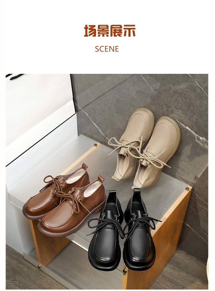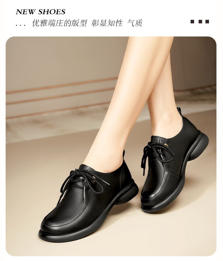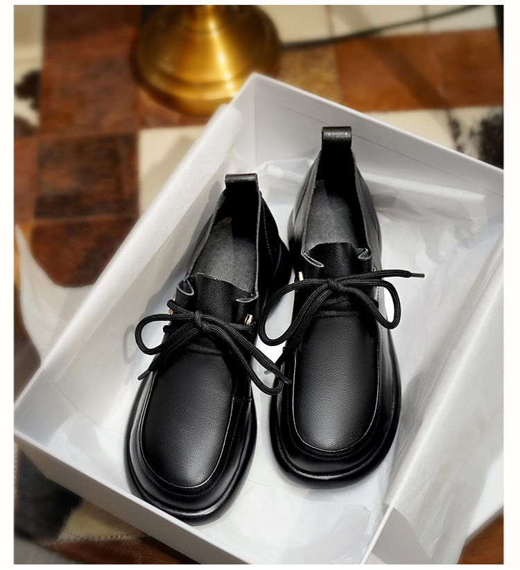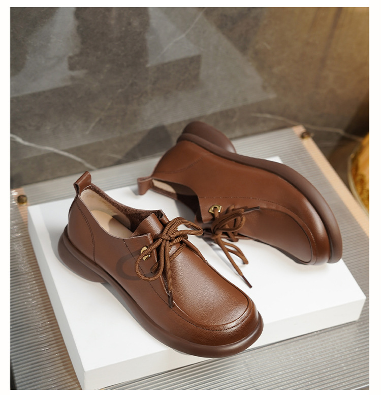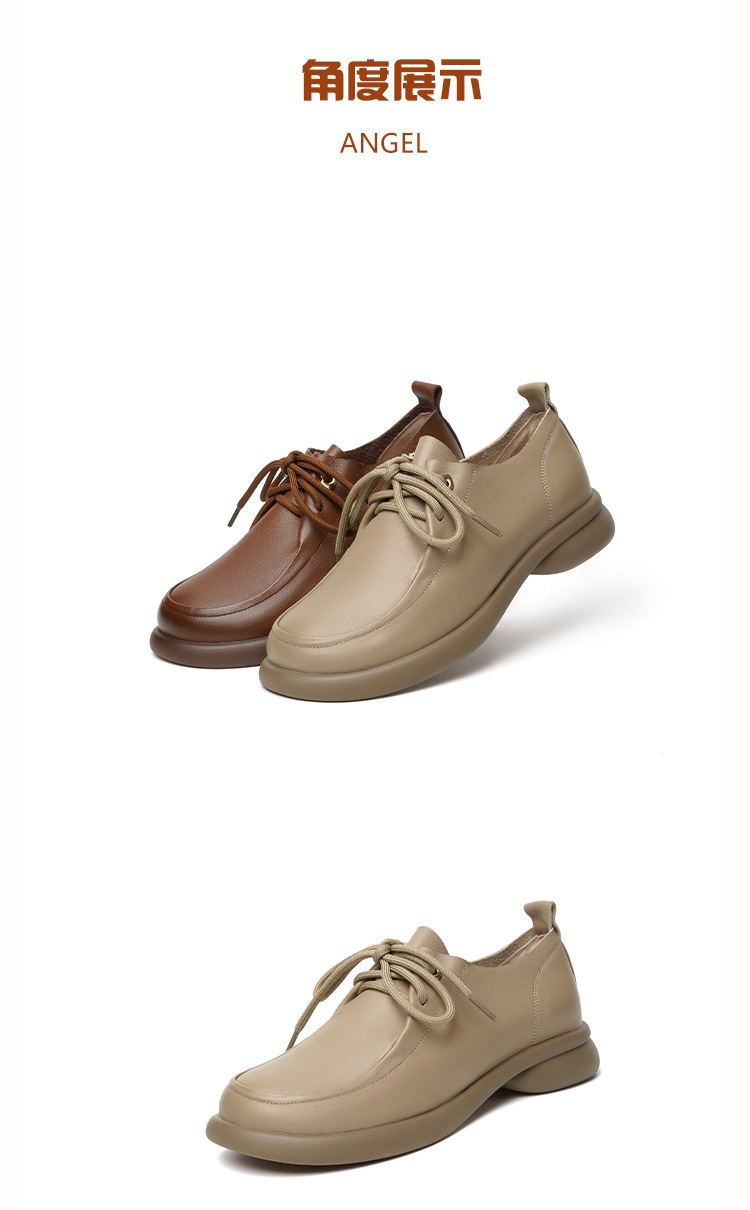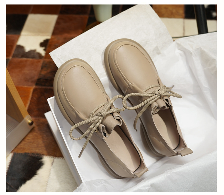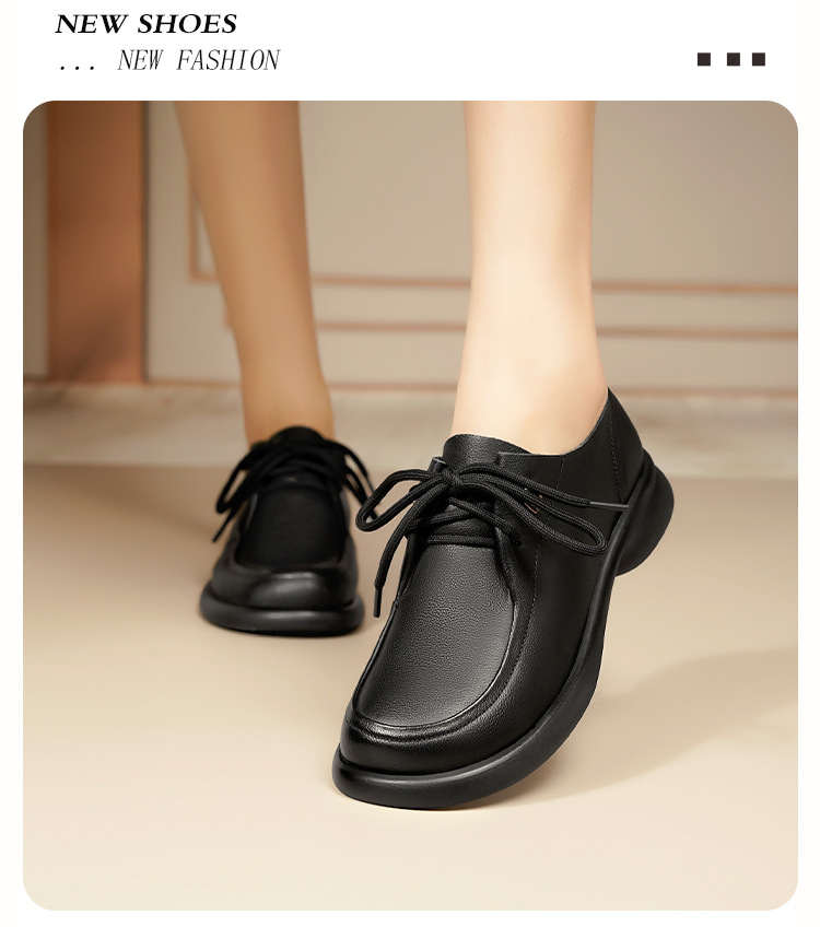 2024 봄 새로운 포시즌 여성 신발 정품 가죽 부드러운 바닥 작은 가죽 신발 레이스 업 평면 부드러운 표면 올 매치 싱글 레이어 신발 여성용 플러스 사이즈스토어 가기