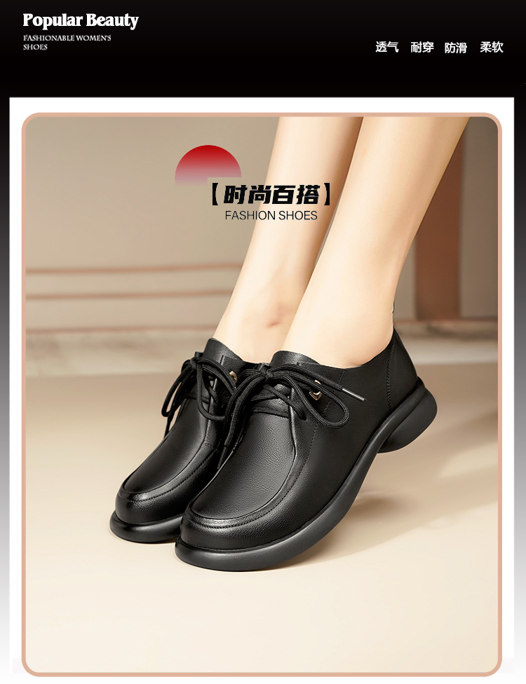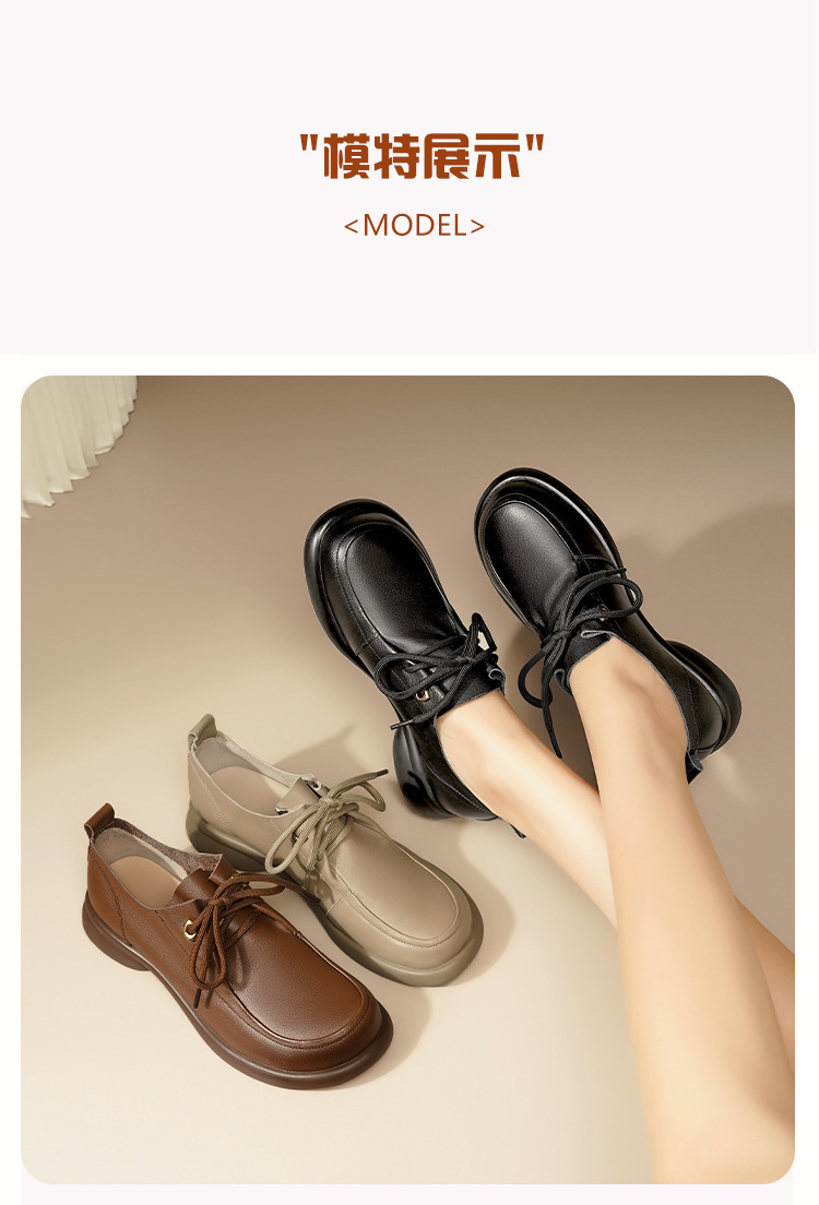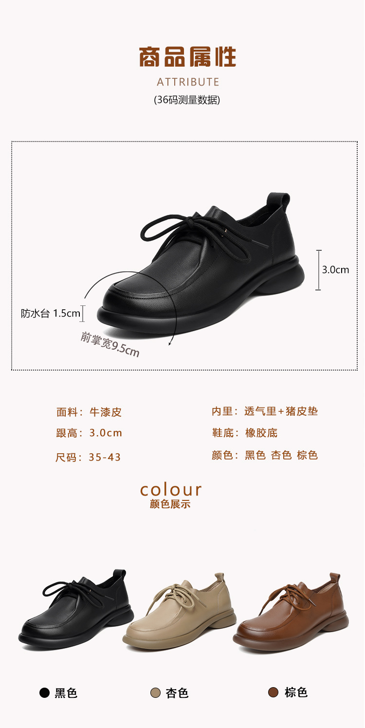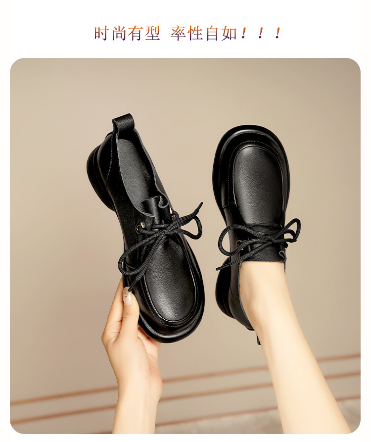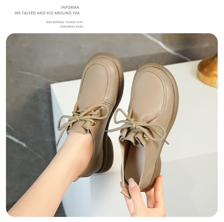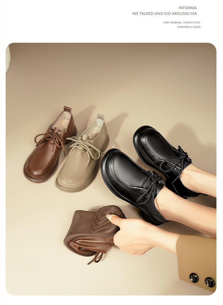 2024 봄 새로운 포시즌 여성 신발 정품 가죽 부드러운 바닥 작은 가죽 신발 레이스 업 평면 부드러운 표면 올 매치 싱글 레이어 신발 여성용 플러스 사이즈스토어 가기