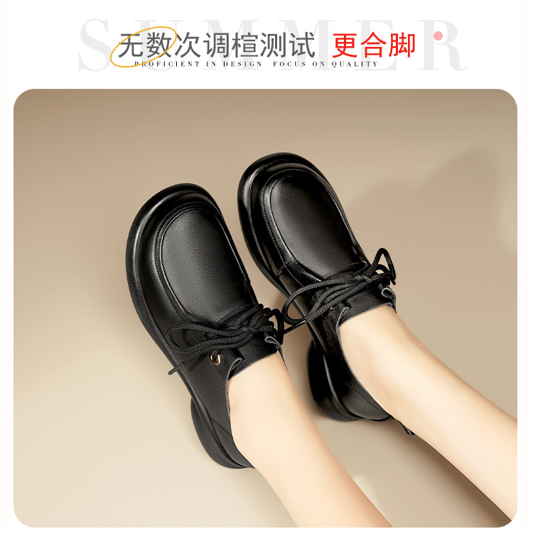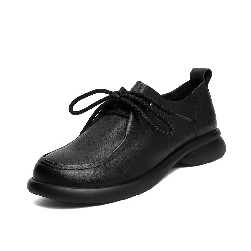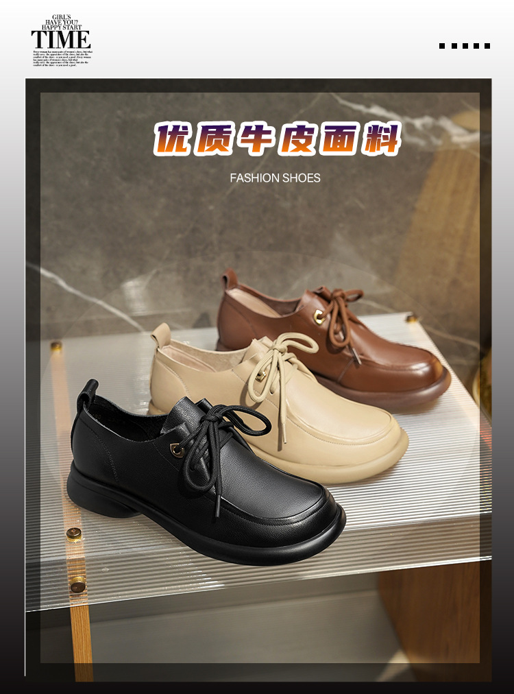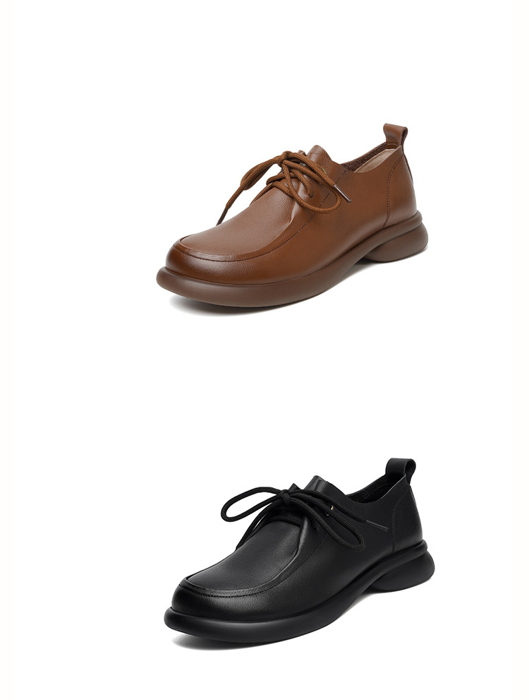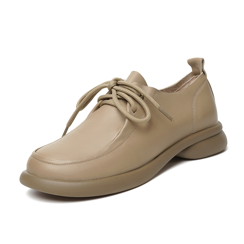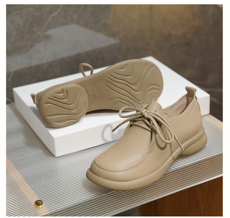 2024 봄 새로운 포시즌 여성 신발 정품 가죽 부드러운 바닥 작은 가죽 신발 레이스 업 평면 부드러운 표면 올 매치 싱글 레이어 신발 여성용 플러스 사이즈