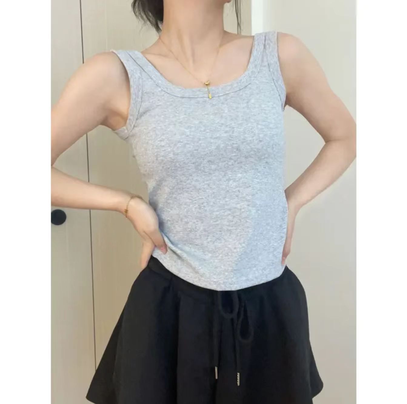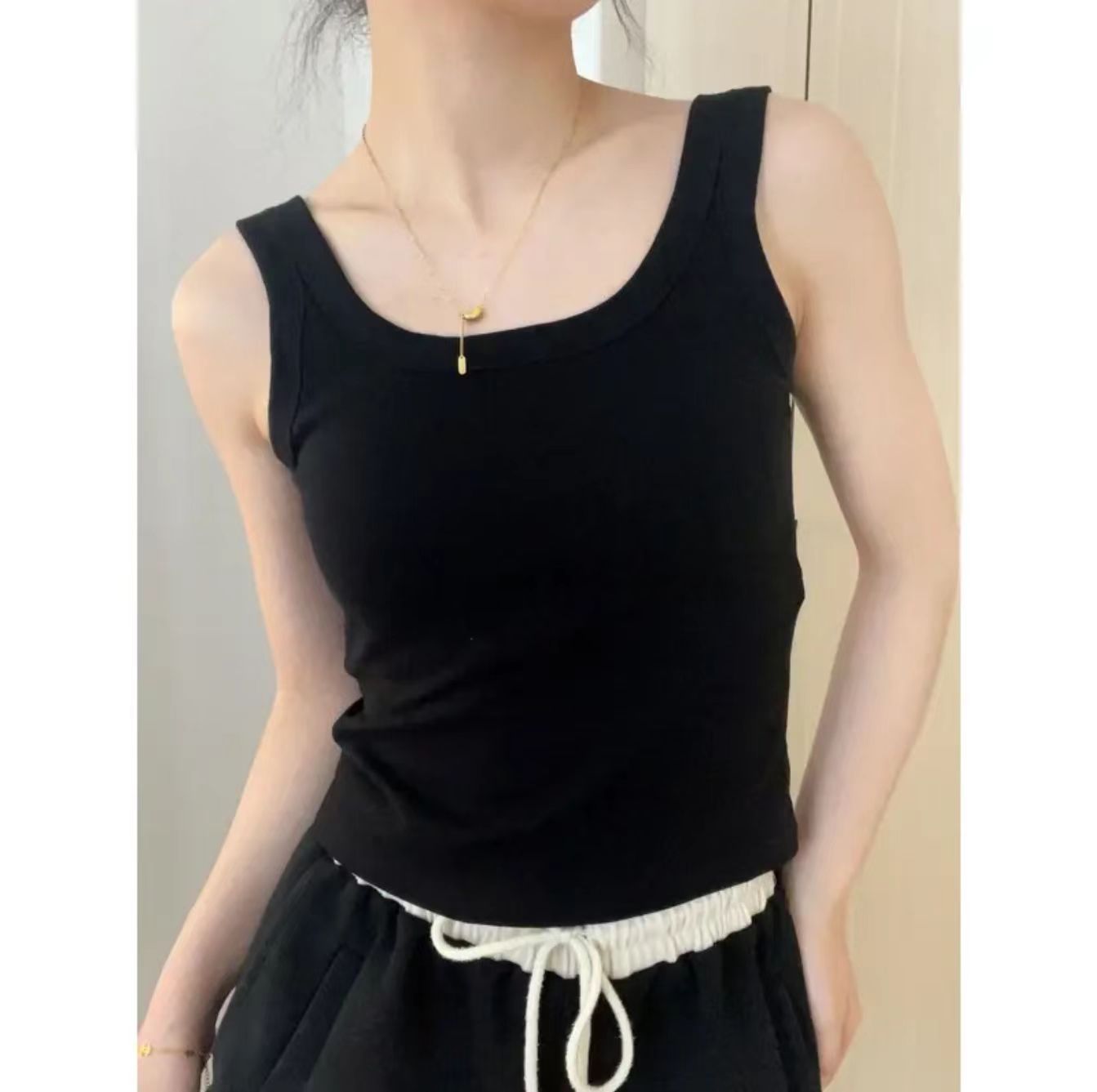내 근육 * 홈 메이드 올 매치 화이트-가슴 패드 스레드 코튼 내부 조끼 여성용 고정 컵 올 매치 라운드 넥스토어 가기