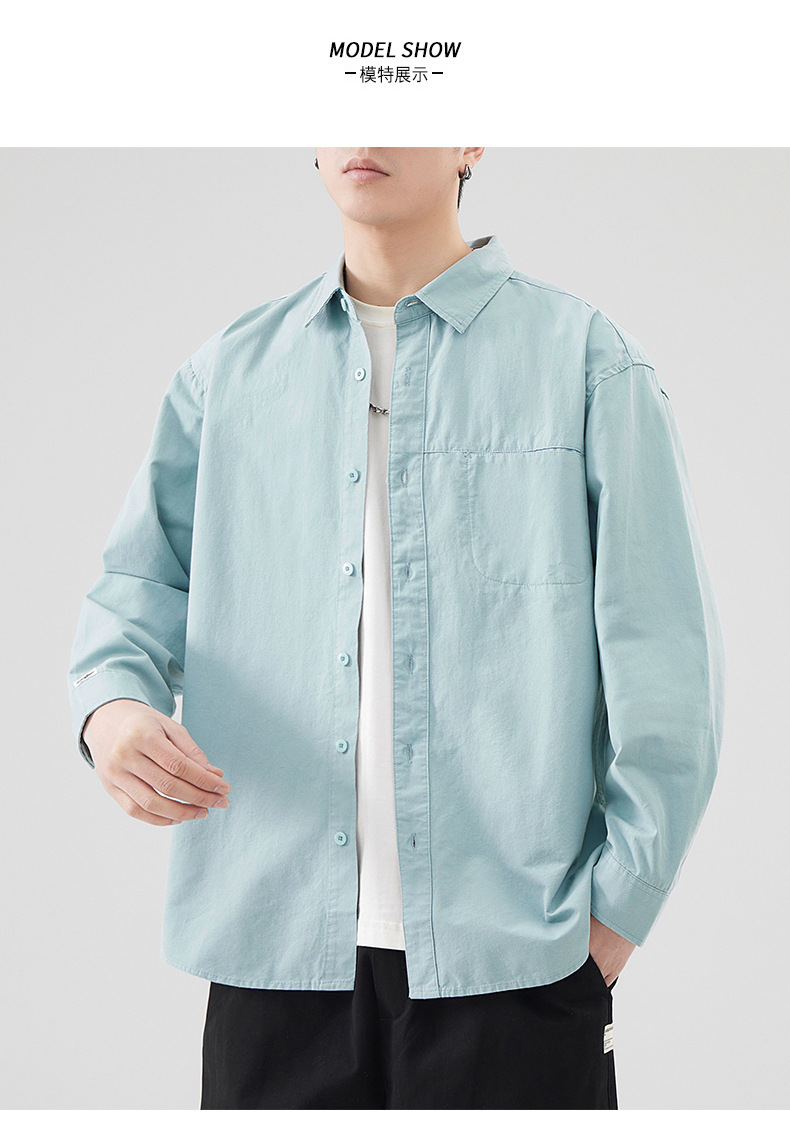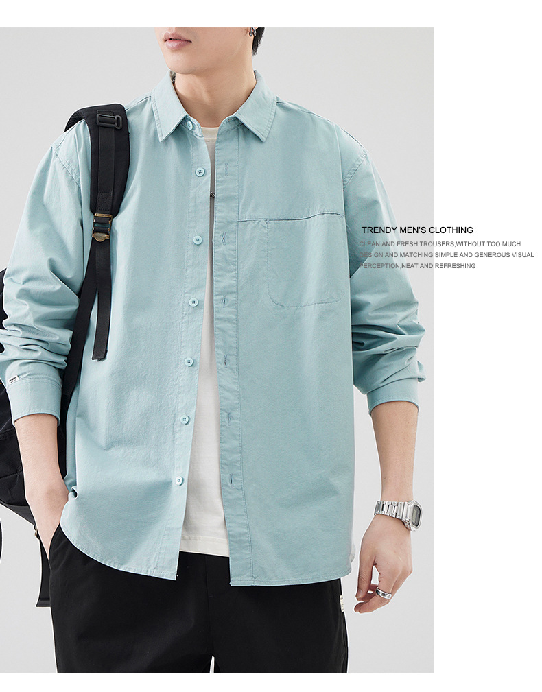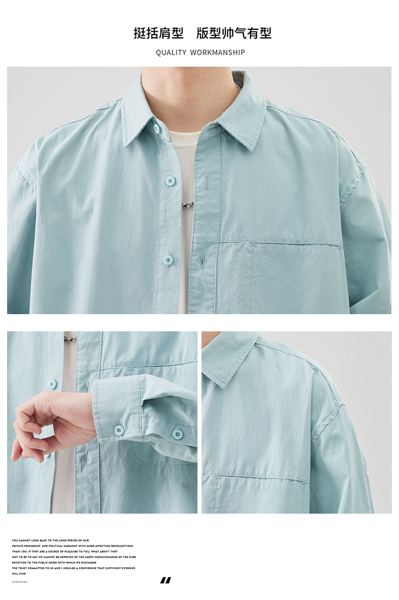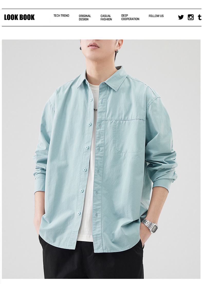 Muqiu 남성복 패션 브랜드 일본 올 매치 코튼 긴팔 셔츠 남자 통근 아메리칸 레트로 셔츠 캐주얼 재킷