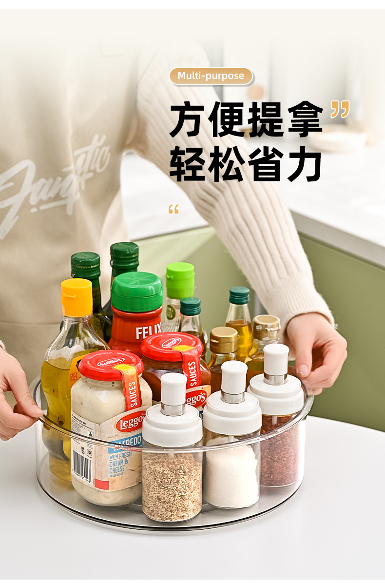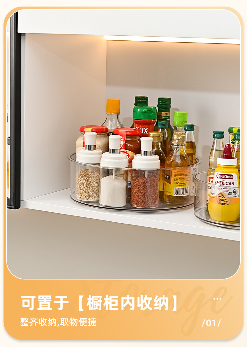 국경을 넘는 주방 수납 선반, 360도 회전 가능한 양념 보관대, PET 소재의 두꺼운 무설치 다기능 수납 선반