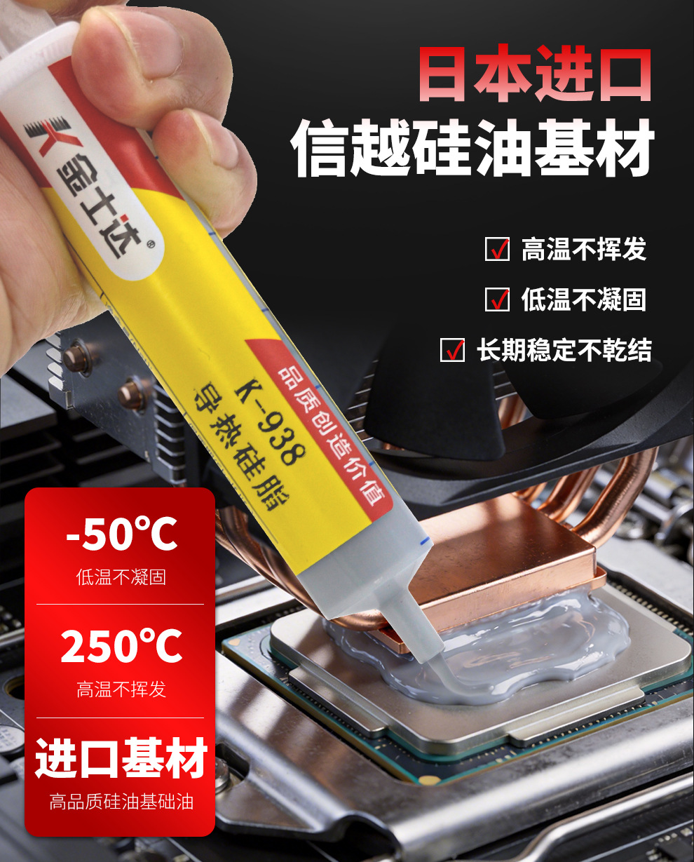 Kingstar 열전도성 실리콘 그리스 높은 열전도율 7.35 방열 페이스트 CPU 고효율 방열 접착제 실리콘 고온 내성