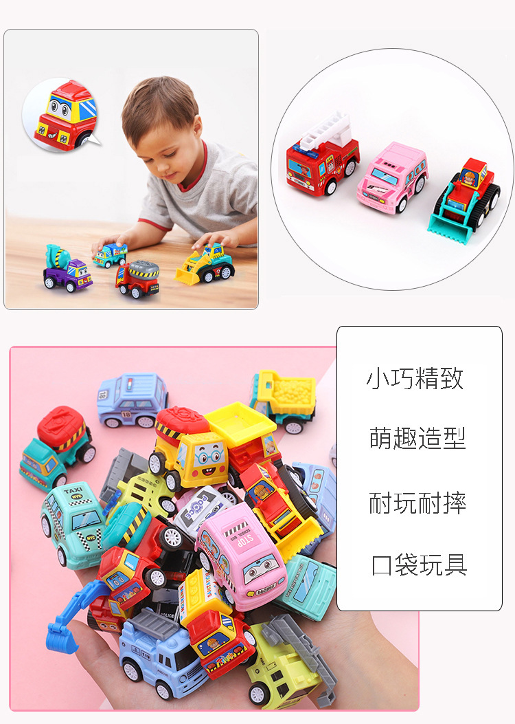 만화 플라스틱 자동차 엔지니어링 자동차 미니 풀백 자동차 교통 자동차 어린이 장난감 자동차 유치원 상금 선물스토어 가기