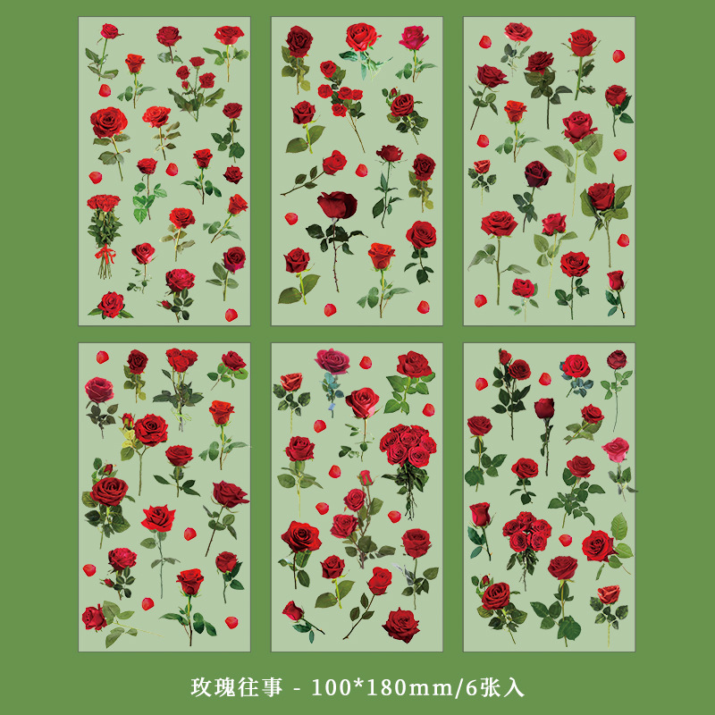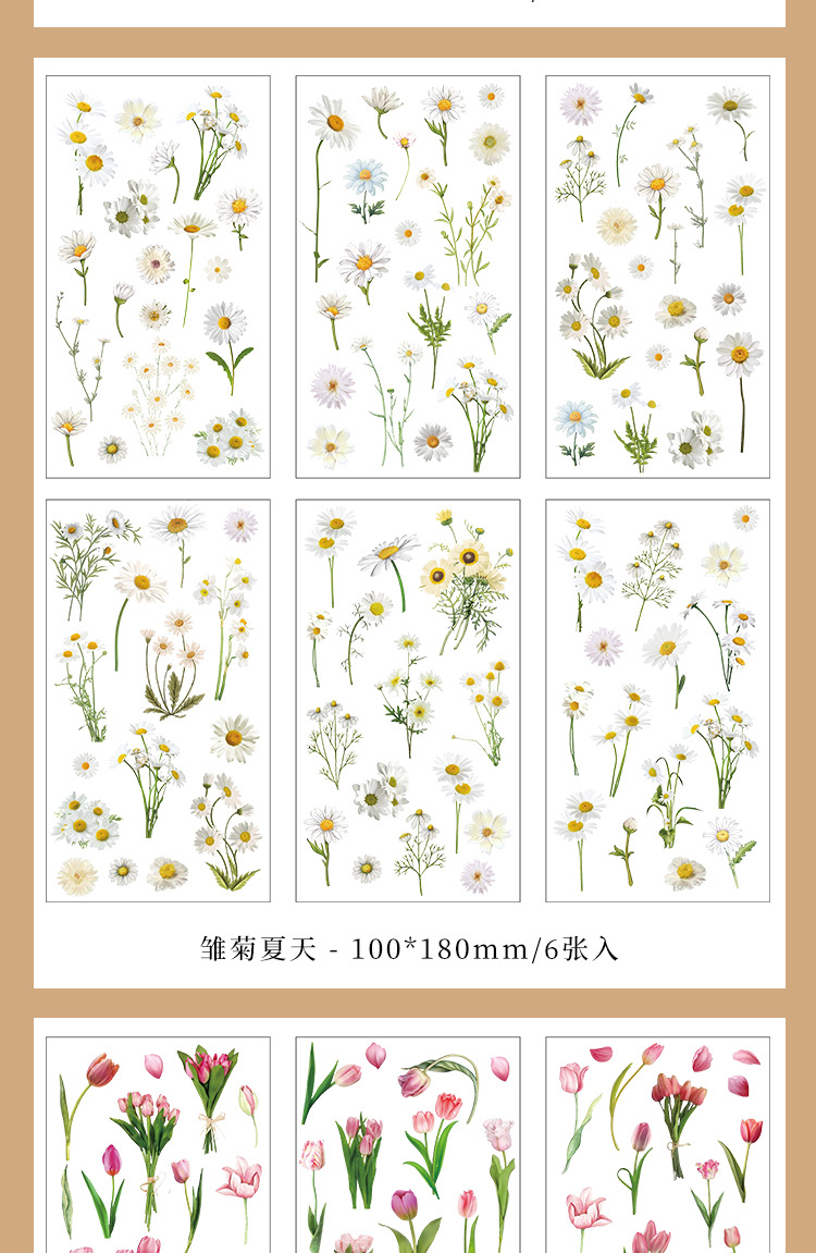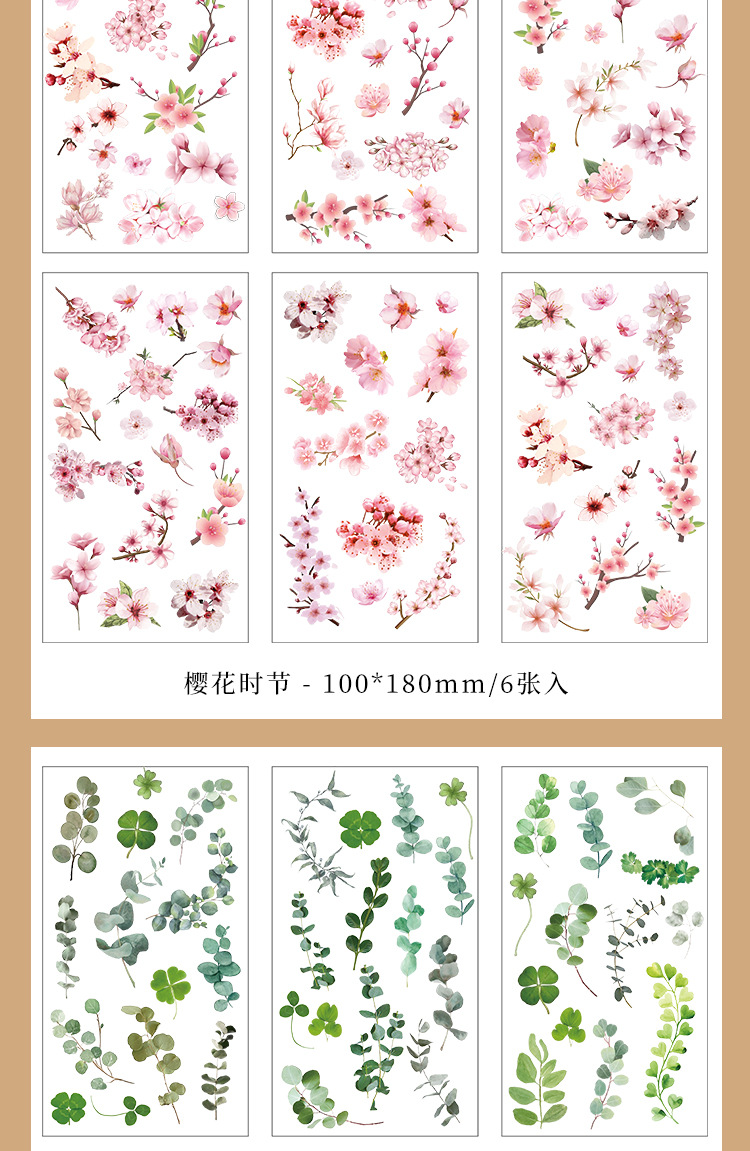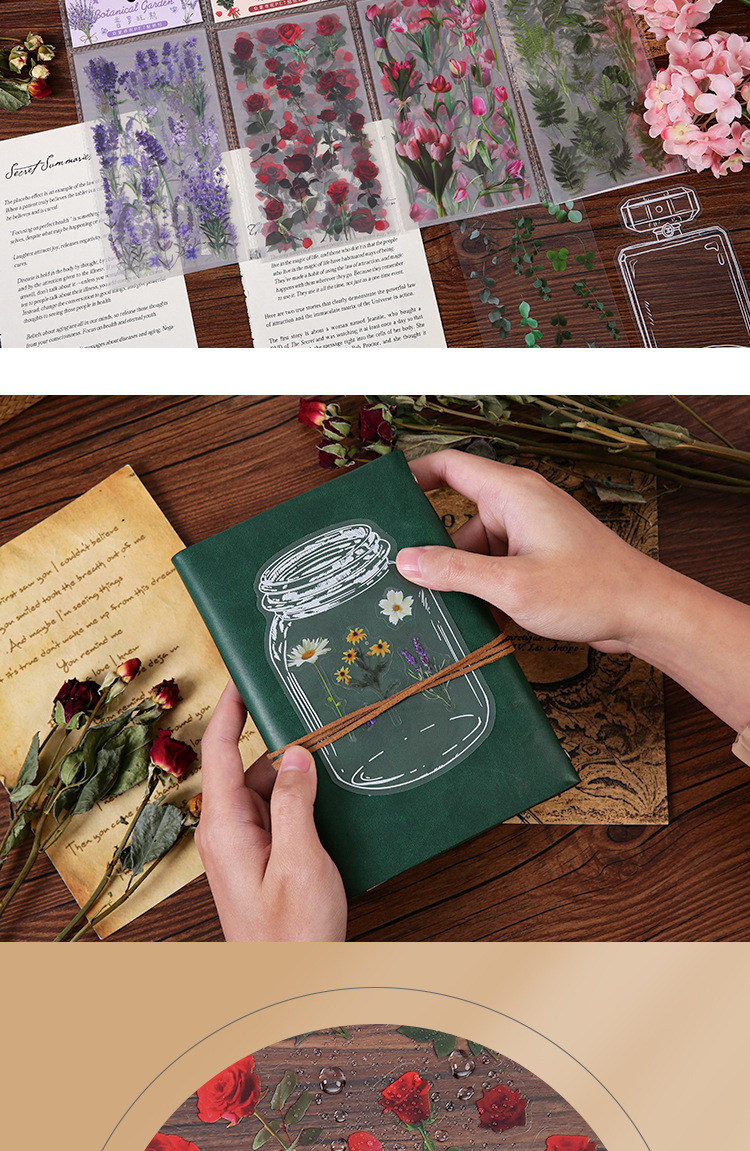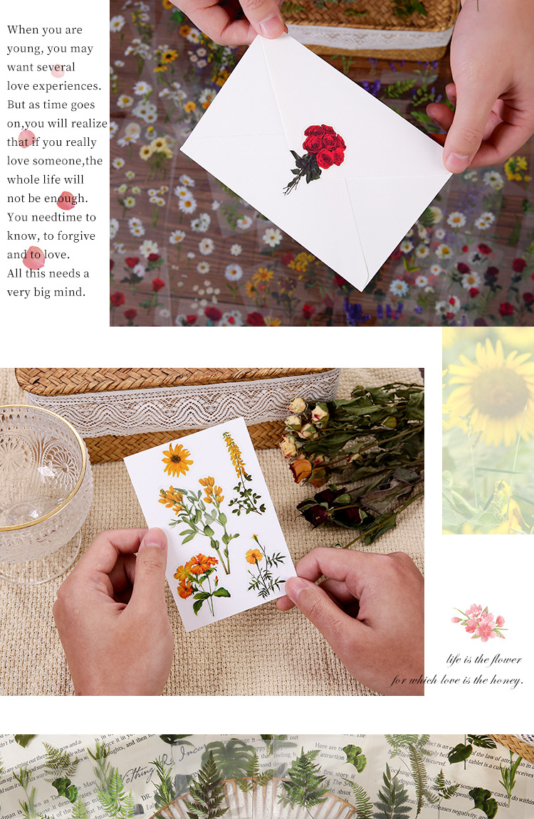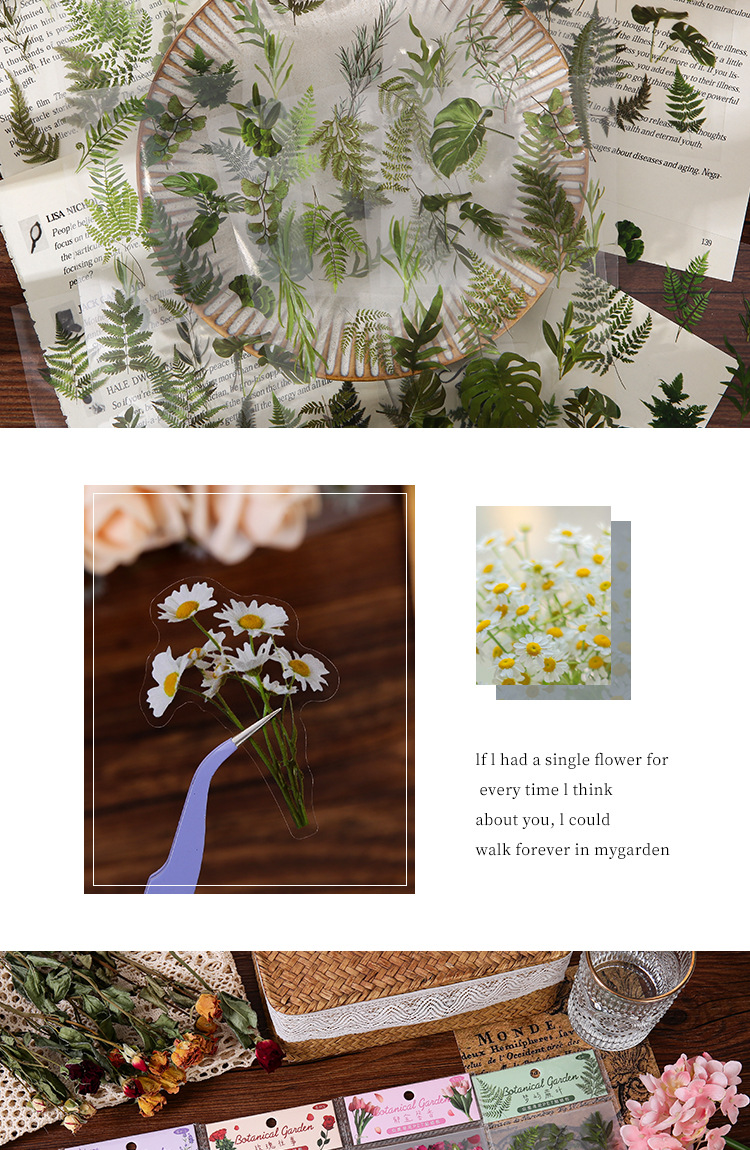 인스 스타일 식물 꽃 스티커 PET 투명 핸드북 카드 소재 DIY 장식 소녀 핸드북 장식 스티커