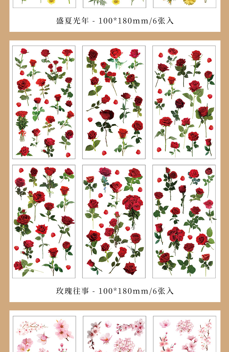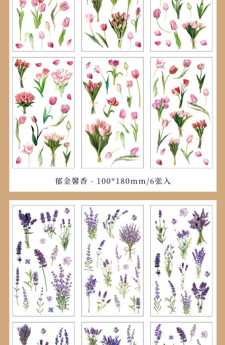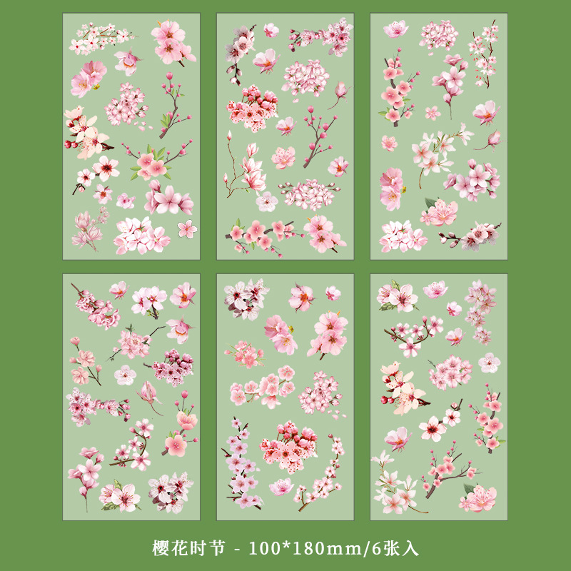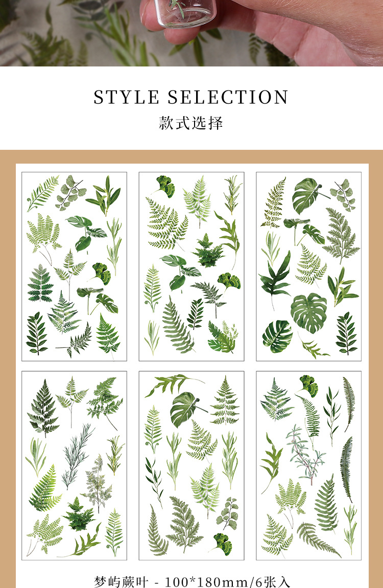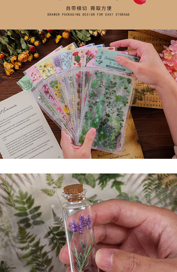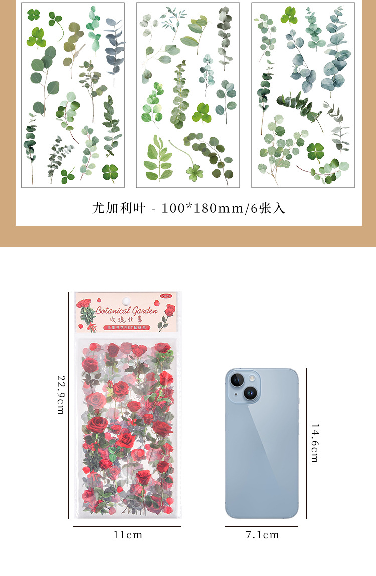 인스 스타일 식물 꽃 스티커 PET 투명 핸드북 카드 소재 DIY 장식 소녀 핸드북 장식 스티커