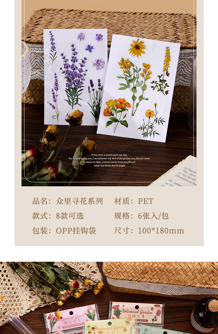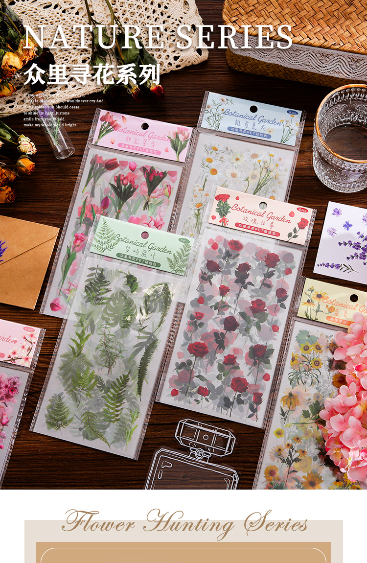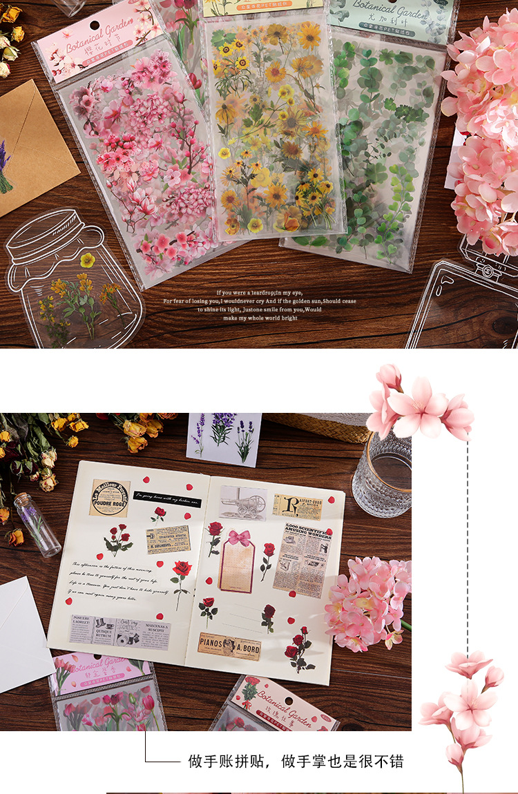인스 스타일 식물 꽃 스티커 PET 투명 핸드북 카드 소재 DIY 장식 소녀 핸드북 장식 스티커스토어 가기