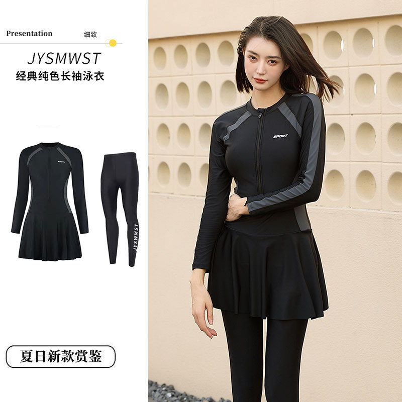 수영복 여성의 2024 년 새로운 폭발 약간 뚱뚱한 소녀의 살은 보수적으로 보수적 인 긴 소매 선 스크린 플러스 사이즈 온천 세트 덮습니다.