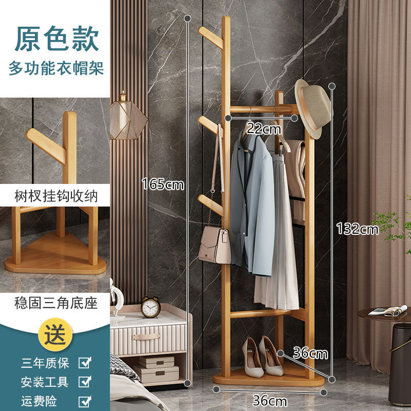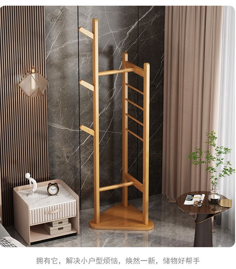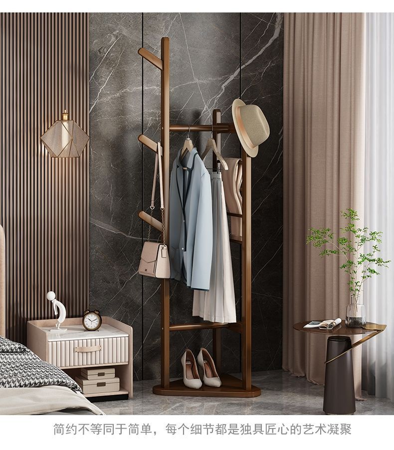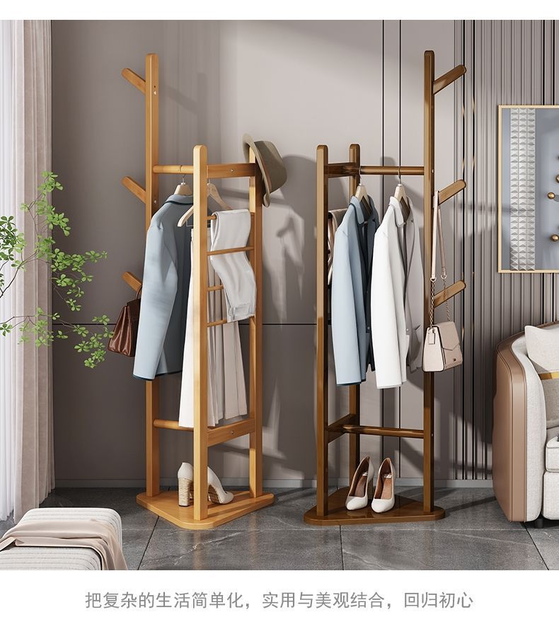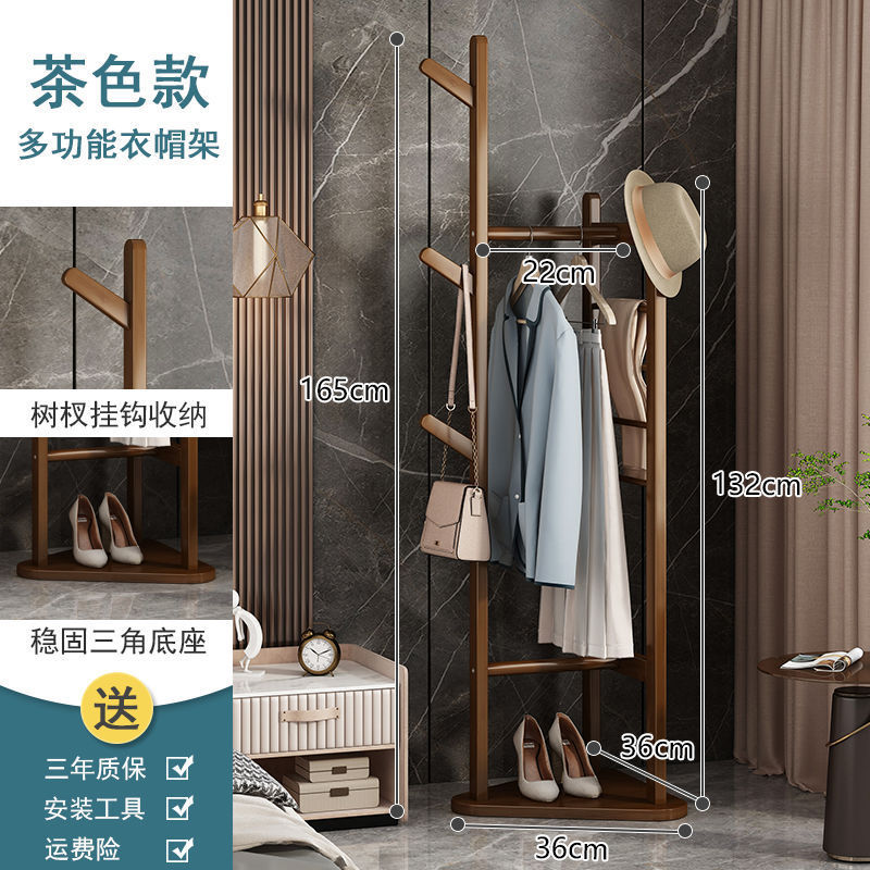 침실 바닥 코트 랙 가정용 간단한 옷걸이 거실 입구 저장 랙 단단한 나무 다기능 옷 걸이