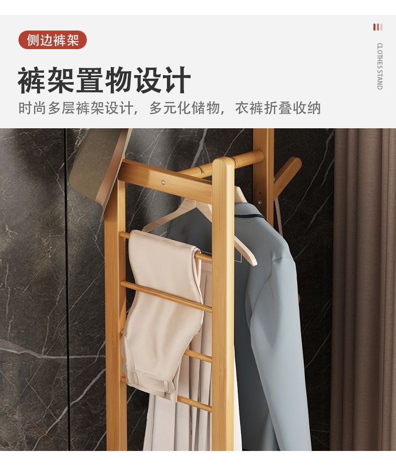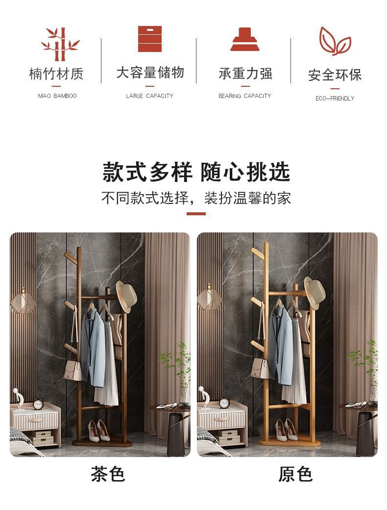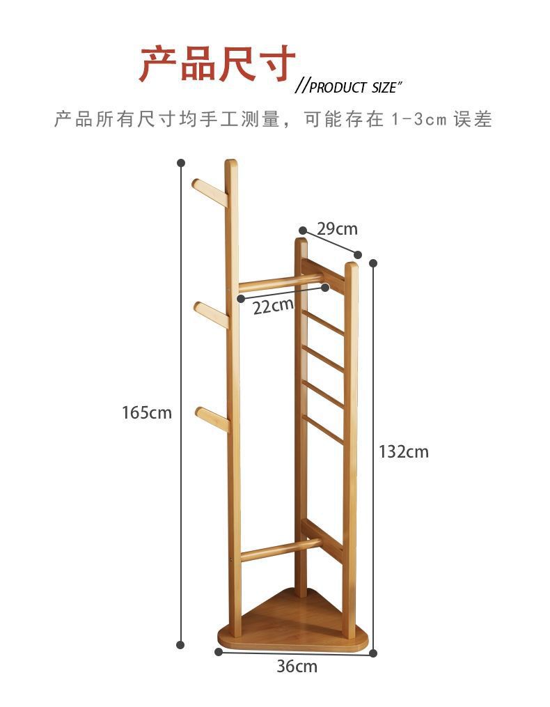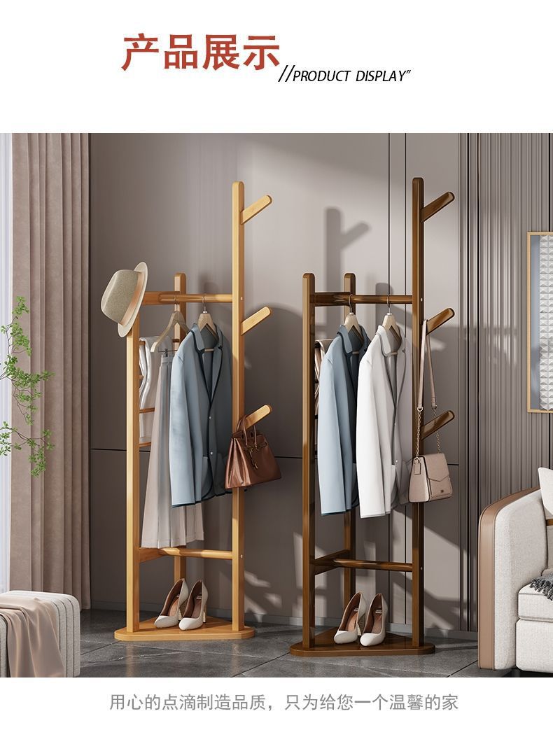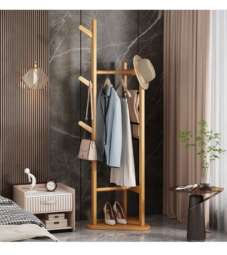 침실 바닥 코트 랙 가정용 간단한 옷걸이 거실 입구 저장 랙 단단한 나무 다기능 옷 걸이