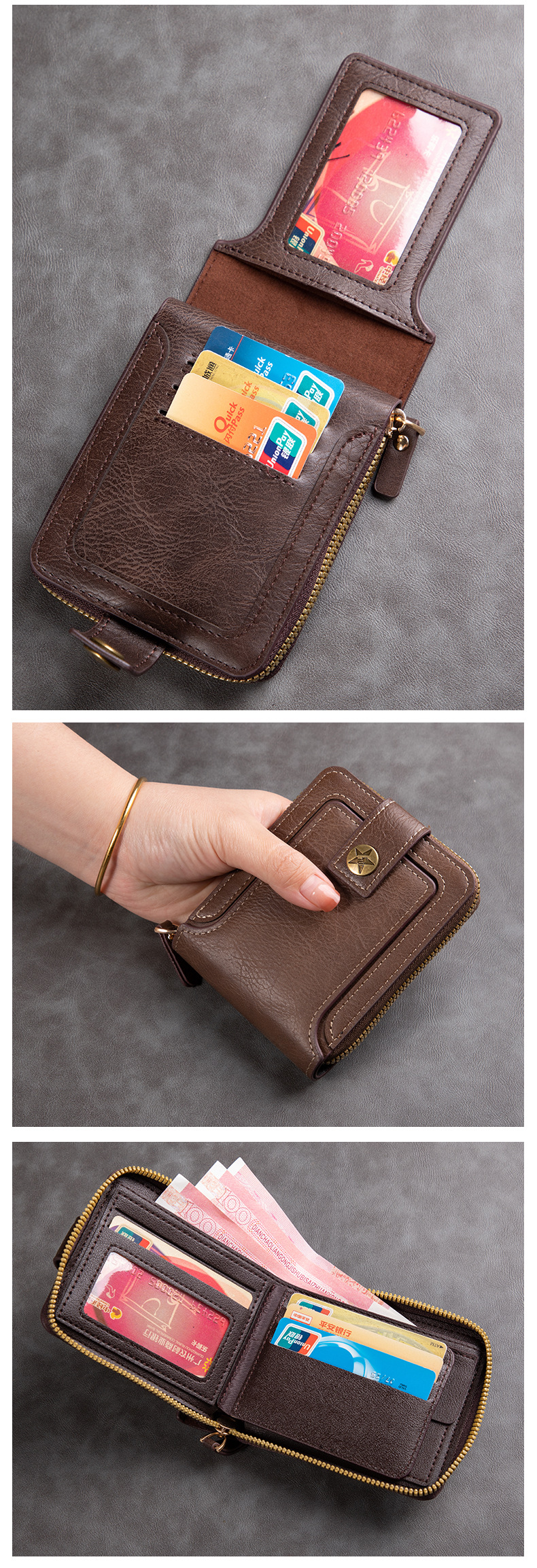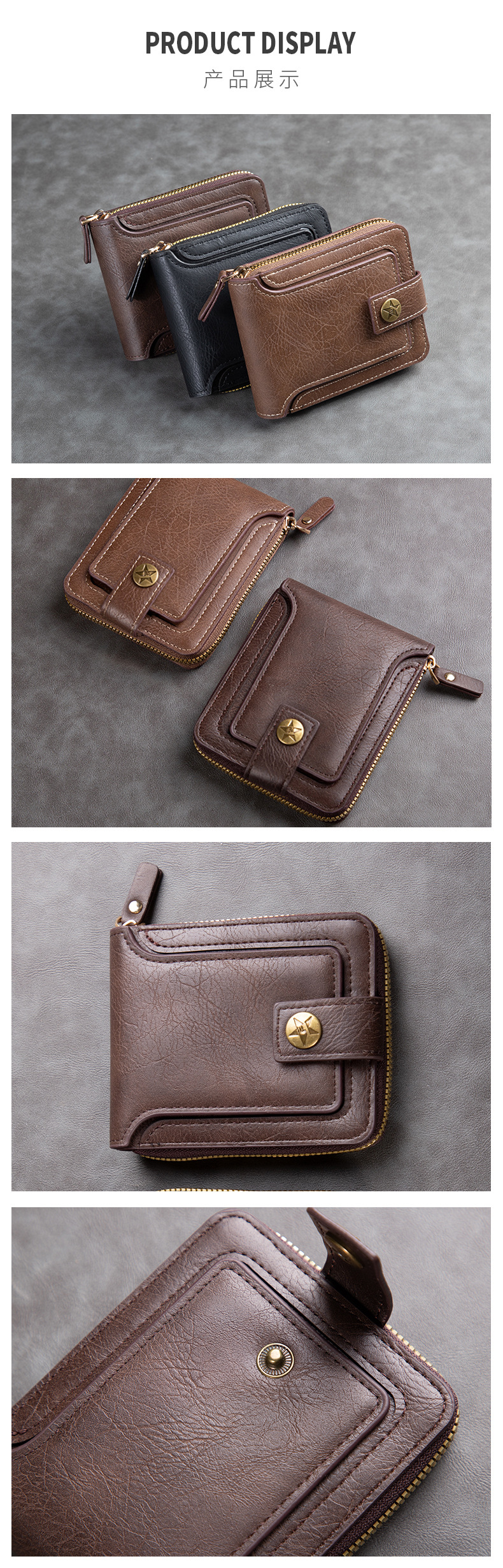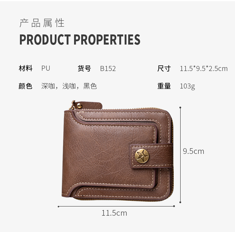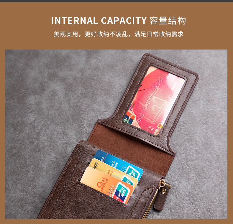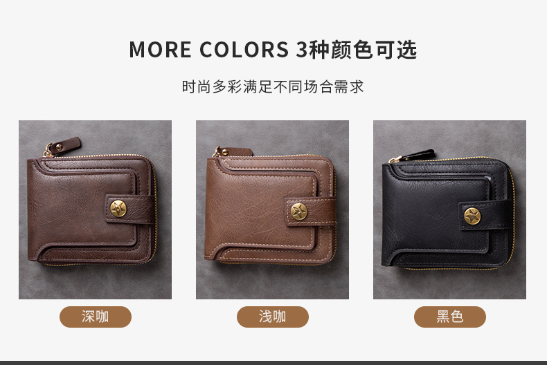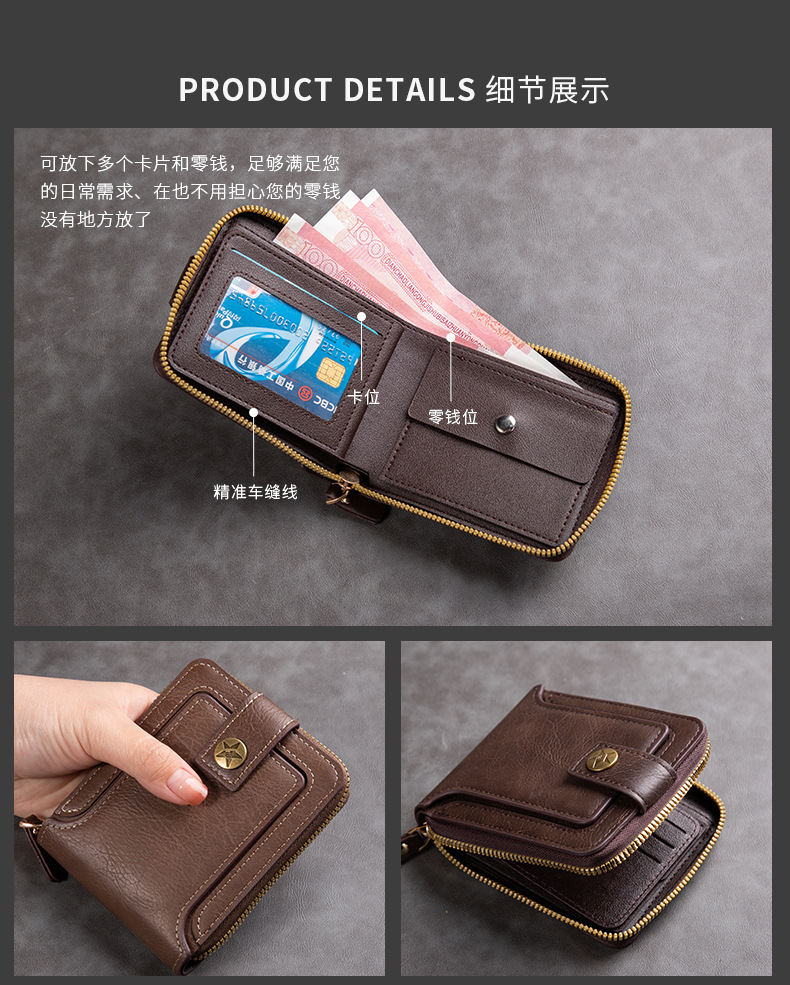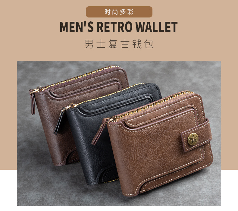 남성용 짧은 지갑, 유럽 및 미국 스타일, 다기능, 레트로, 가로형, 동전 지갑, 지퍼 잠금, 카드 홀더, 신용카드, 다용도스토어 가기