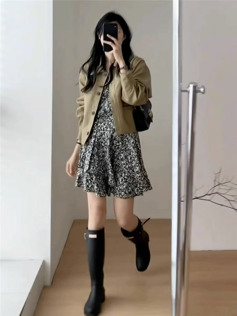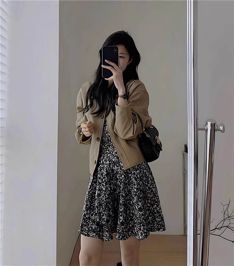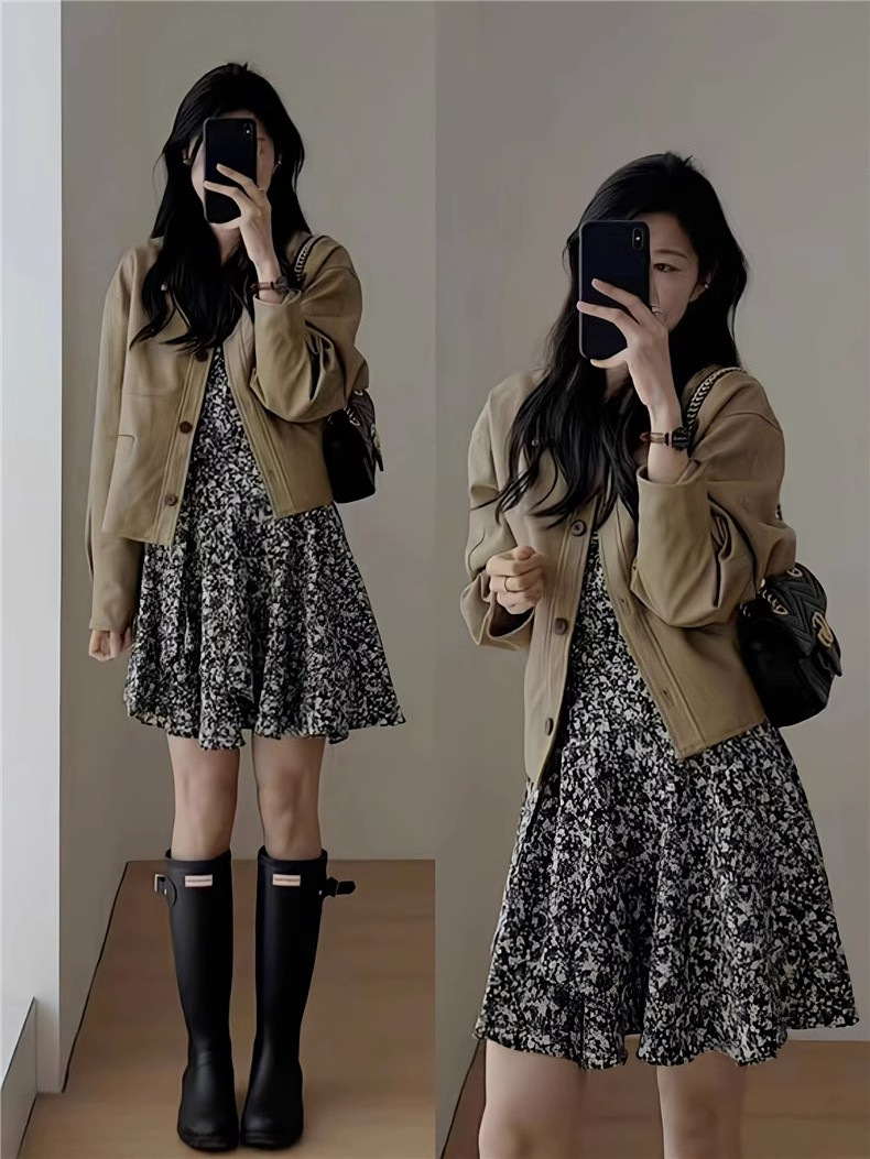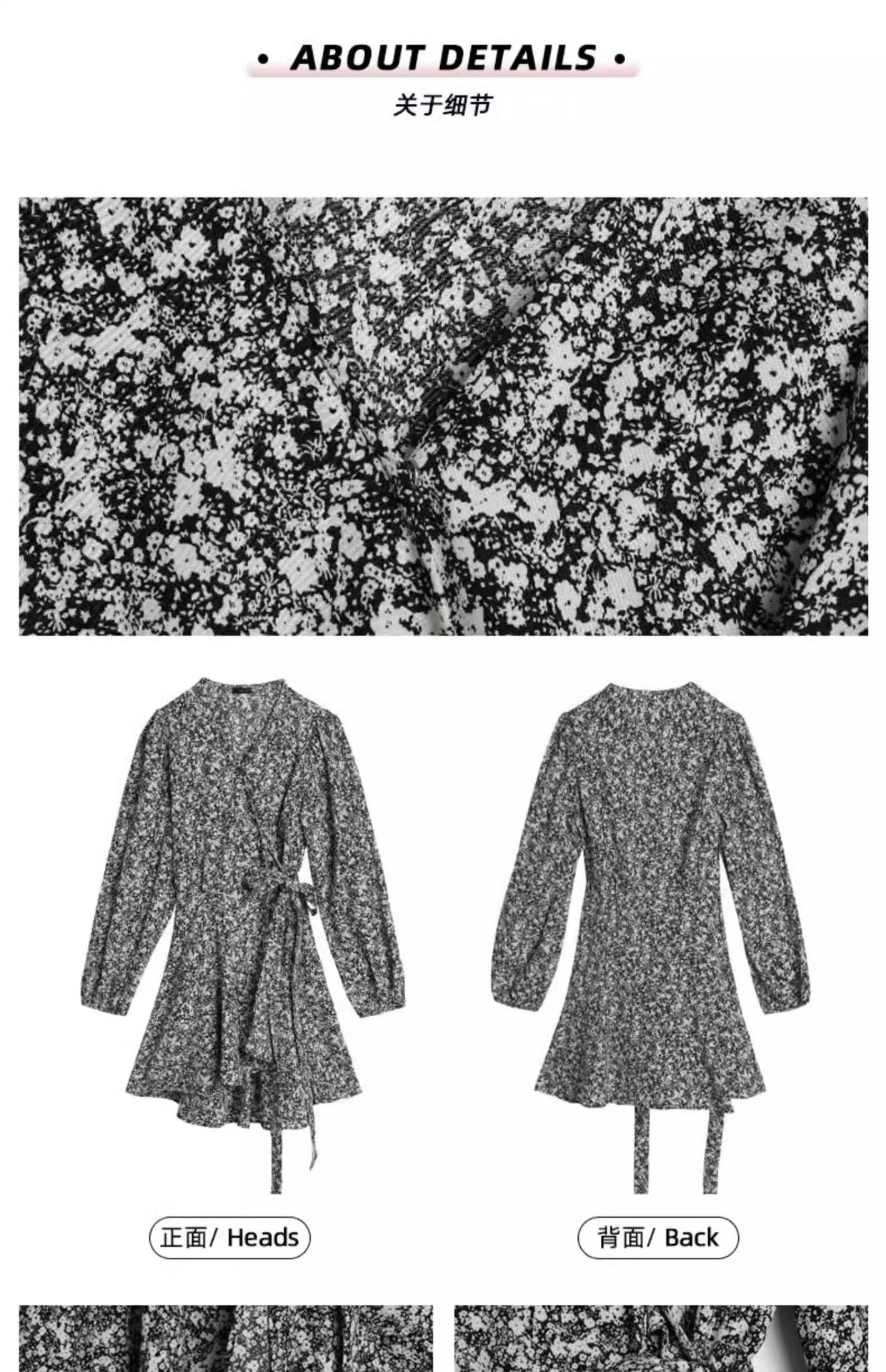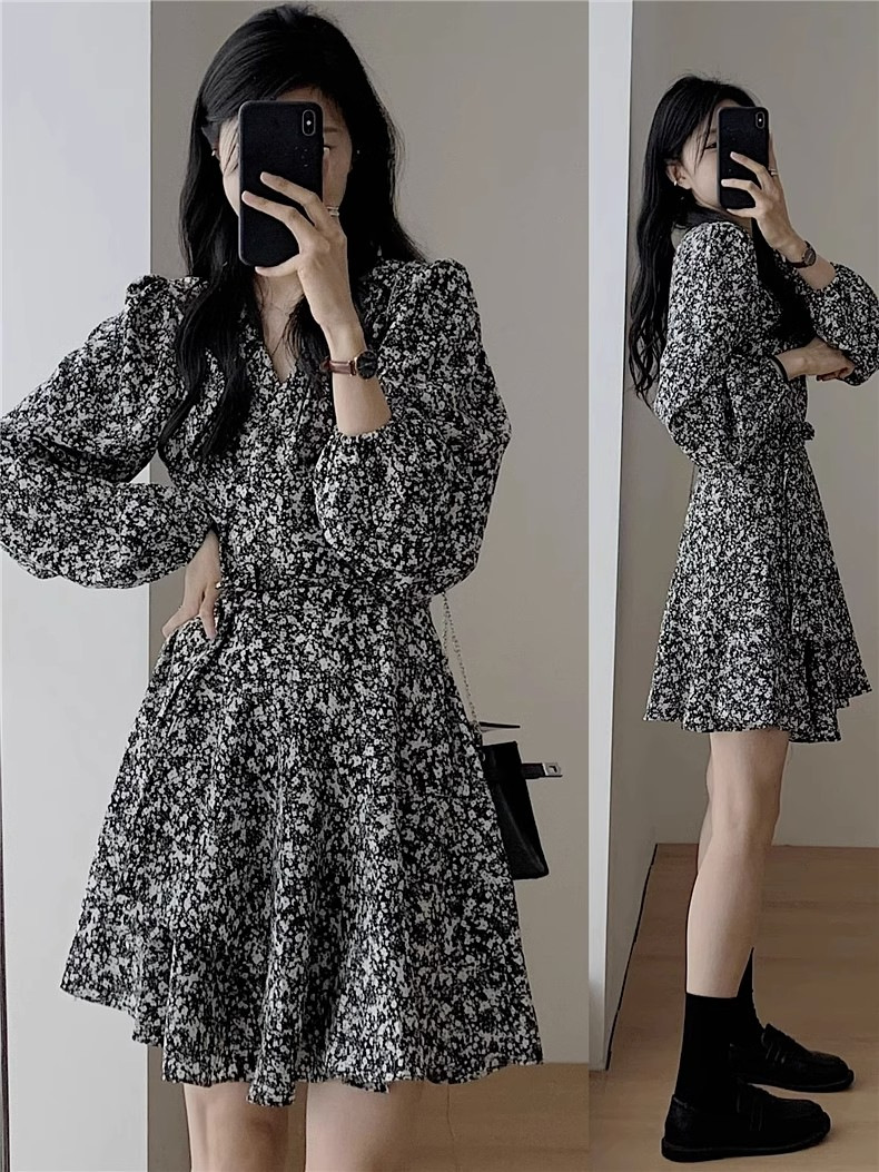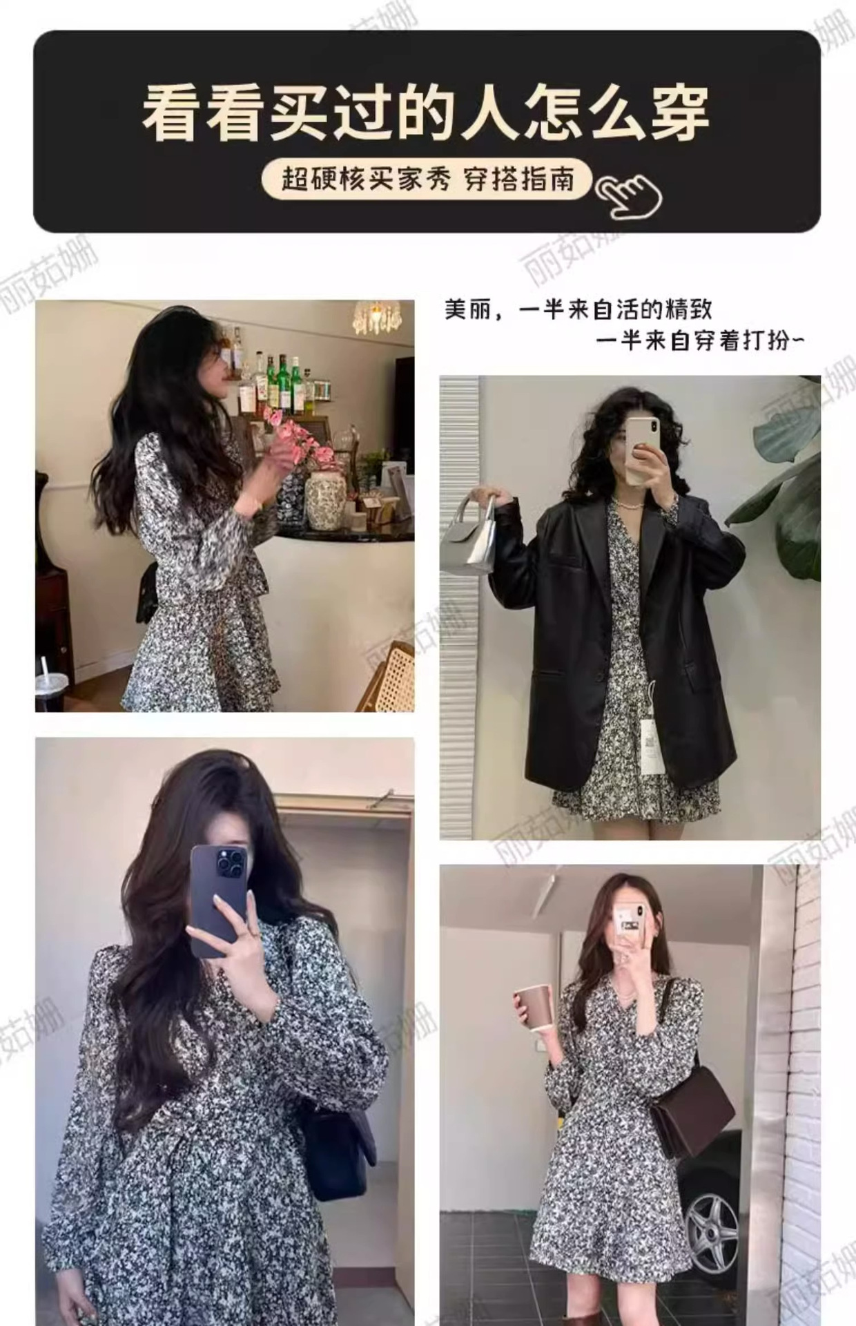 프랑스 스타일의 우아한 긴 소매 꽃 원피스 이른 가을 2024 새로운 여성 의류 슬리밍 짧은 치마스토어 가기