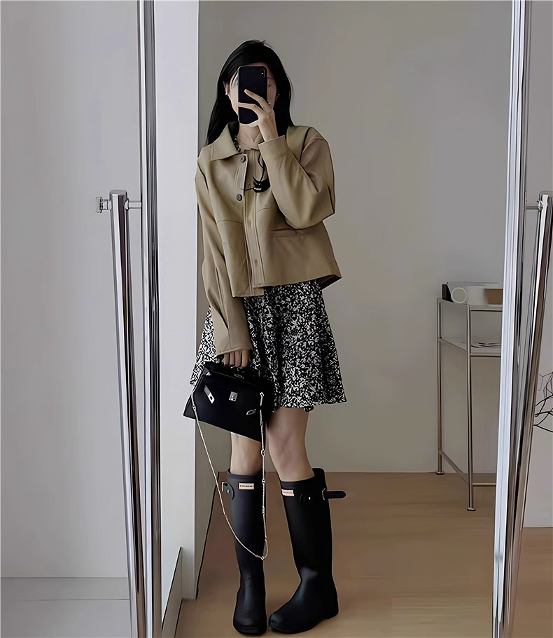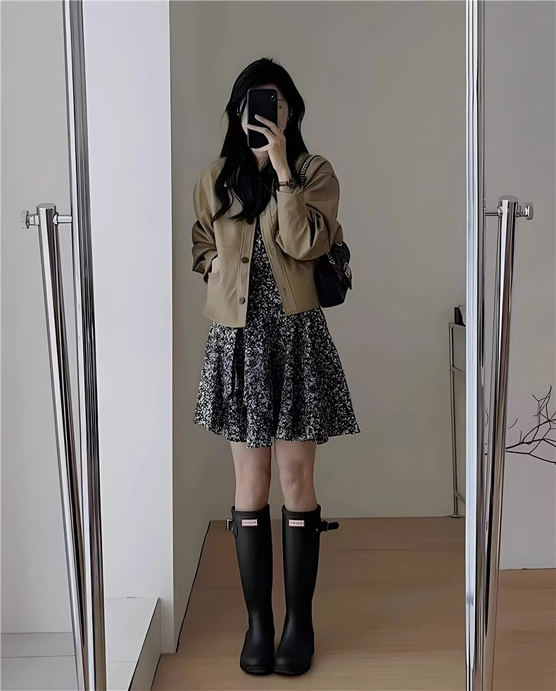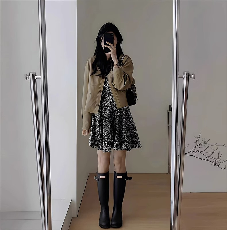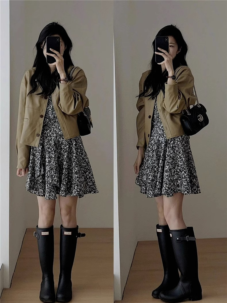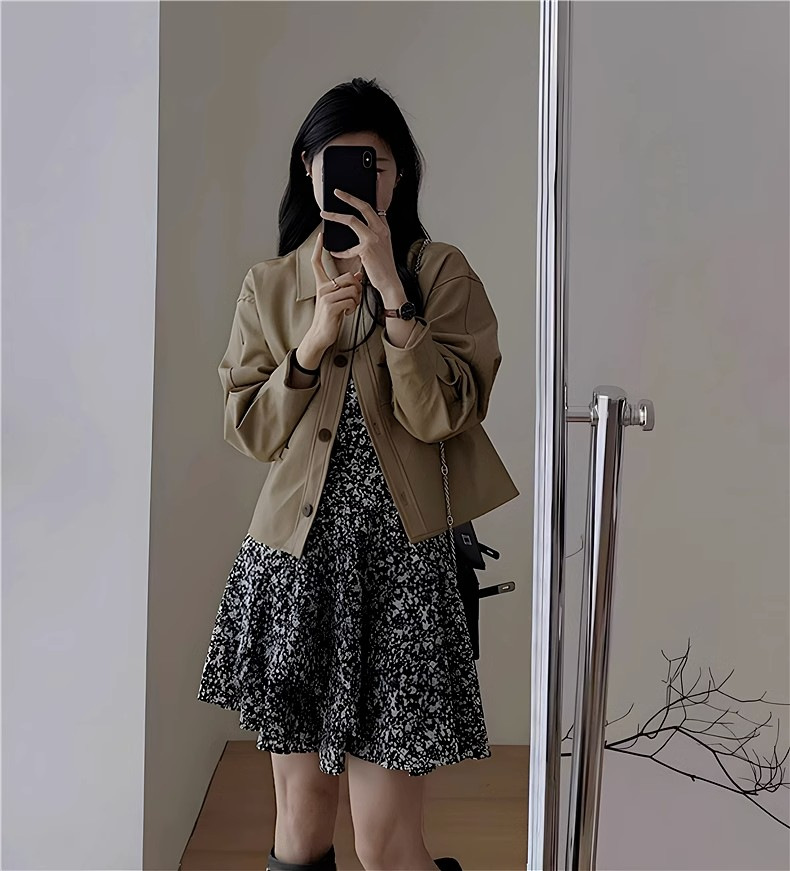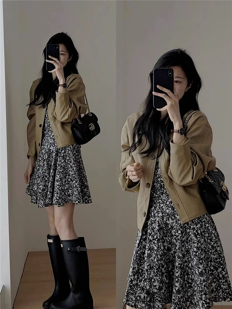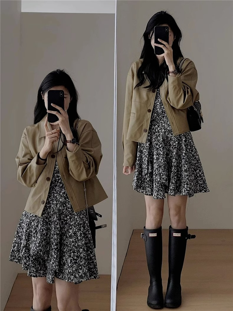 프랑스 스타일의 우아한 긴 소매 꽃 원피스 이른 가을 2024 새로운 여성 의류 슬리밍 짧은 치마스토어 가기