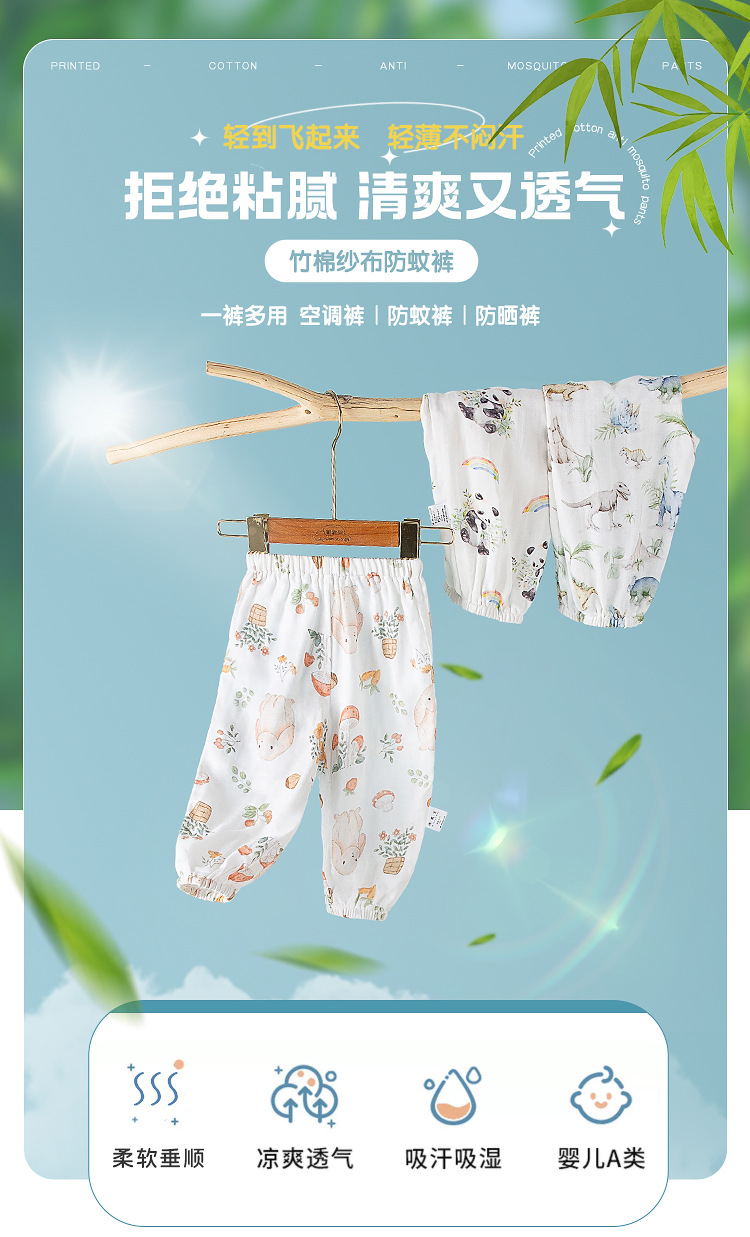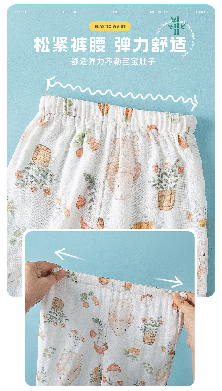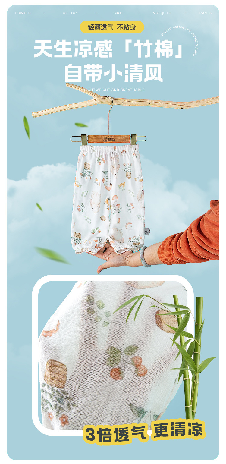어린이 모기 방지 바지 아기 여름 얇은 바지 대나무 섬유 남녀 아기 느슨한 통기성 랜턴 발목 묶인 바지