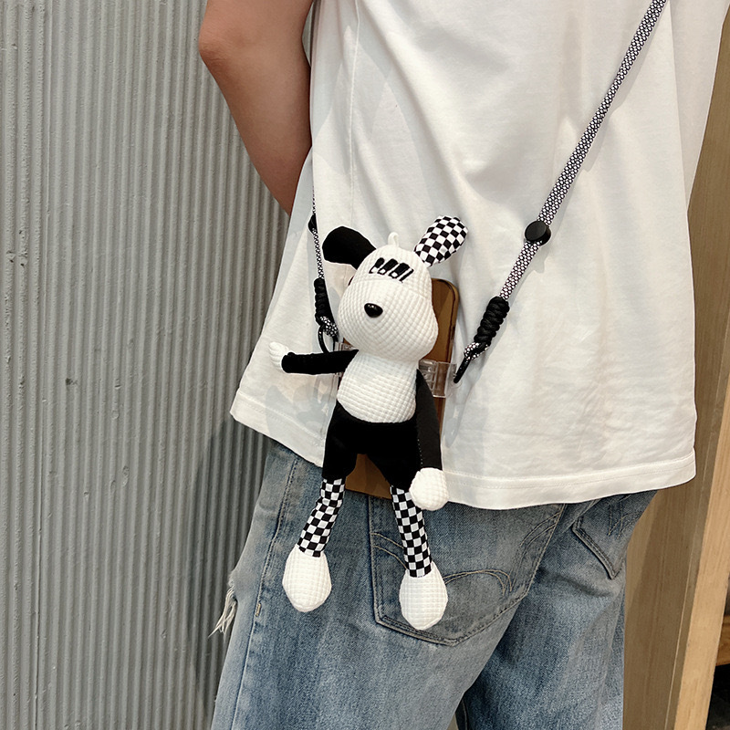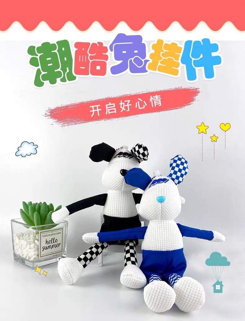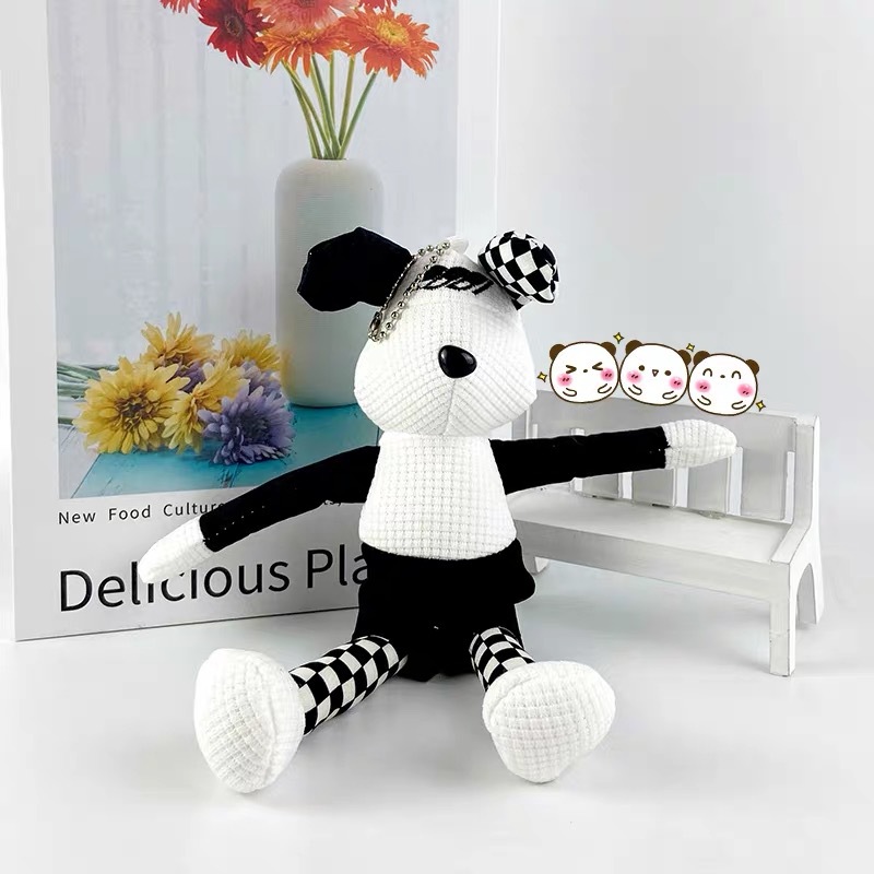 만화 체스 판 격자 무늬 긴 다리 토끼 봉제 펜던트 귀여운 곰 인형 펜던트 키 체인 가방 액세서리 인형스토어 가기