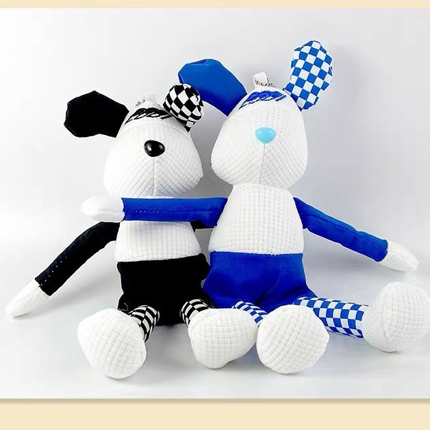 만화 체스 판 격자 무늬 긴 다리 토끼 봉제 펜던트 귀여운 곰 인형 펜던트 키 체인 가방 액세서리 인형