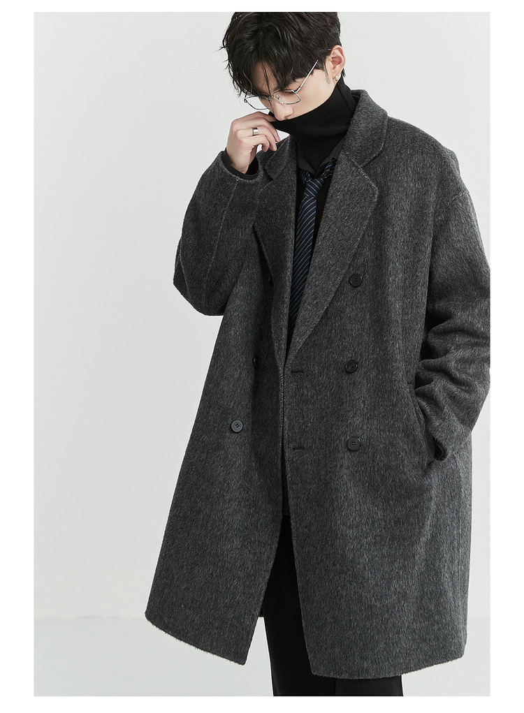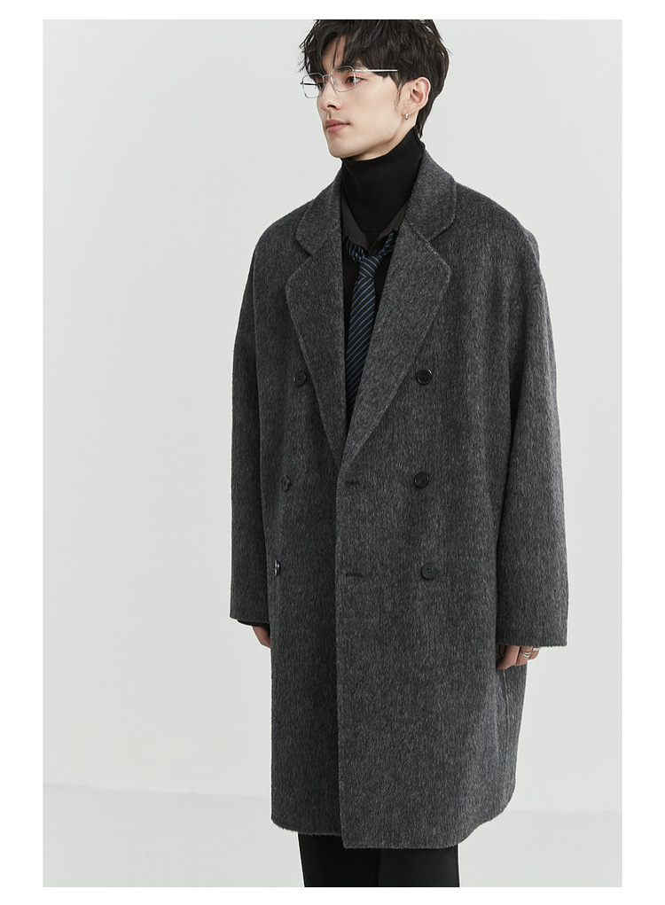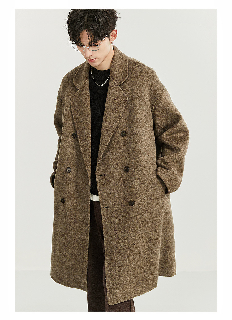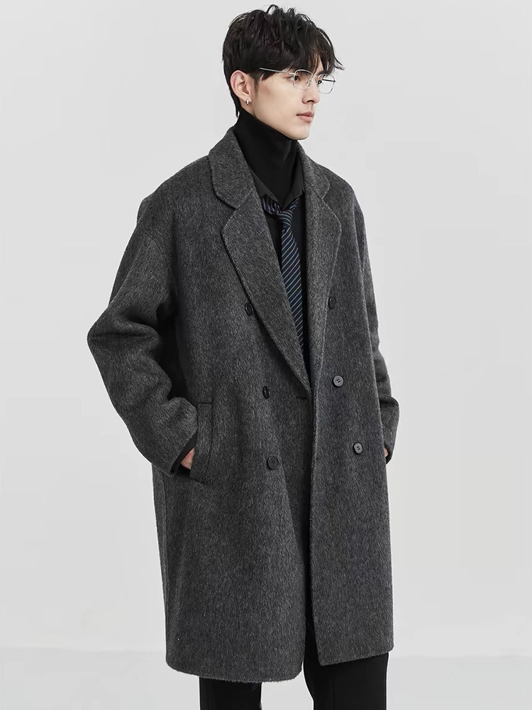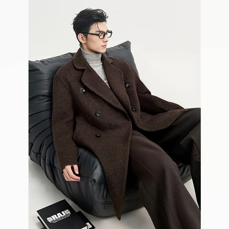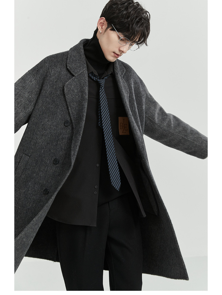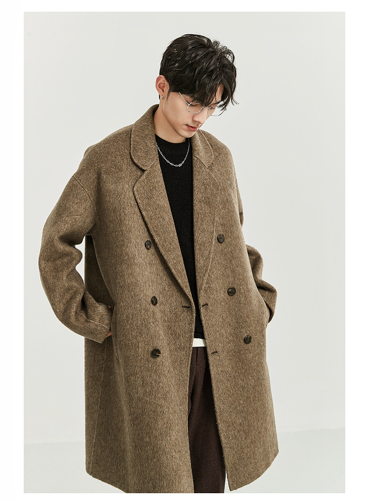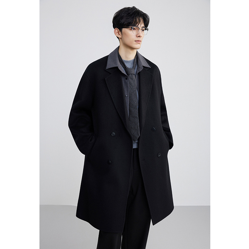 정품 클래식 양면 모직 코트 롱 스타일 혼방 고품질 낙타털 두꺼운 원단 울 코트 남성용