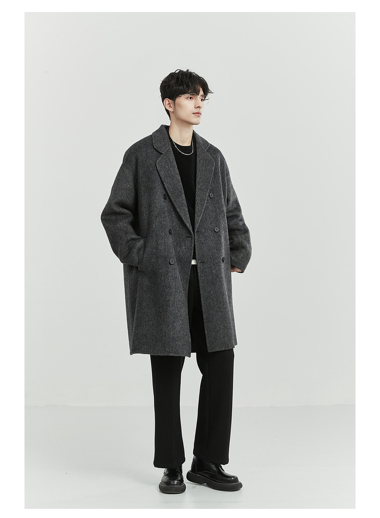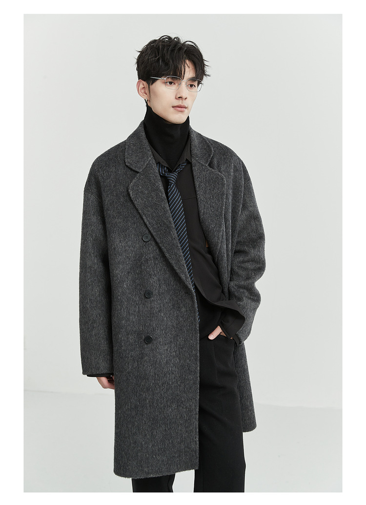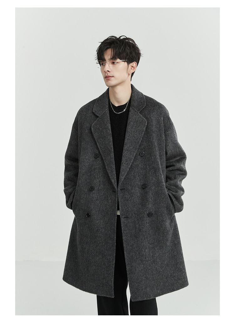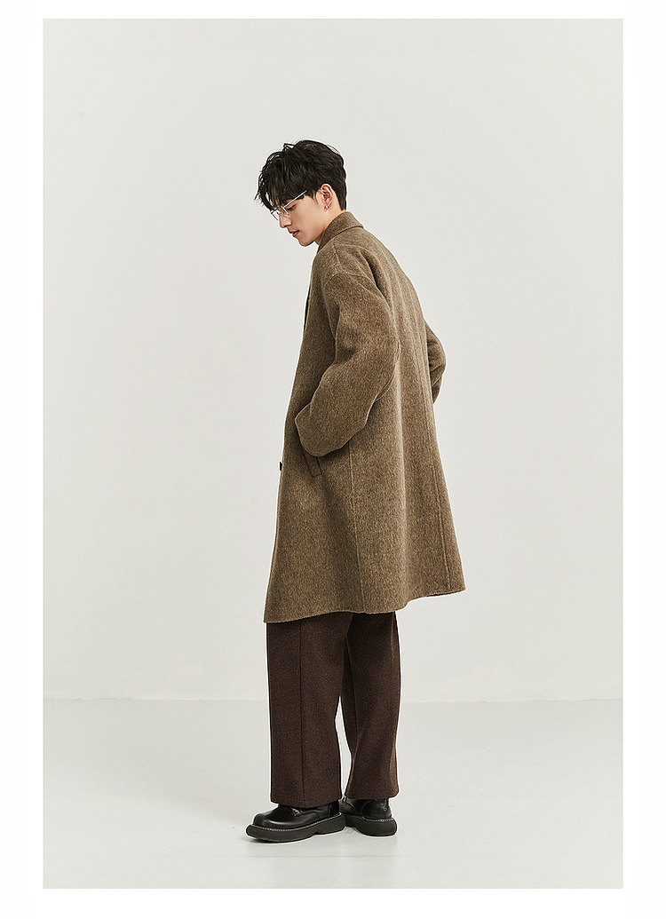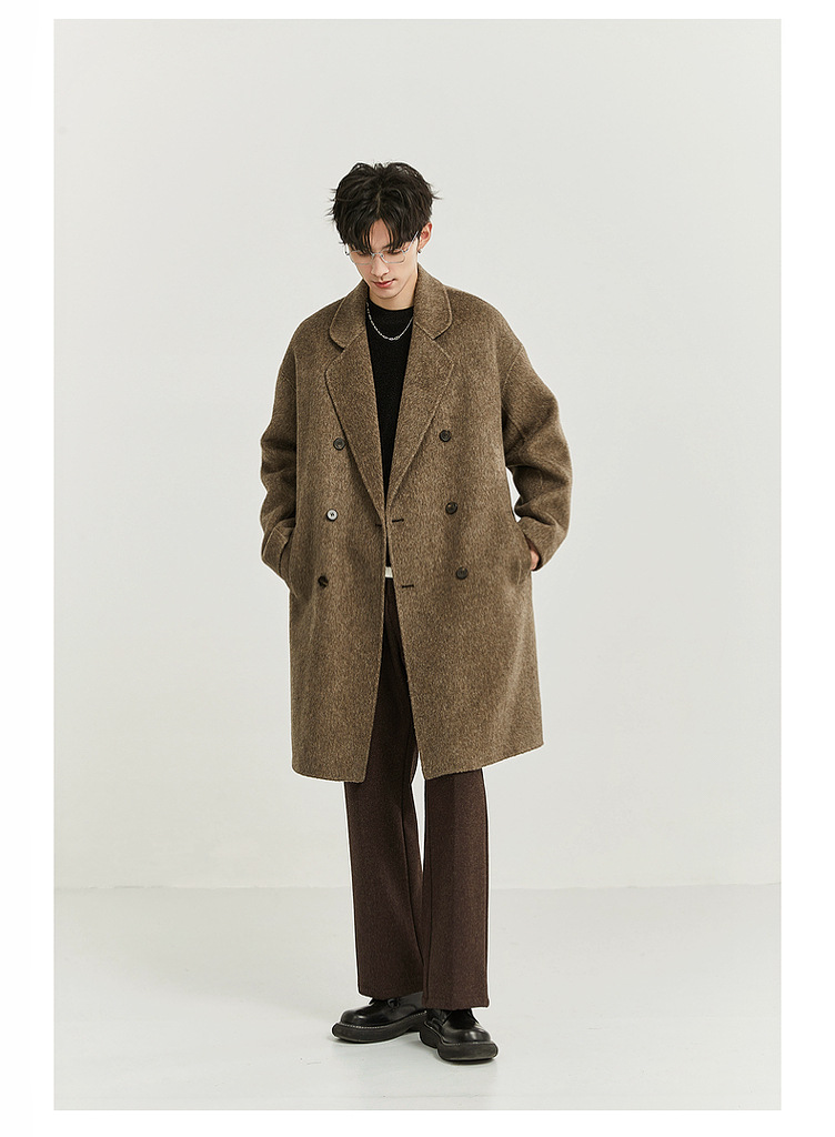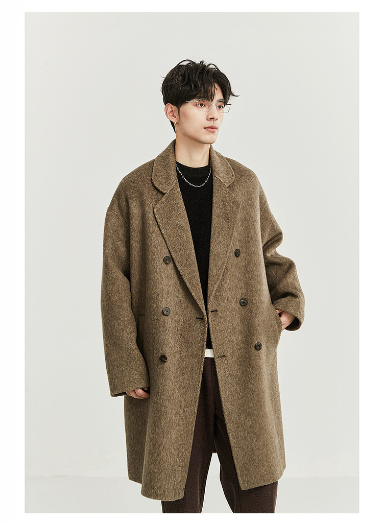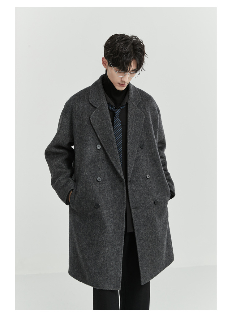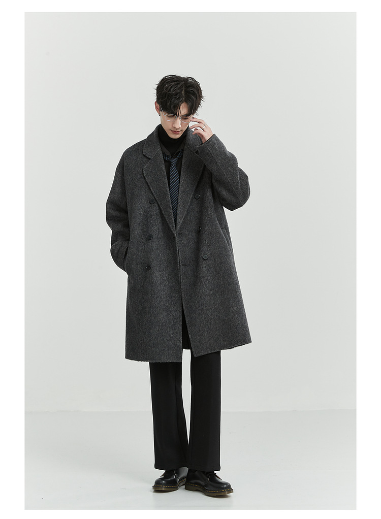정품 클래식 양면 모직 코트 롱 스타일 혼방 고품질 낙타털 두꺼운 원단 울 코트 남성용